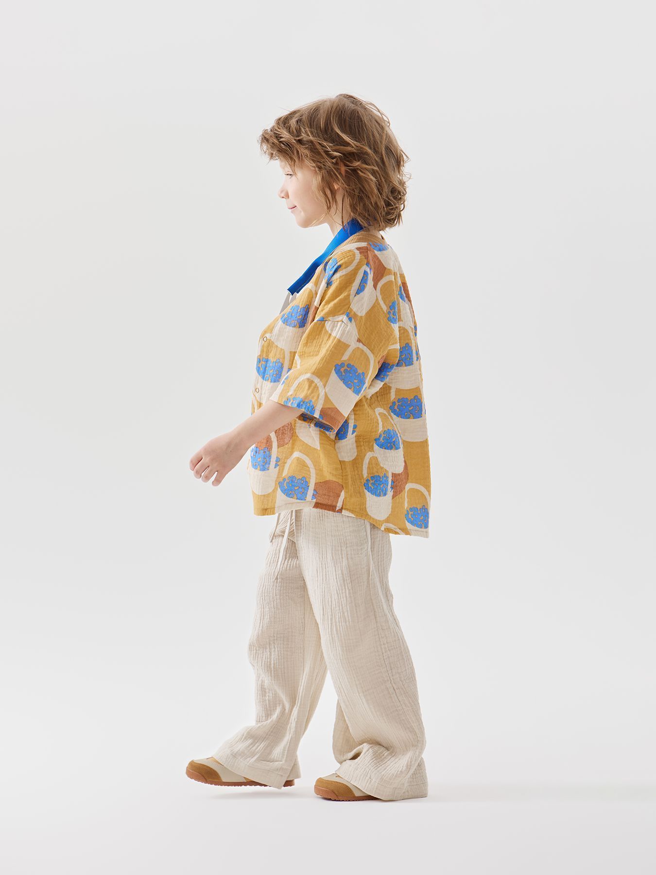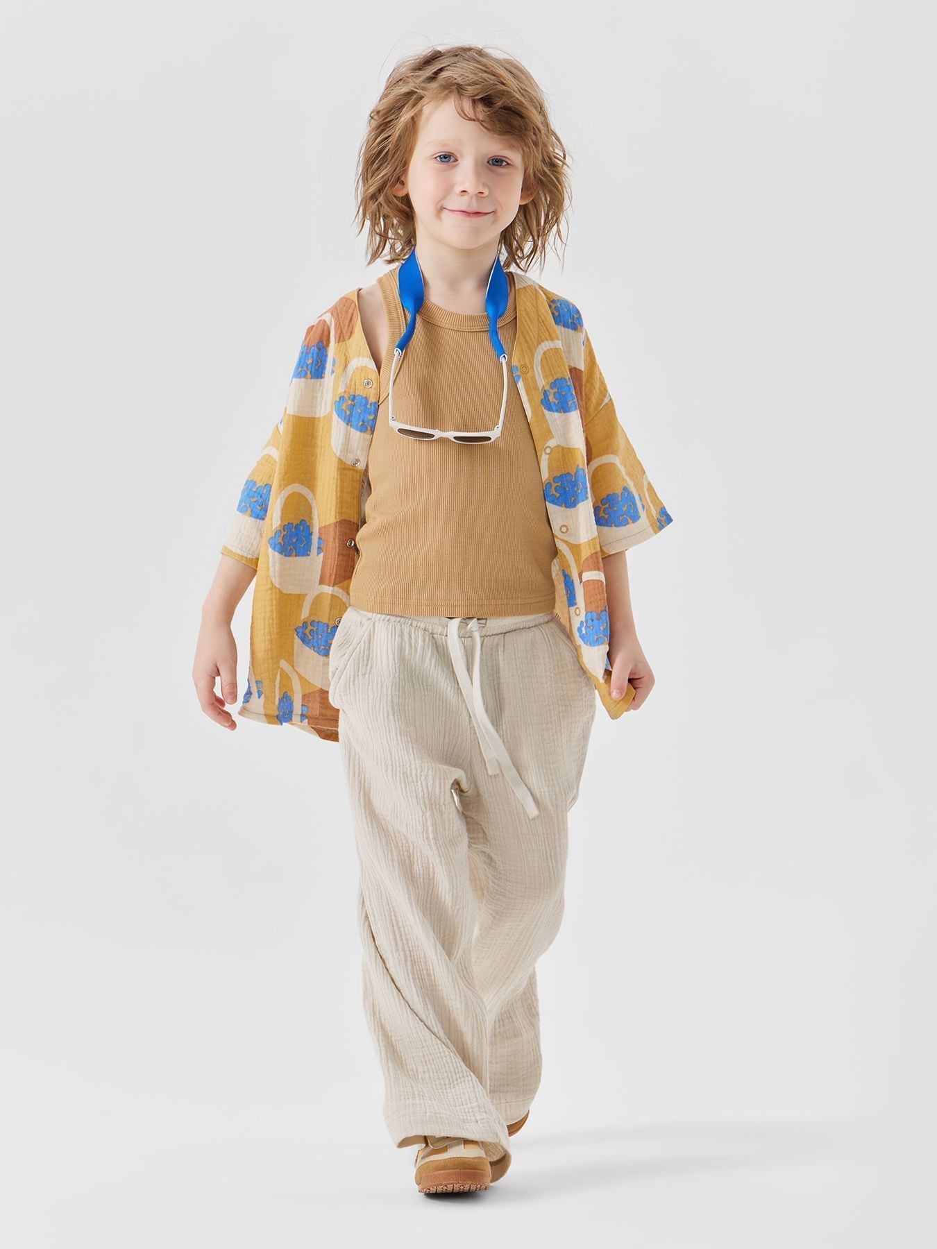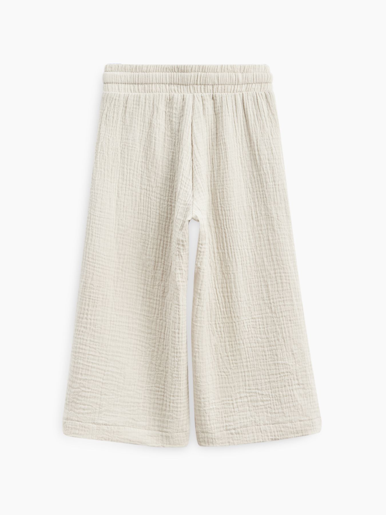 Широкие хлопковые брюки незаменимы на прогулках и в поездках. Согреют вечером и защитят от солнца днем. Благодаря резинке и шнурку штанишки садятся на детей с разным объемом талии. Прямой крой хорошо выглядит и для удлиненных, и для укороченных моделей, потому брюки одного размера можно носить несколько сезонов. Сшиты из материала, в составе которого 100% хлопка. Ткань дышит, хорошо отводит влагу, не липнет к телу. Модель брюк подходит мальчикам и девочкам, и отлично сочетается в повседневных, пляжных и праздничных комплектах.