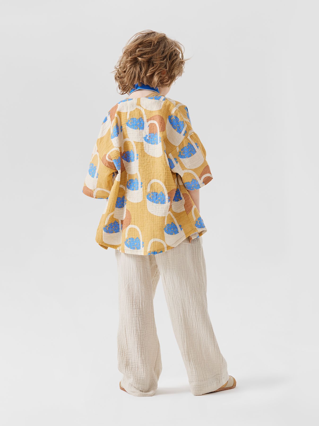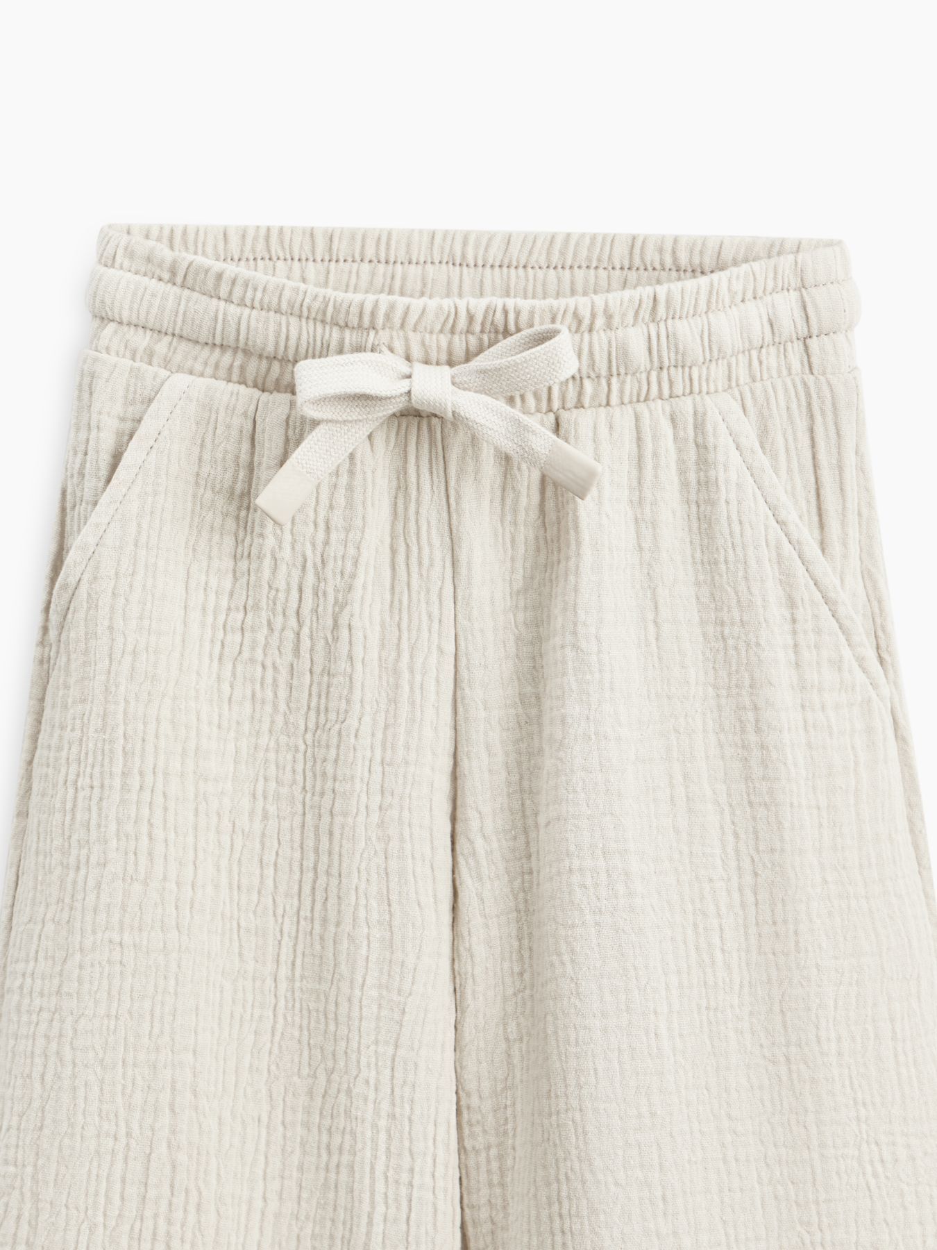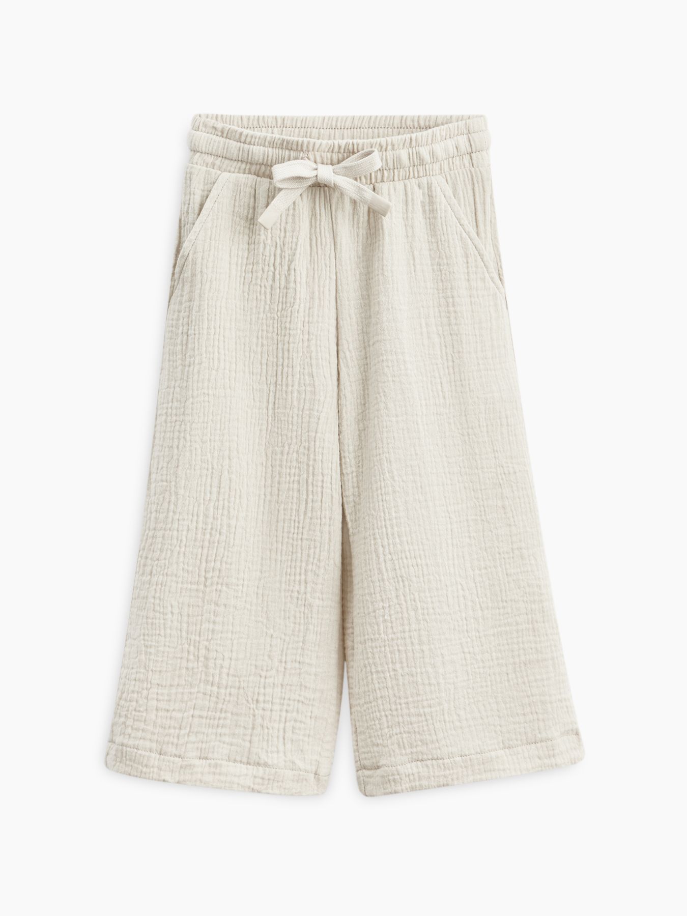 Широкие хлопковые брюки незаменимы на прогулках и в поездках. Согреют вечером и защитят от солнца днем. Благодаря резинке и шнурку штанишки садятся на детей с разным объемом талии. Прямой крой хорошо выглядит и для удлиненных, и для укороченных моделей, потому брюки одного размера можно носить несколько сезонов. Сшиты из материала, в составе которого 100% хлопка. Ткань дышит, хорошо отводит влагу, не липнет к телу. Модель брюк подходит мальчикам и девочкам, и отлично сочетается в повседневных, пляжных и праздничных комплектах.