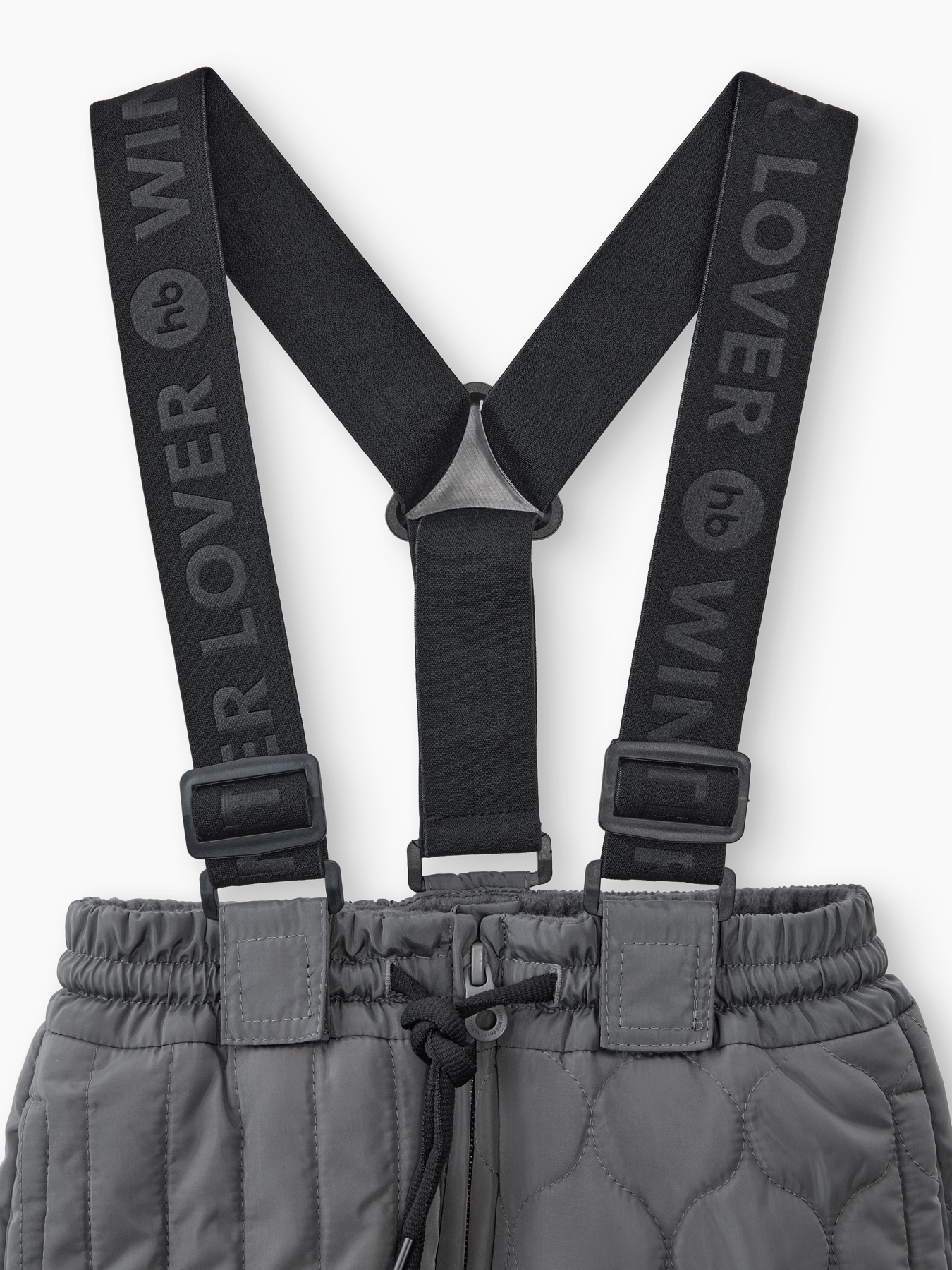 • Адаптивный крой: Система регулировки (лямки и пояс на шнурке) позволяет точно подогнать брюки по фигуре ребенка