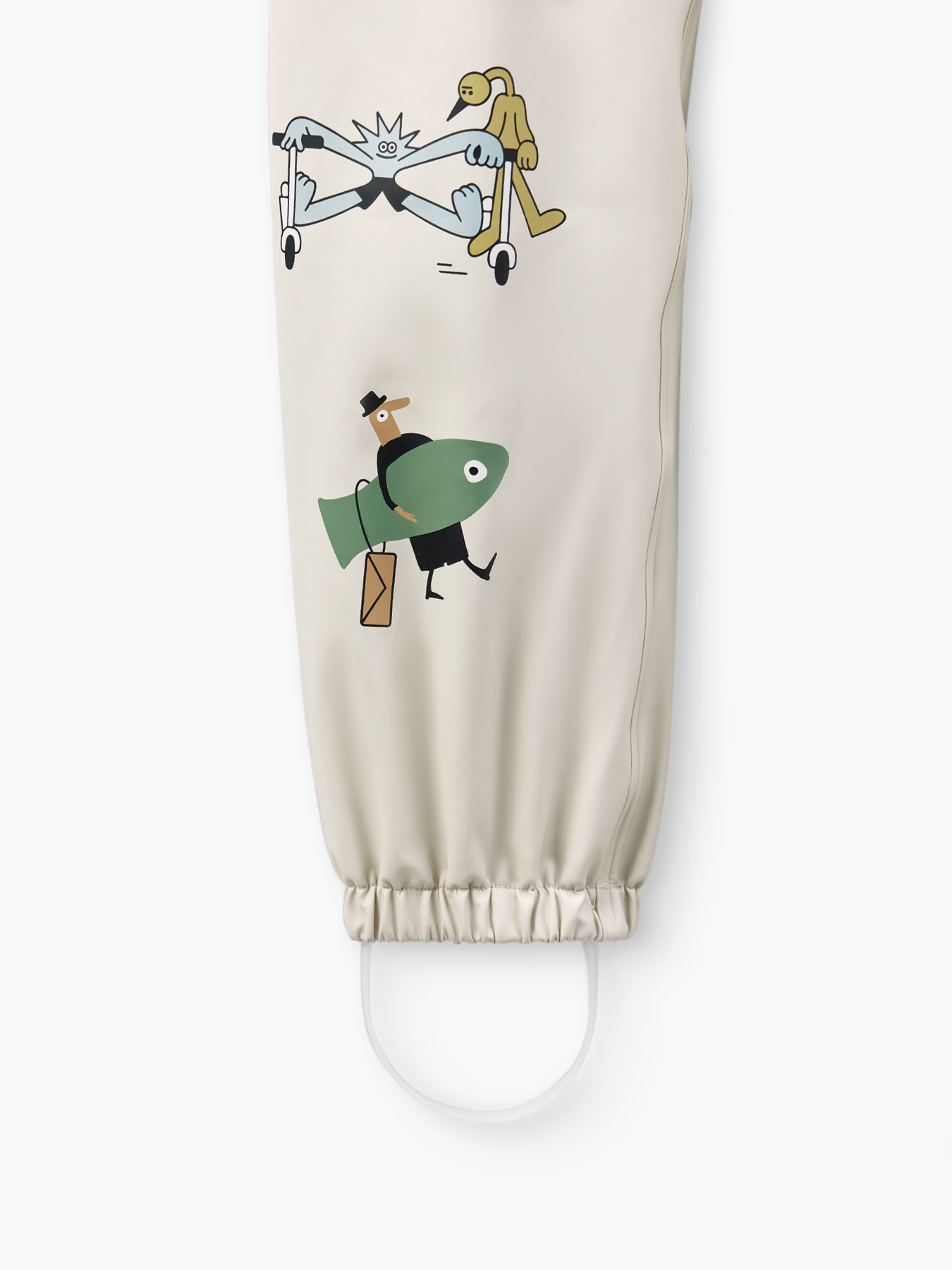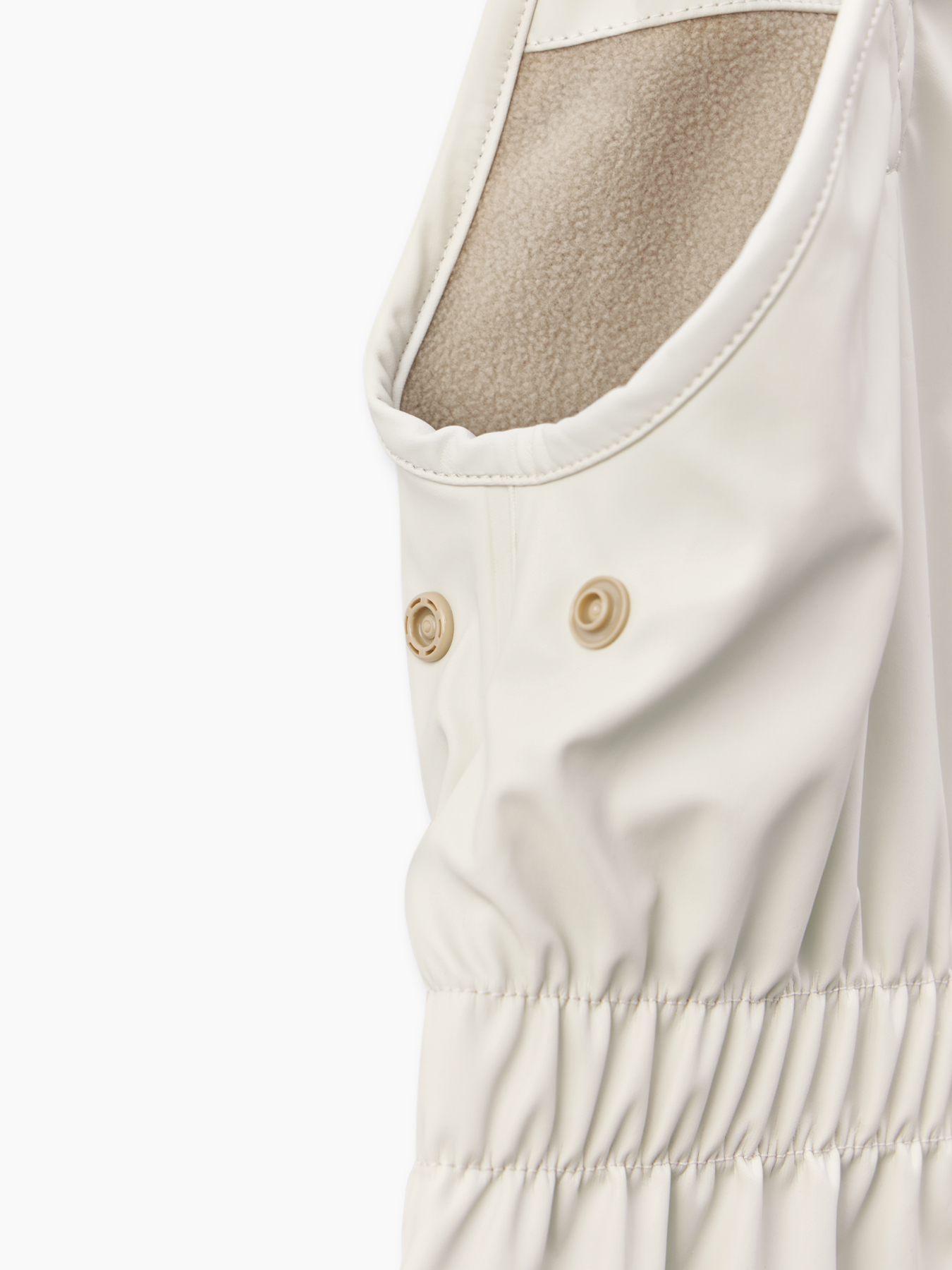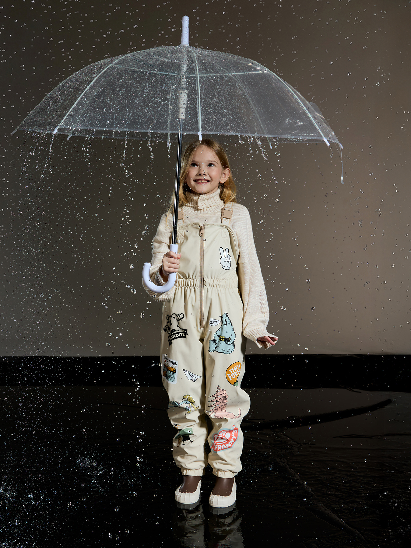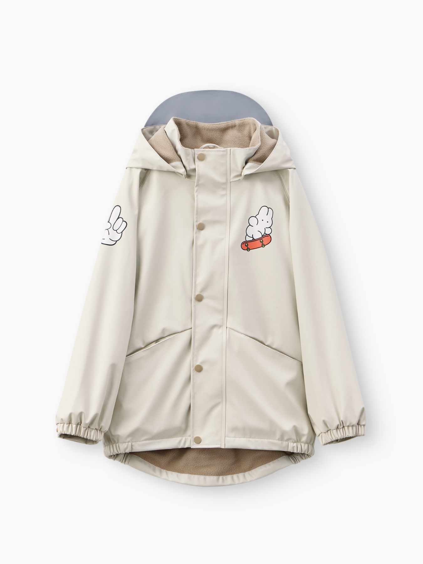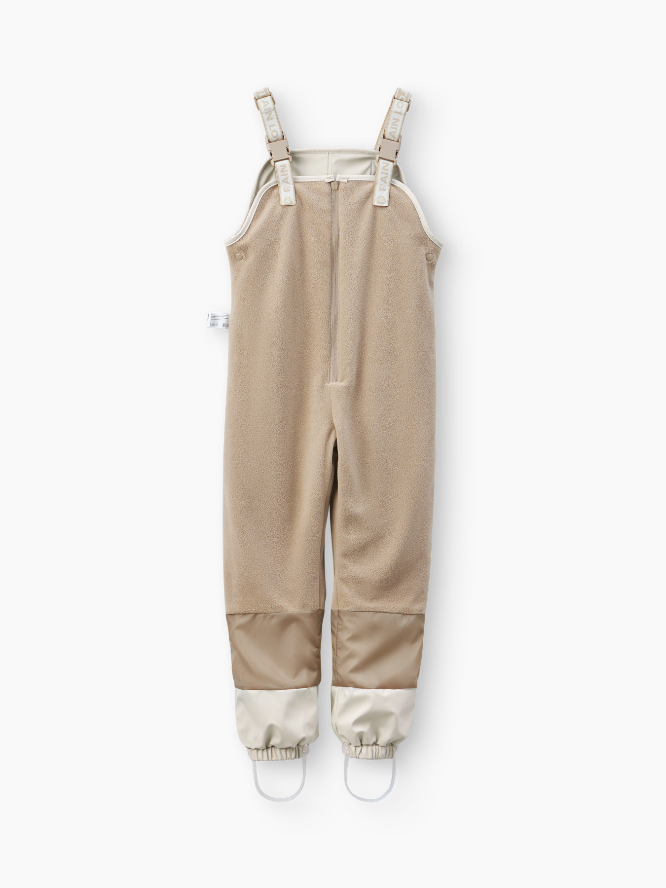 Непромокаемый комплект позволит весело гулять в любую погоду. Сверху – водонепроницаемая ткань с показателем 5000 мм, внутри – мягкий флис, который приятен коже и не даёт малышу вспотеть. На брюках и куртке есть светоотражатели для безопасности прогулок в вечернее время. У полукомбинезона регулируемые лямки. Удобная застёжка – молния спереди – позволяет быстро надевать и снимать брюки. Эластичная резинка на талии обеспечивает правильную посадку и дополнительную защиту от ветра. Куртка свободного кроя с капюшоном снабжена планкой, закрывающей молнию, и манжетами на резинке – чтобы гулять было тепло и комфортно. Материал, из которого изготовлен комплект, прост в уходе и быстро сохнет.