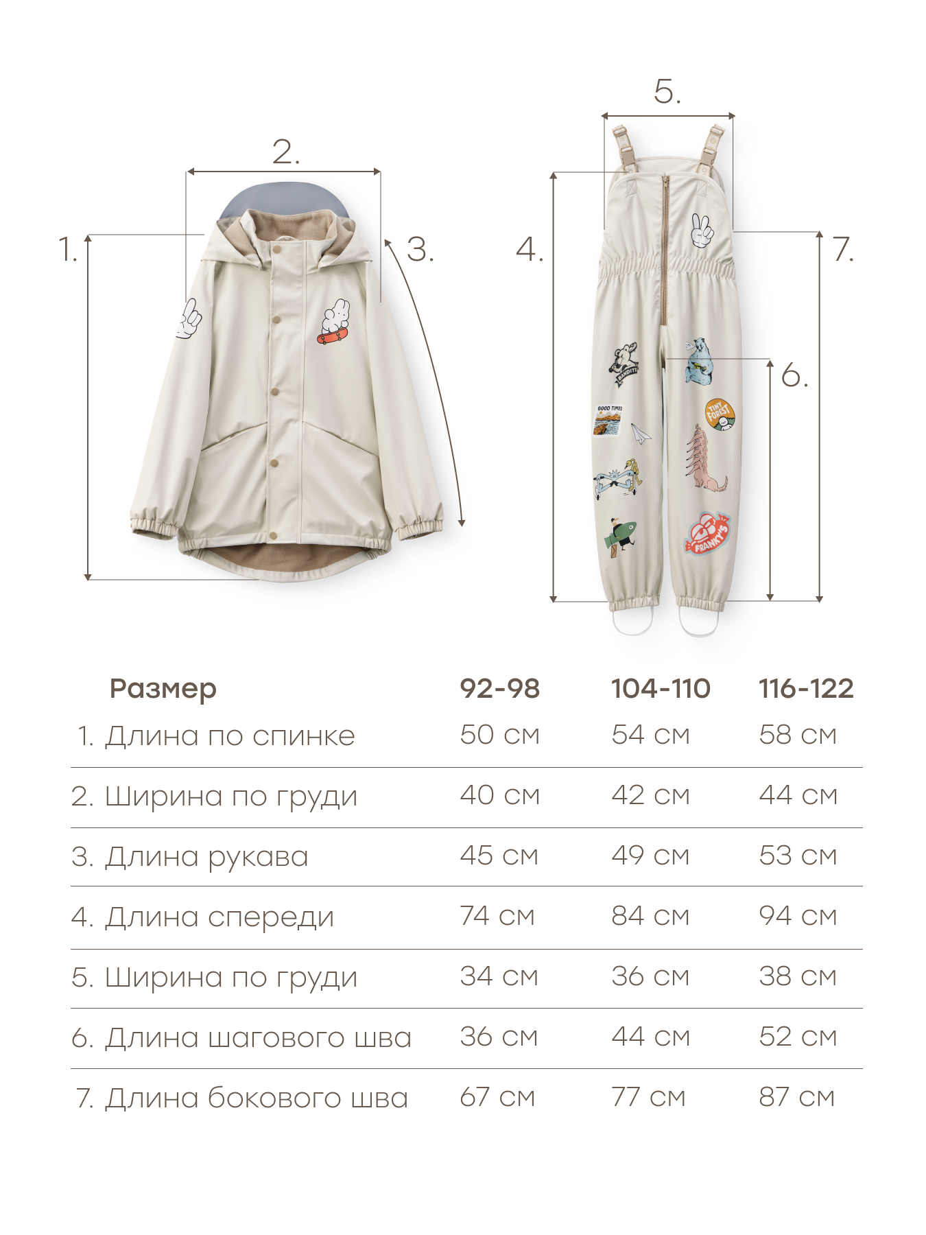 • Состав комплекта Полукомбинезон, Куртка