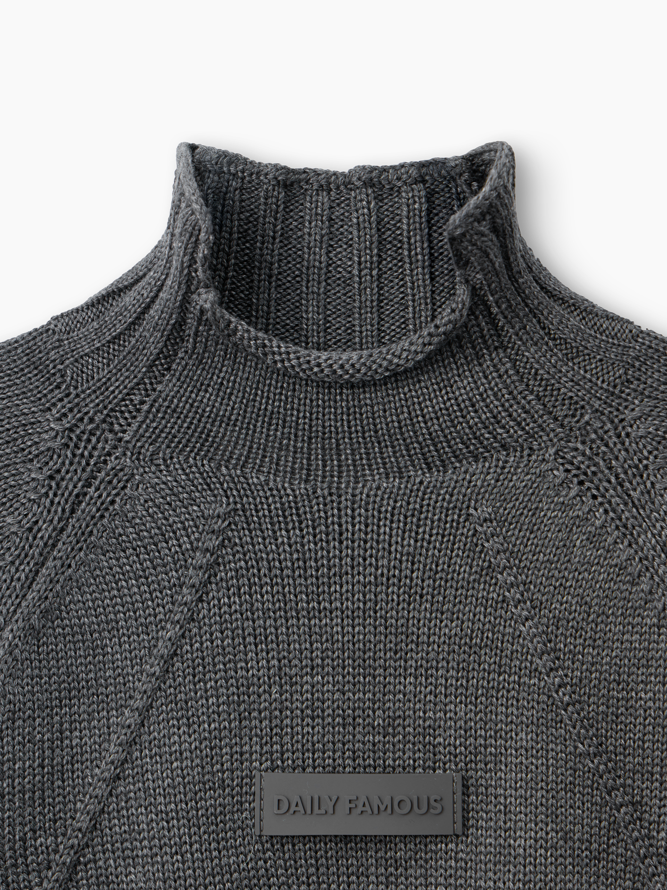 • Спущенная линия плеча и асимметричный воротник – модный дизайн, который легко комбинировать с рубашками, футболками и водолазками
