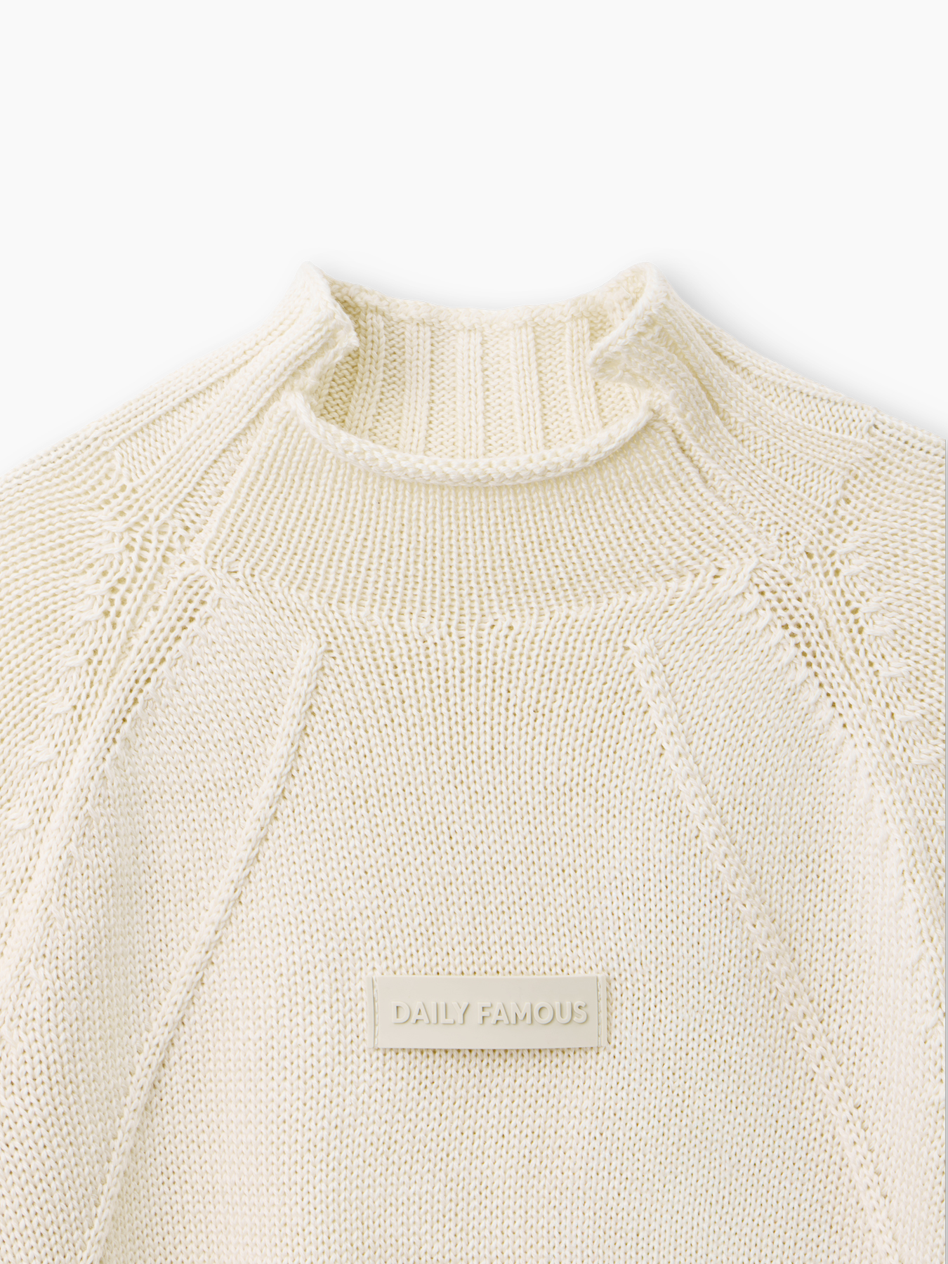 • Спущенная линия плеча и асимметричный воротник – модный дизайн, который легко комбинировать с рубашками, футболками и водолазками
