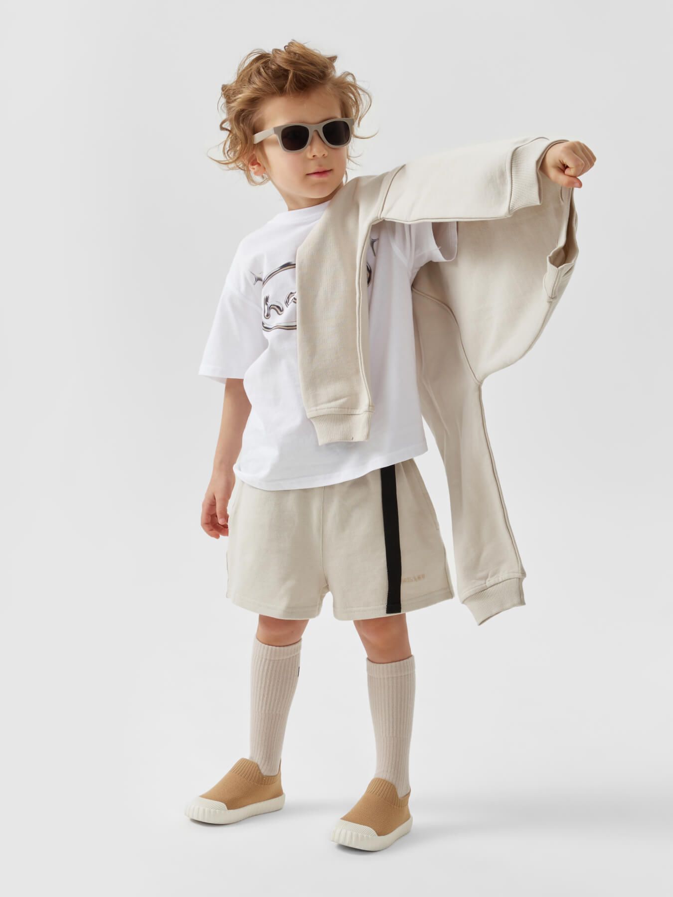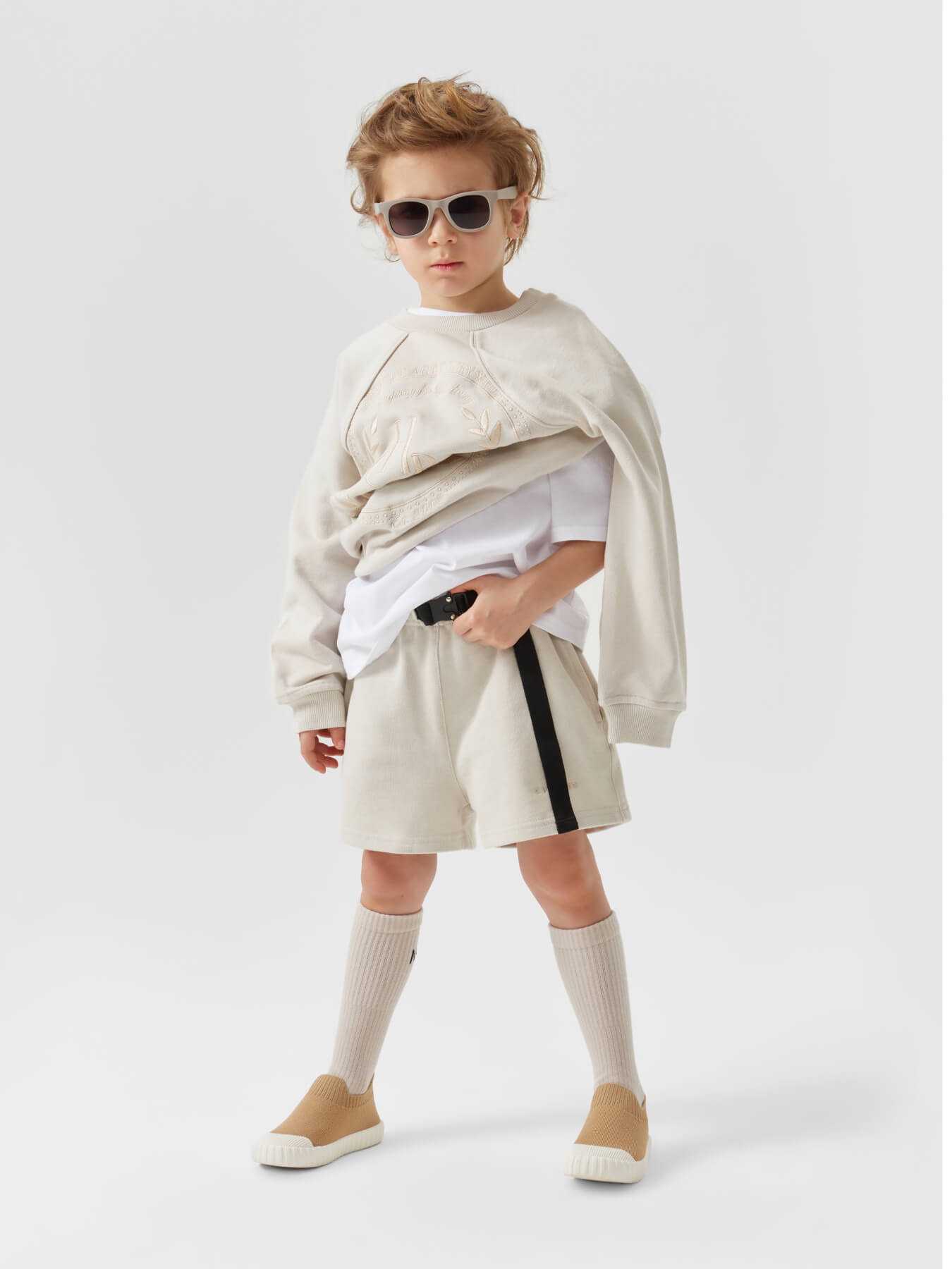 Уютный джемпер теплый и хорошо держит форму. Для дополнительной защиты от ветра свитшот оснащен манжетами и резинкой по низу изделия. Горловина дополнительно укреплена. Особенность кроя рукава – гипертрофированный реглан, что придает изделию архитектурную сложность. Джемпер станет утонченной и необычной деталью образов девочек и мальчиков.