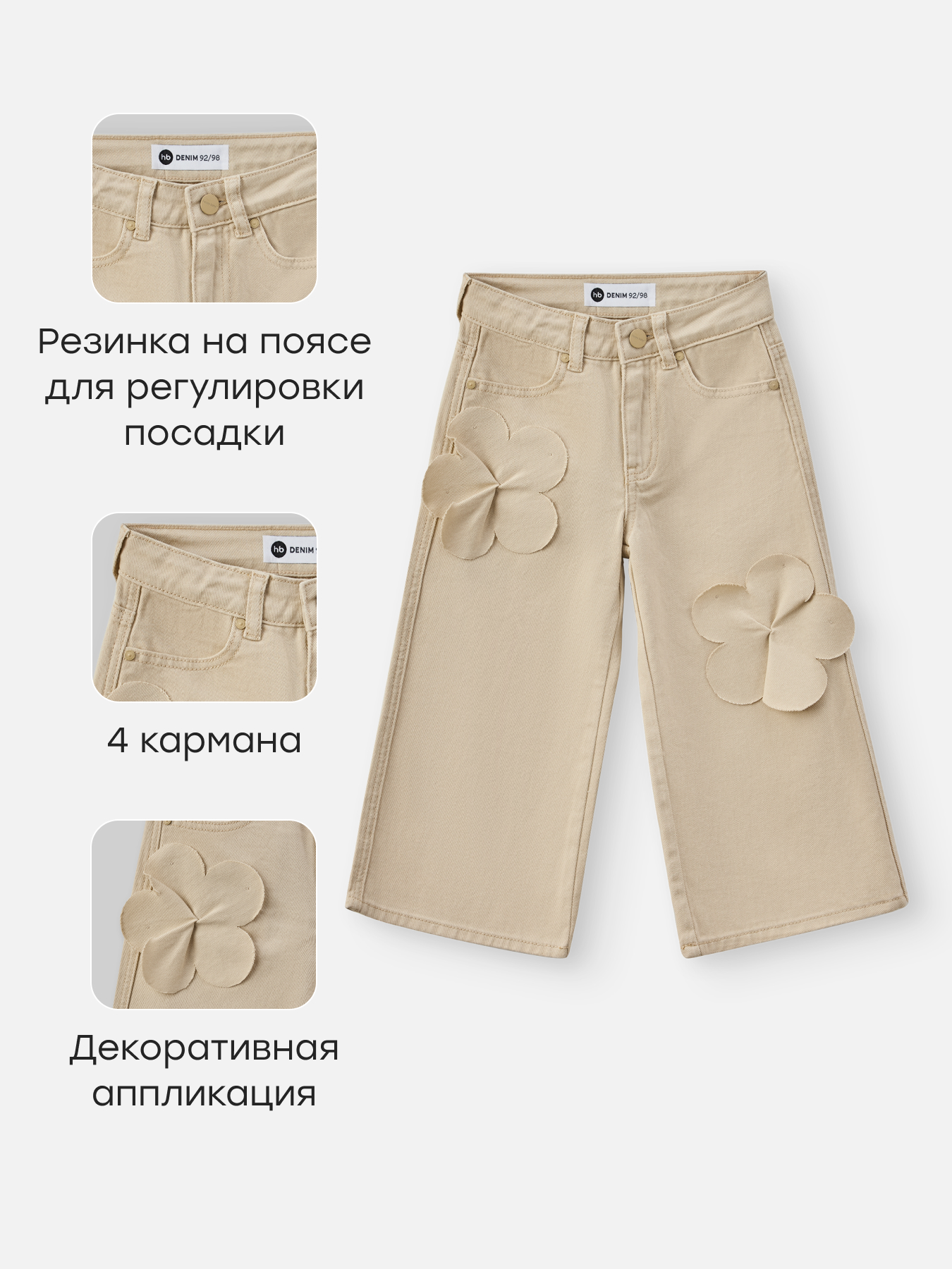 • Джинсы сшиты из прочного материала, который слегка тянется, обеспечивая свободу движений ребенка в течение дня