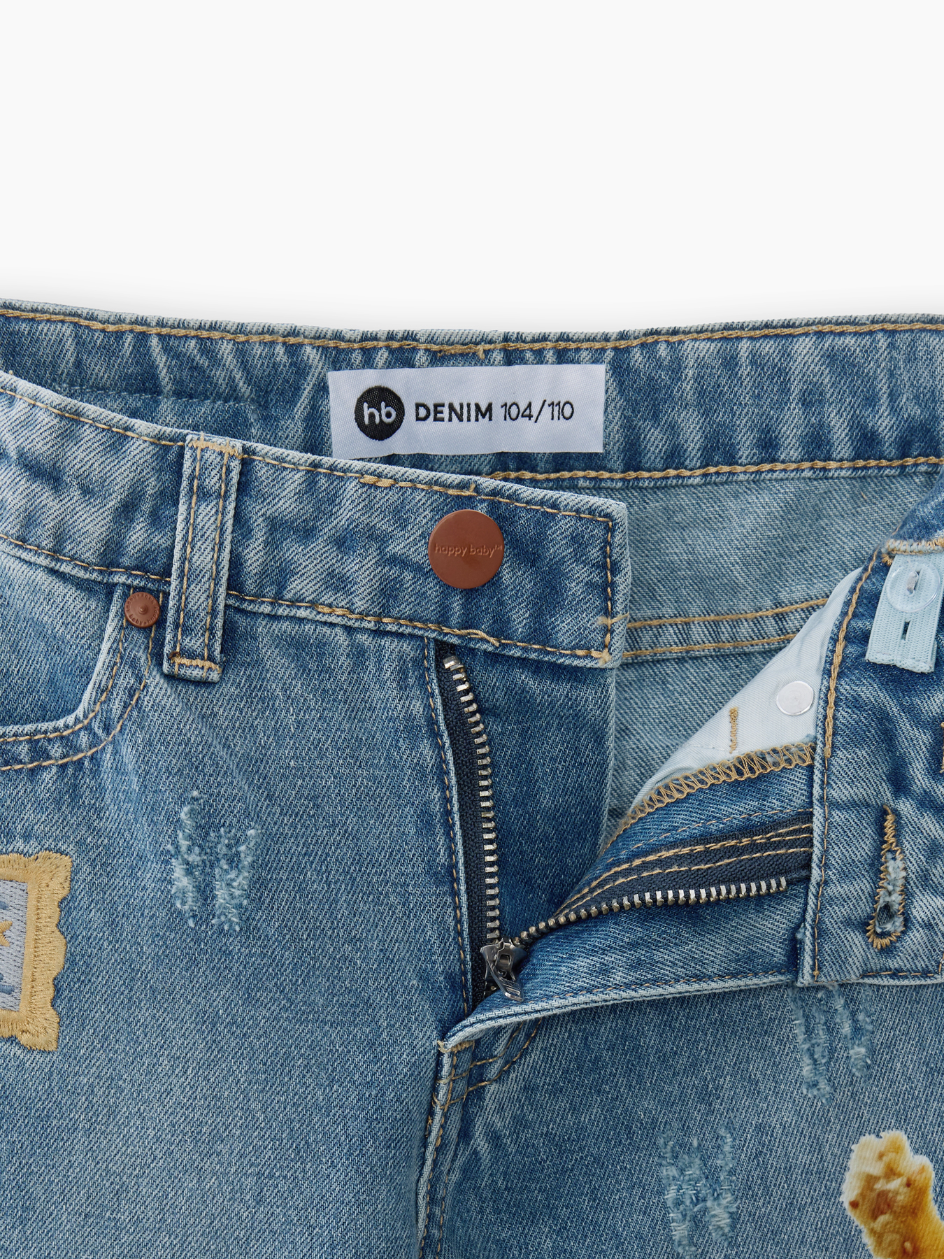 • Джинсы сшиты из прочного материала, который слегка тянется, обеспечивая свободу движений ребенка в течение дня