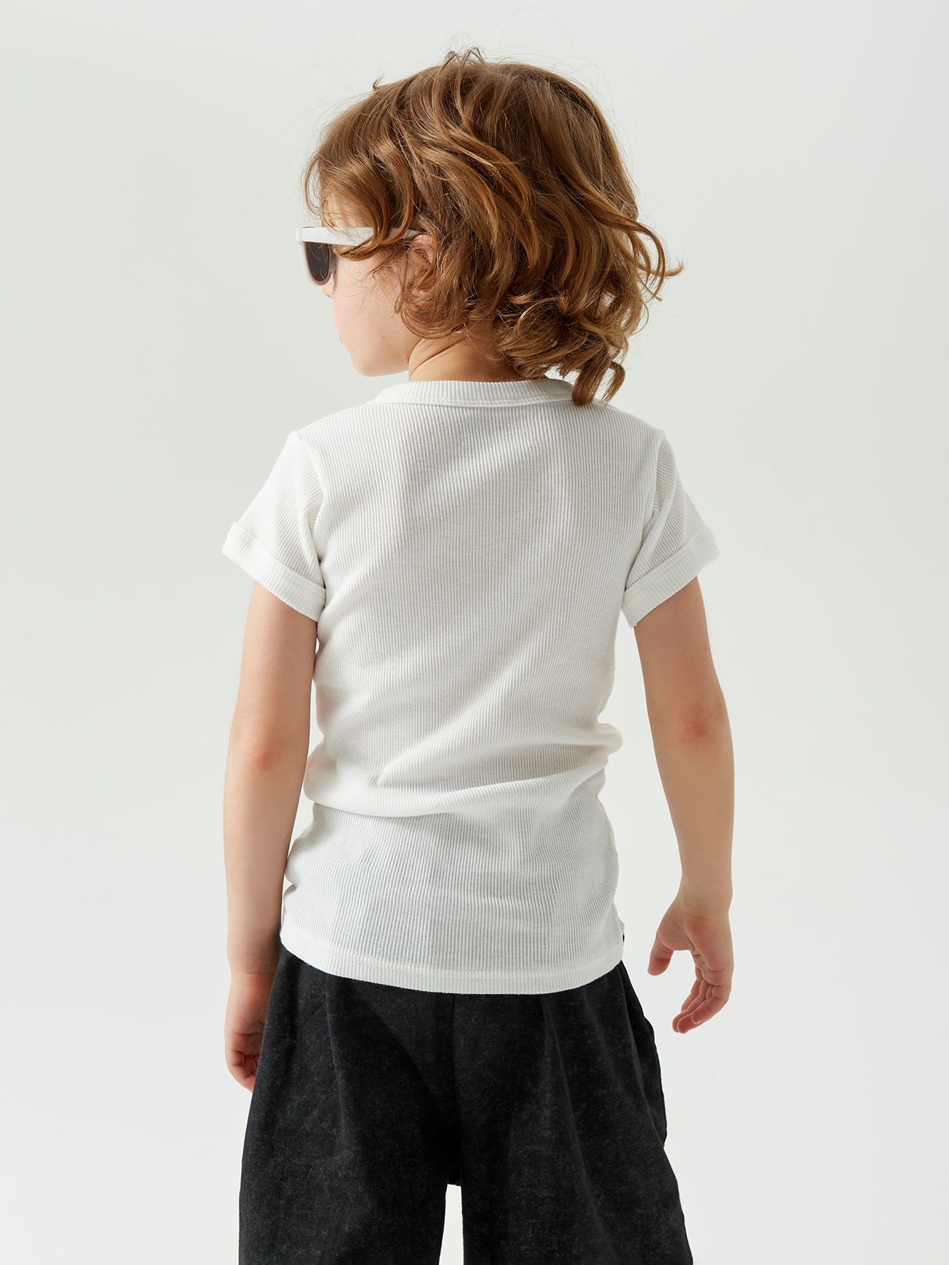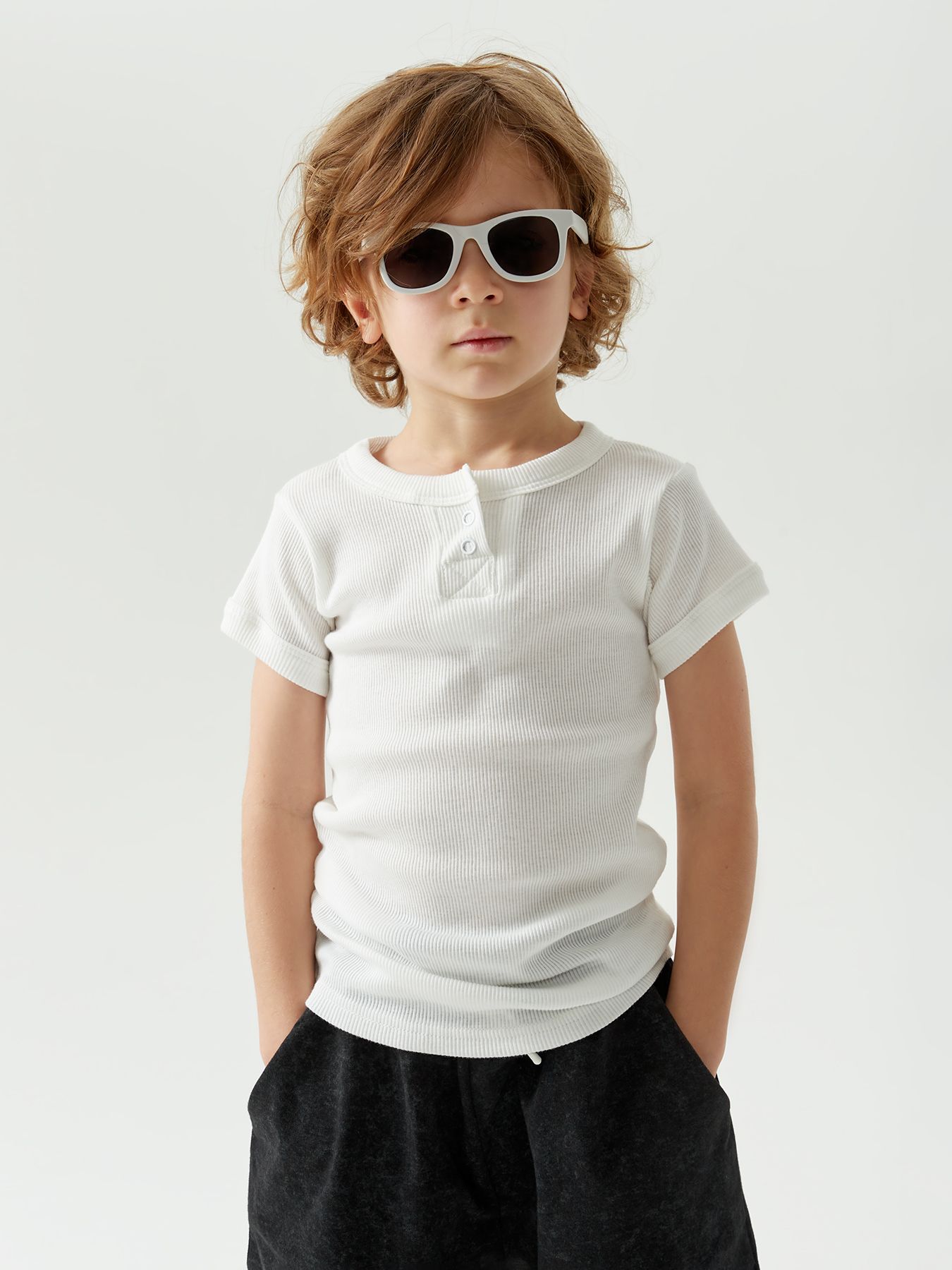 Футболка с пуговицами в районе горловины – универсальный вариант на каждый день и для особых выходов. Изготовлена из мягкой ткань, состоящей на 100% из хлопка. Материал приятен коже, хорошо впитывает влагу, дышит. В такой футболке комфортно проводить целый день на прогулках или в детском саду.