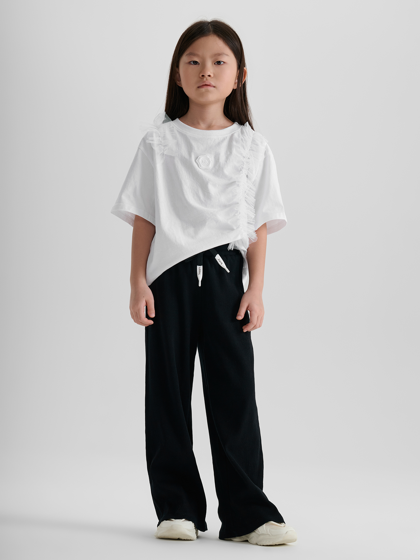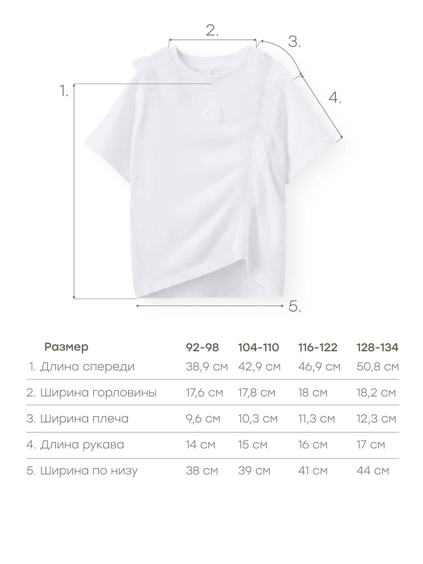 Стильная футболка для девочки от Happy Baby из 100% хлопка - это идеальное сочетание комфорта, качества и современного дизайна. Материал майки для девочки, изготовленный из натуральных волокон, обеспечивает отличную воздухопроницаемость, мягкость и гипоаллергенность, что особенно важно для чувствительной кожи ребёнка. Свободный силуэт футболки детской позволяет чувствовать себя комфортно в течение всего дня, независимо от уровня активности. Футболка для девочки дополнена романтичными рюшами и драпировками, которые придают изделию особый шарм и актуальный элемент декора, подчёркивая индивидуальность юной модницы. Усиленная горловина сохраняет форму даже после многократных стирок, предотвращая деформацию и растяжение ткани. Такая детская футболка легко комбинируется с различными элементами гардероба: джинсами, брюками, шортами или юбками, создавая как повседневные, так и нарядные образы. Благодаря продуманному дизайну и практичности детская футболка для девочки становится незаменимой вещью в гардеробе каждой маленькой модницы.