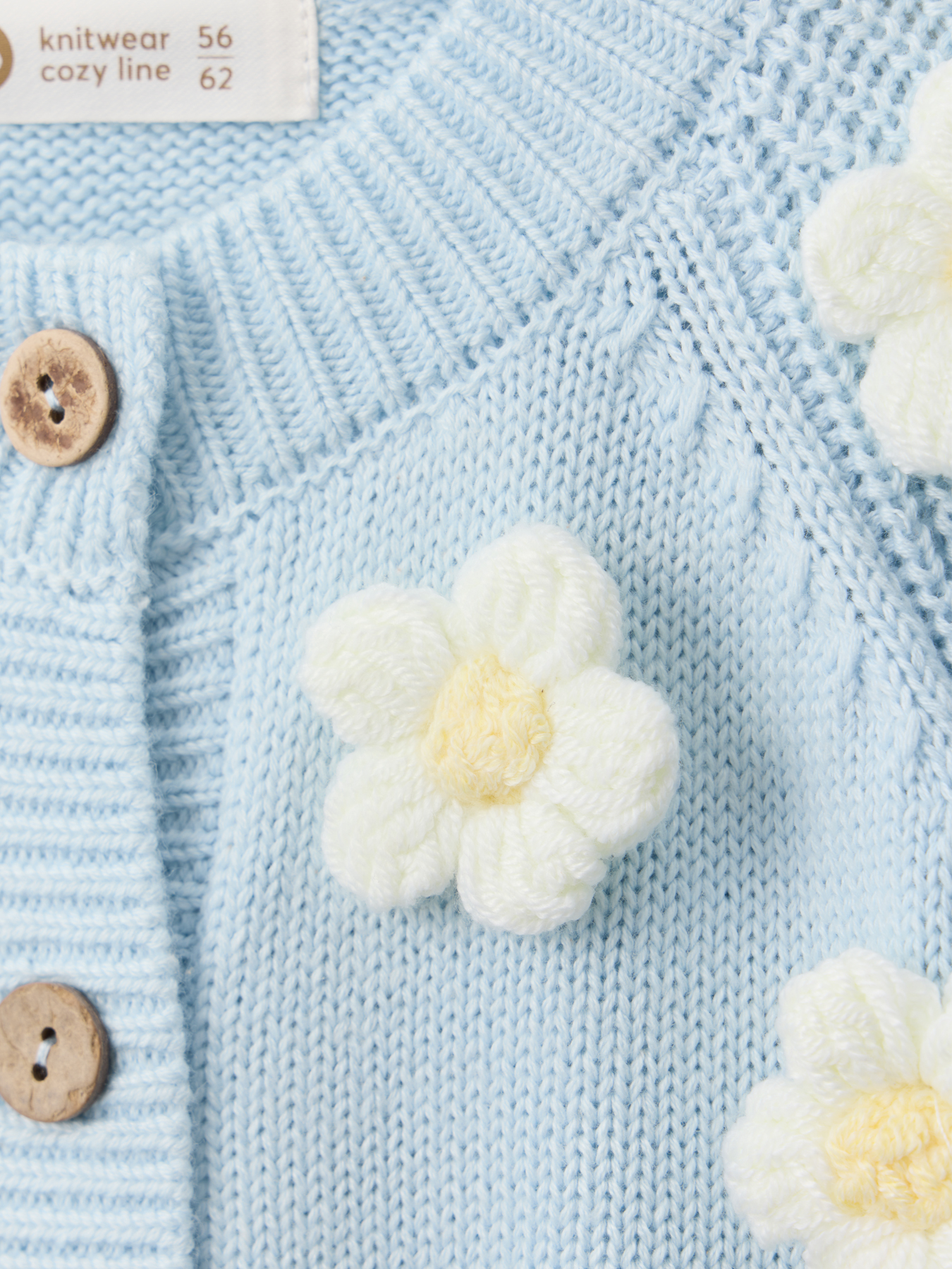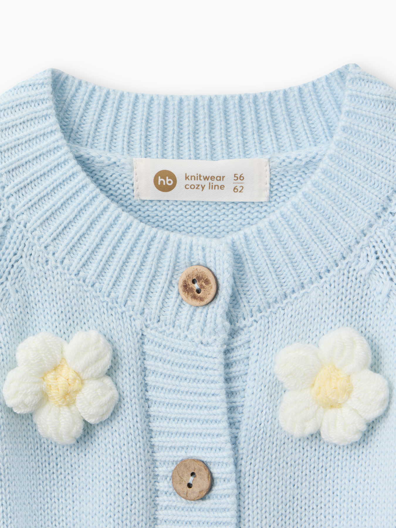 • Удобная застежка на пуговицы позволяет легко надевать и снимать кофту, что особенно важно для новорожденных
