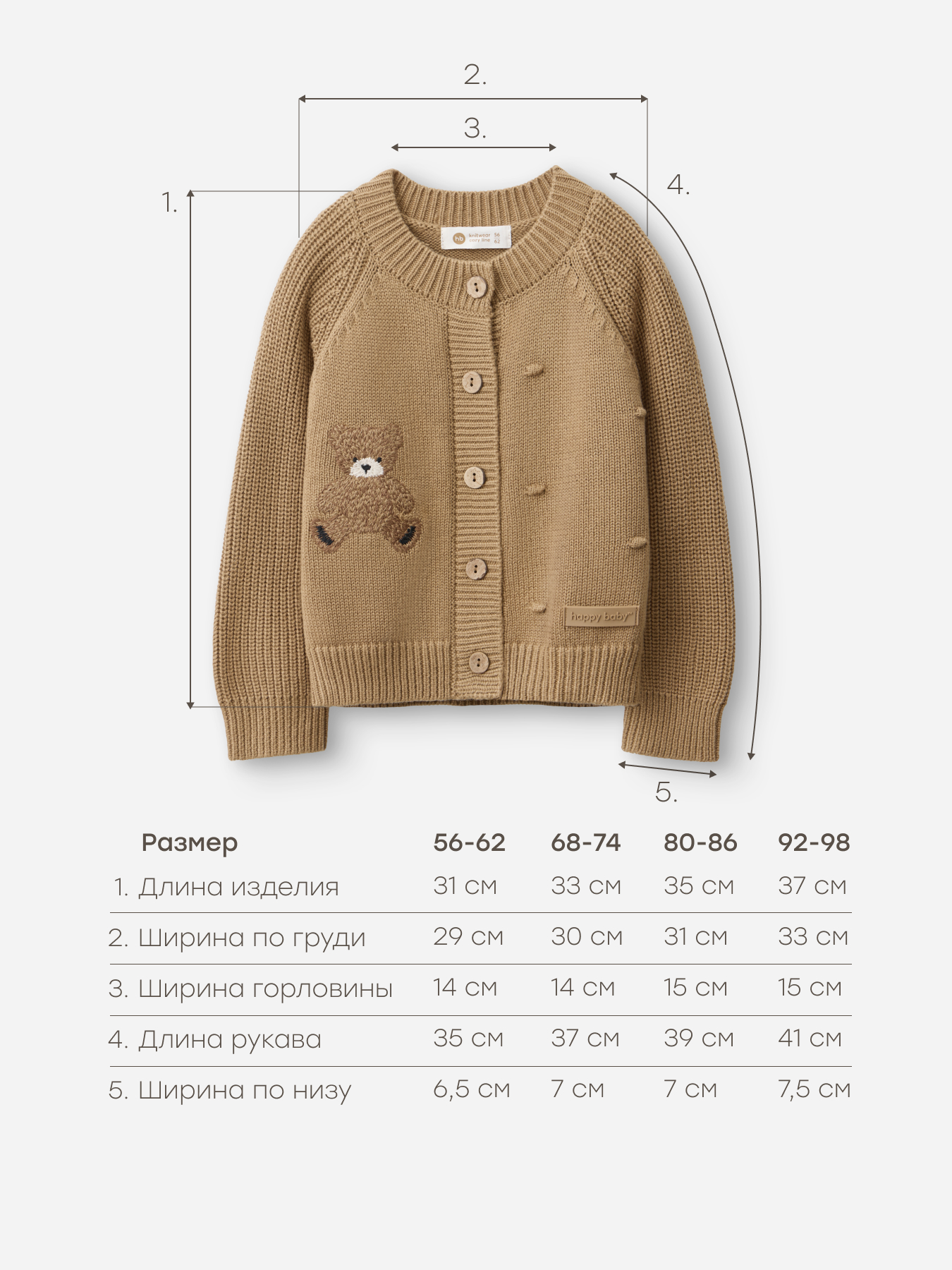 • Удобная застежка на пуговицы позволяет легко надевать и снимать кофту, что особенно важно для новорожденных
