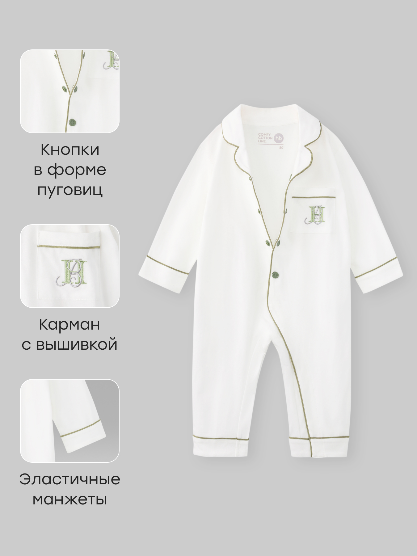 • Практичность - ряд кнопок в виде пуговиц по всей длине и дополнительное пространство для подгузника делают переодевание быстрым и удобным