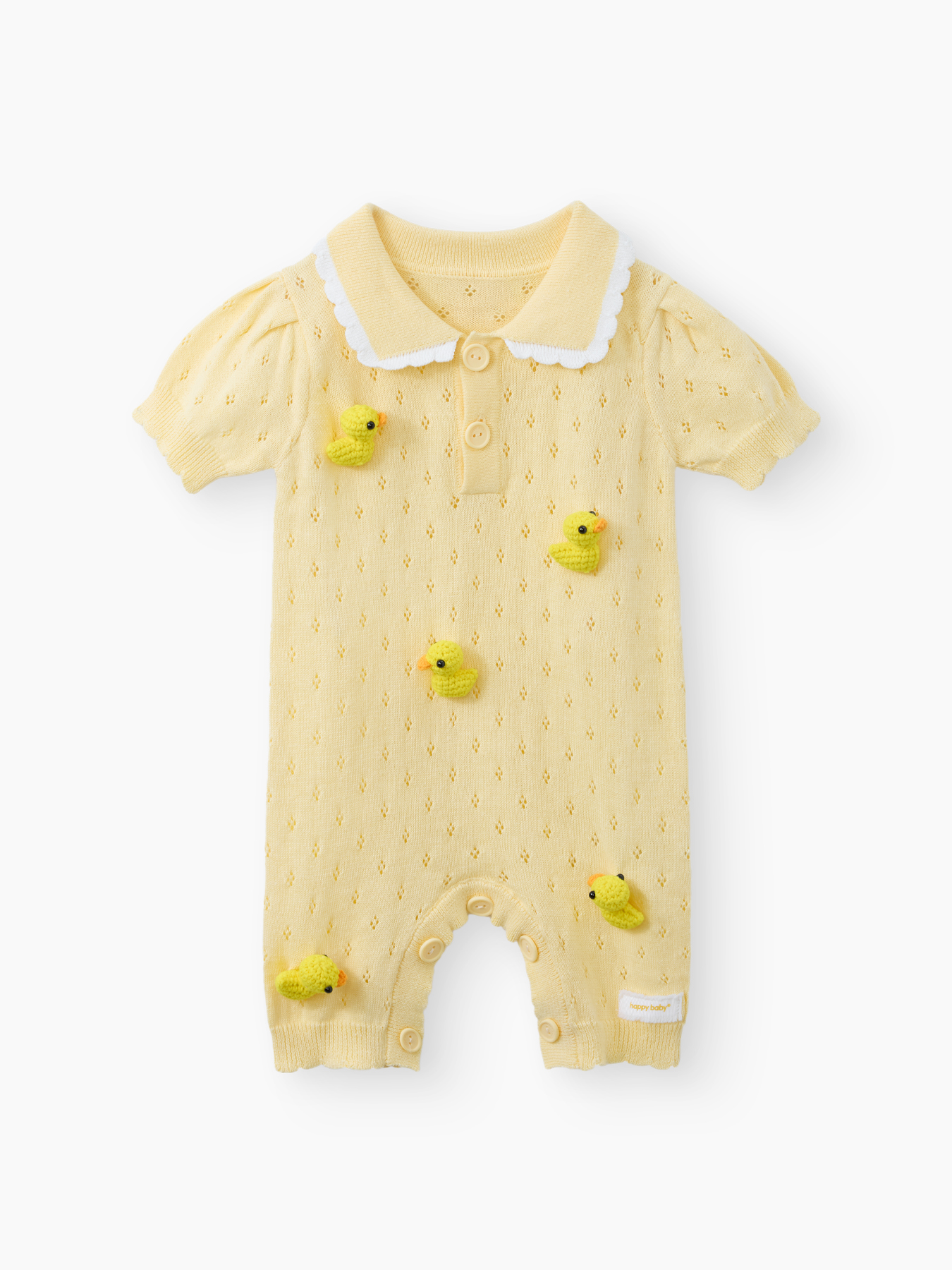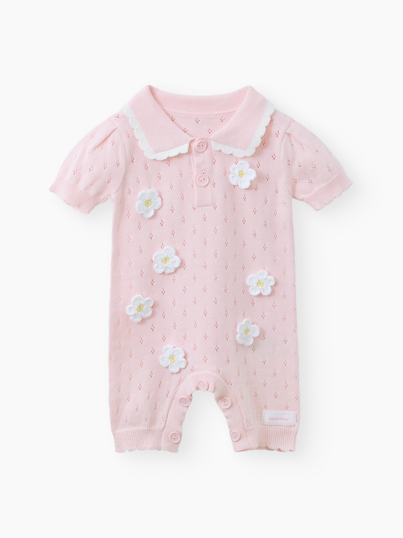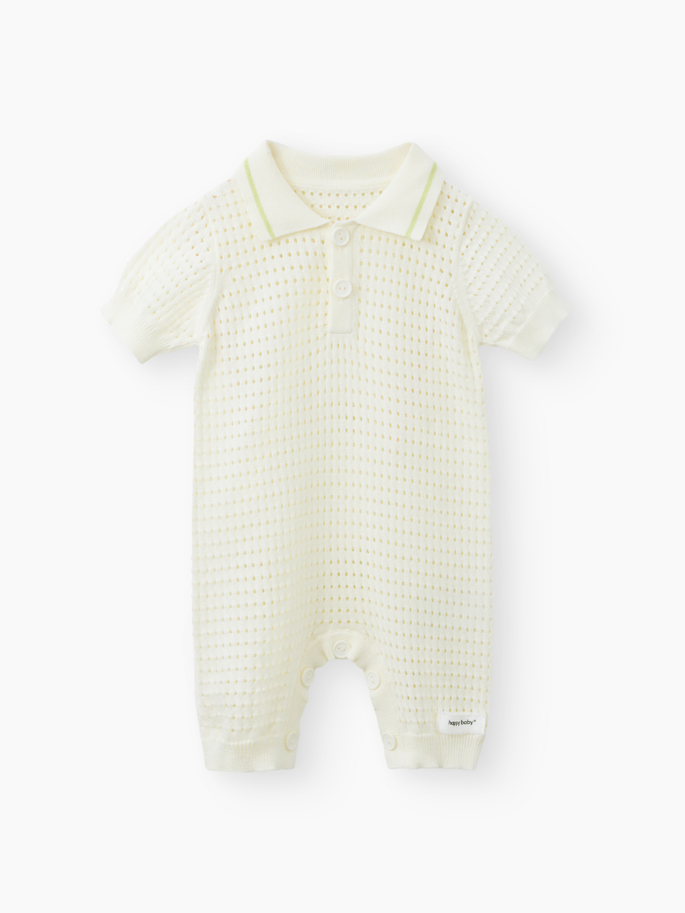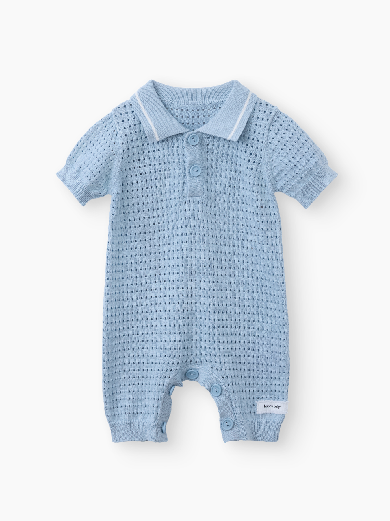 Вязаный комбинезон-песочник с отложным воротничком и рукавами-фонариками обеспечивает стиль с самого рождения. Благодаря пуговицам у горловины комбинезон легко надевать и снимать. Кнопки снизу облегчают смену подгузника. Связан из 100% хлопка. Натуральный материал дарит комфорт в жаркую погоду, дышит, защищает от перегрева. Стильный песочник подходит для сладкого сна и активного бодрствования.