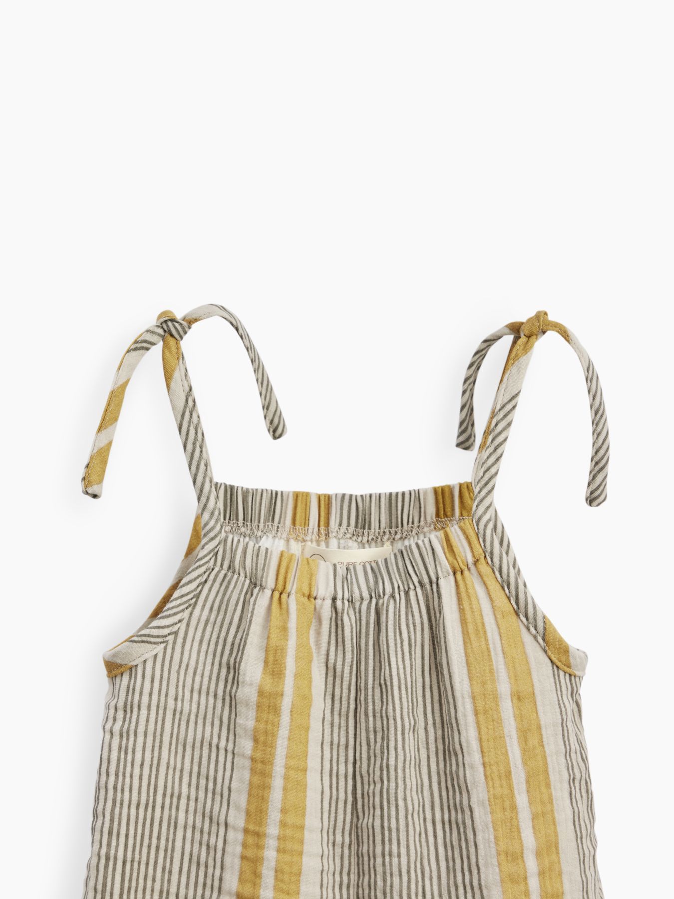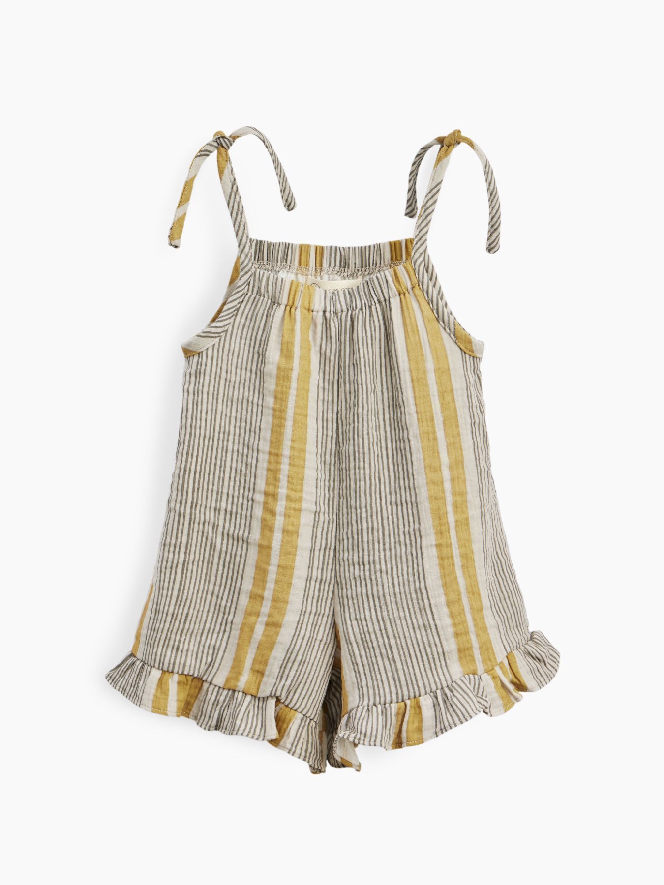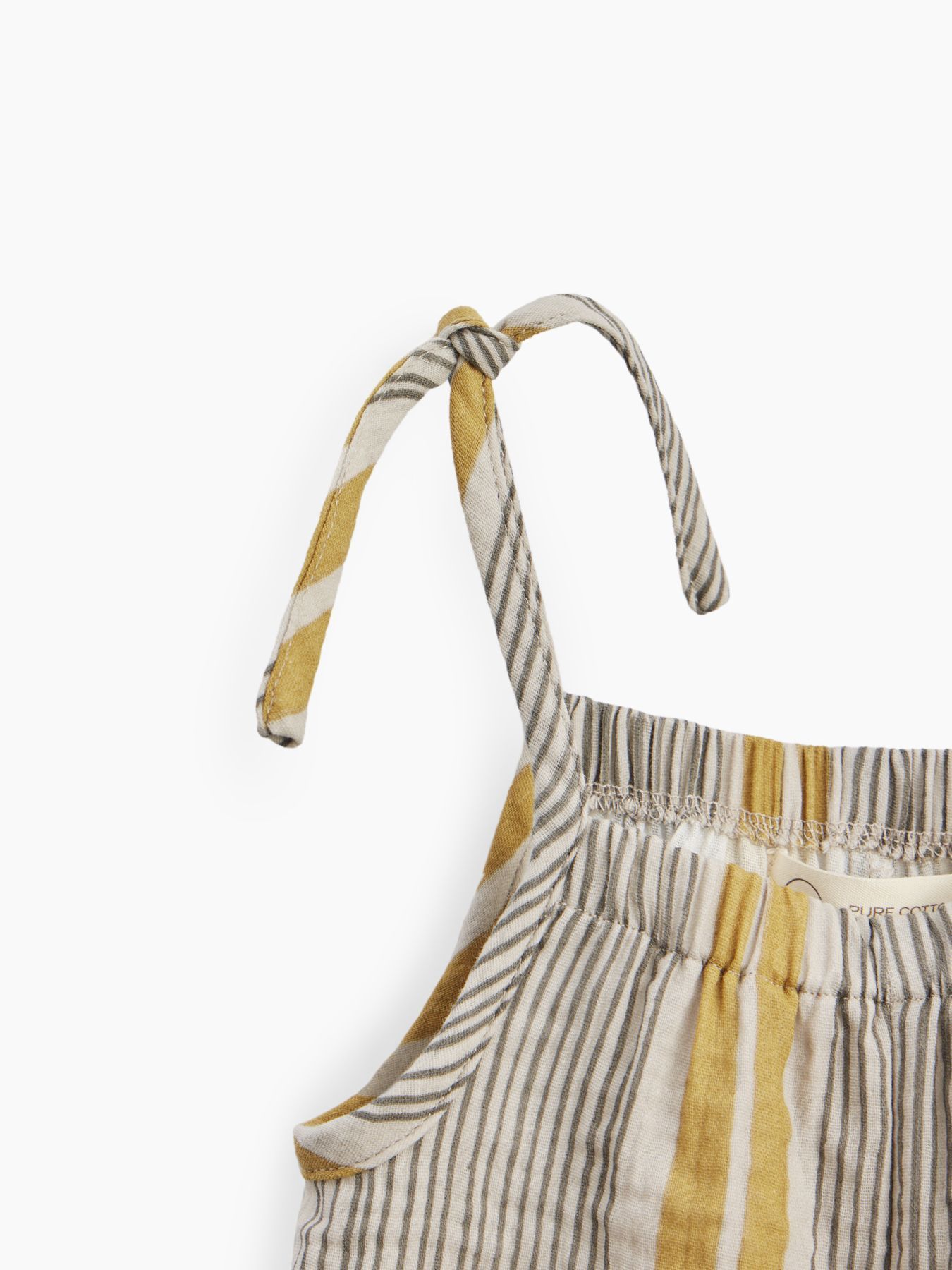 Летний комбинезон – одна из самых удобных вещей для самых маленьких. Свободный крой не сковывает движения, есть пространство под подгузник. Благодаря завязкам можно легко отрегулировать посадку по фигуре. Изделие сшито из 100% хлопковой ткани, которая отводит влагу, дышит, не натирает и не электризуется. Комбинезон можно носить с любыми топами или без них.