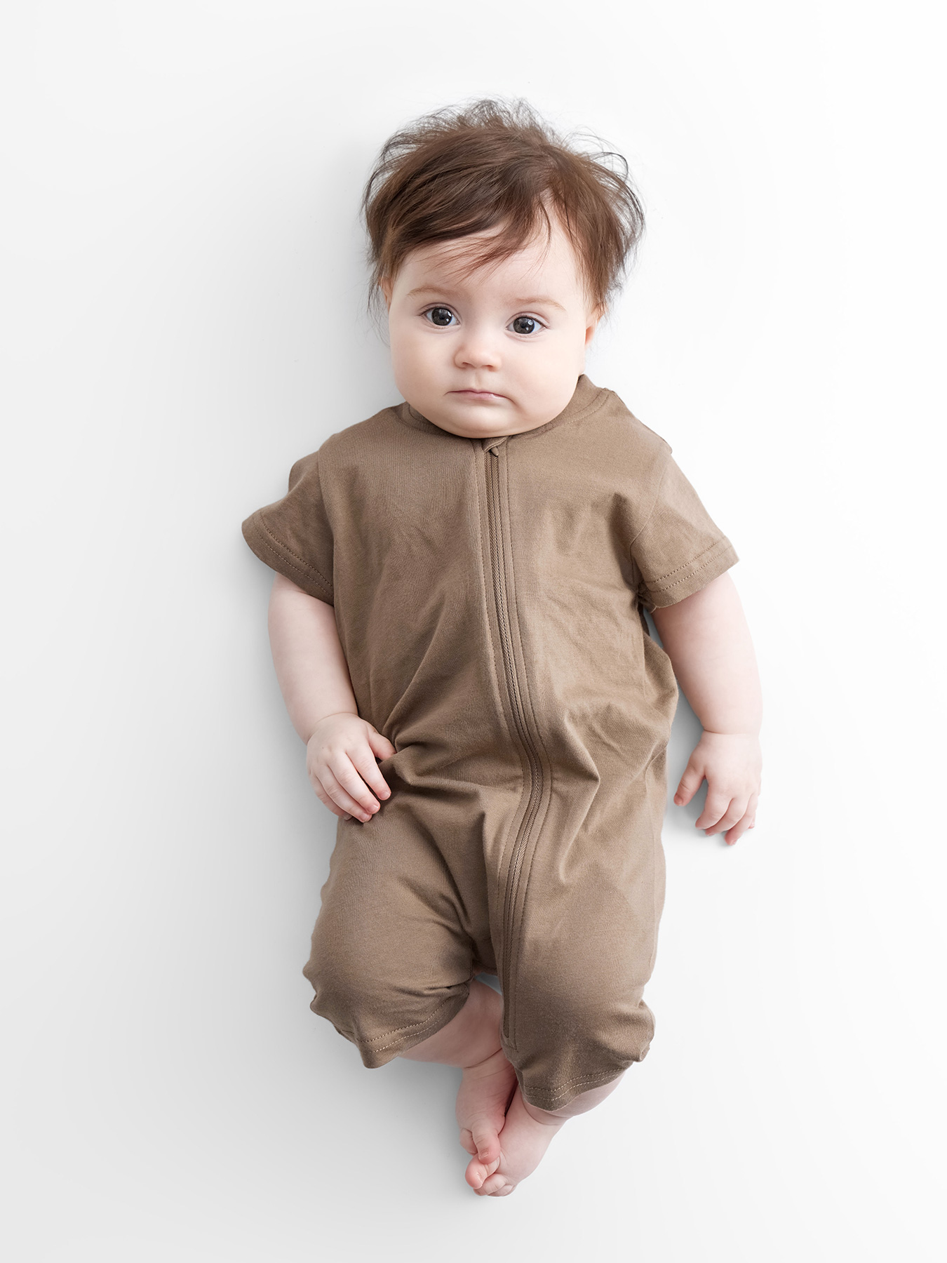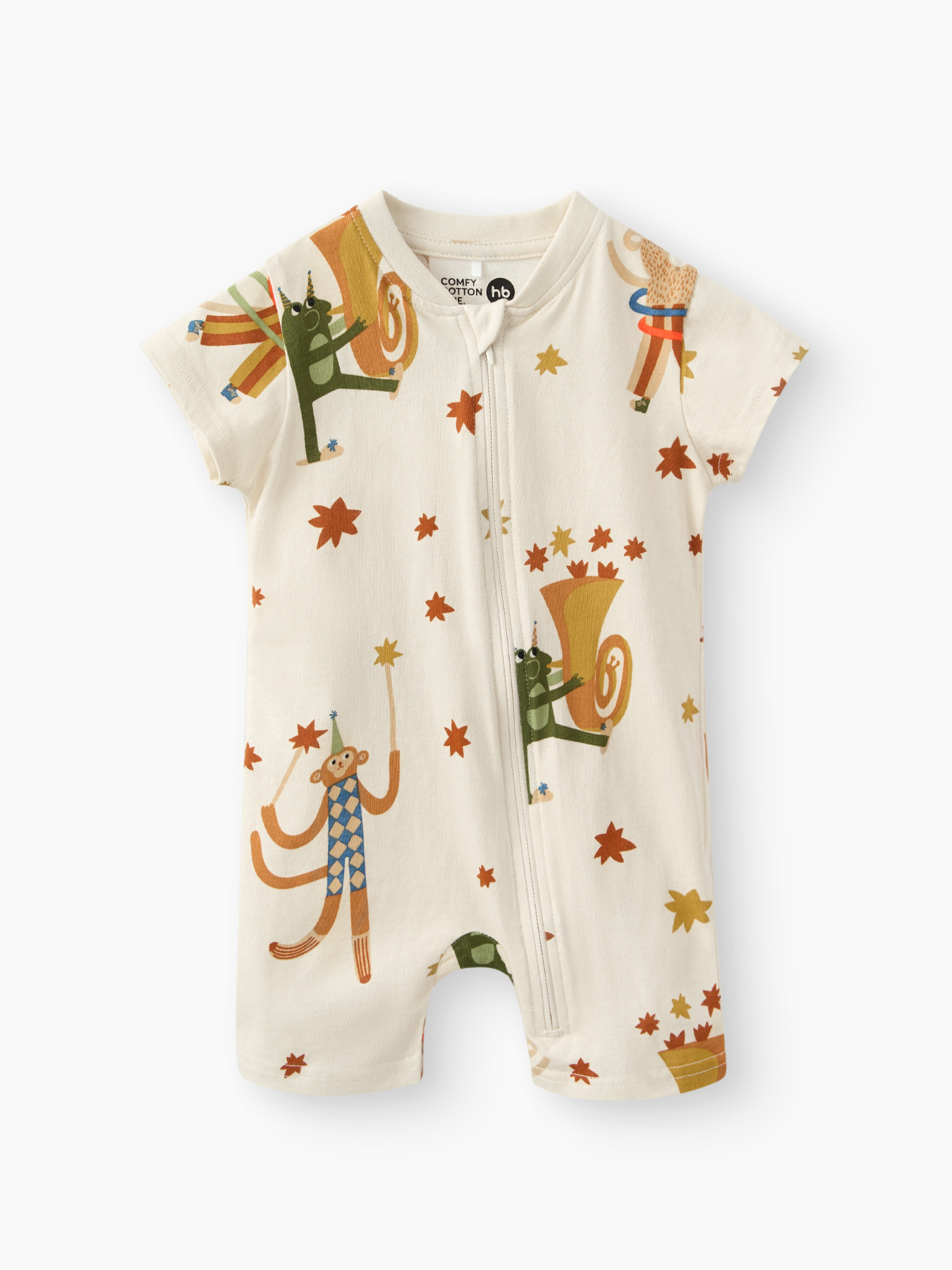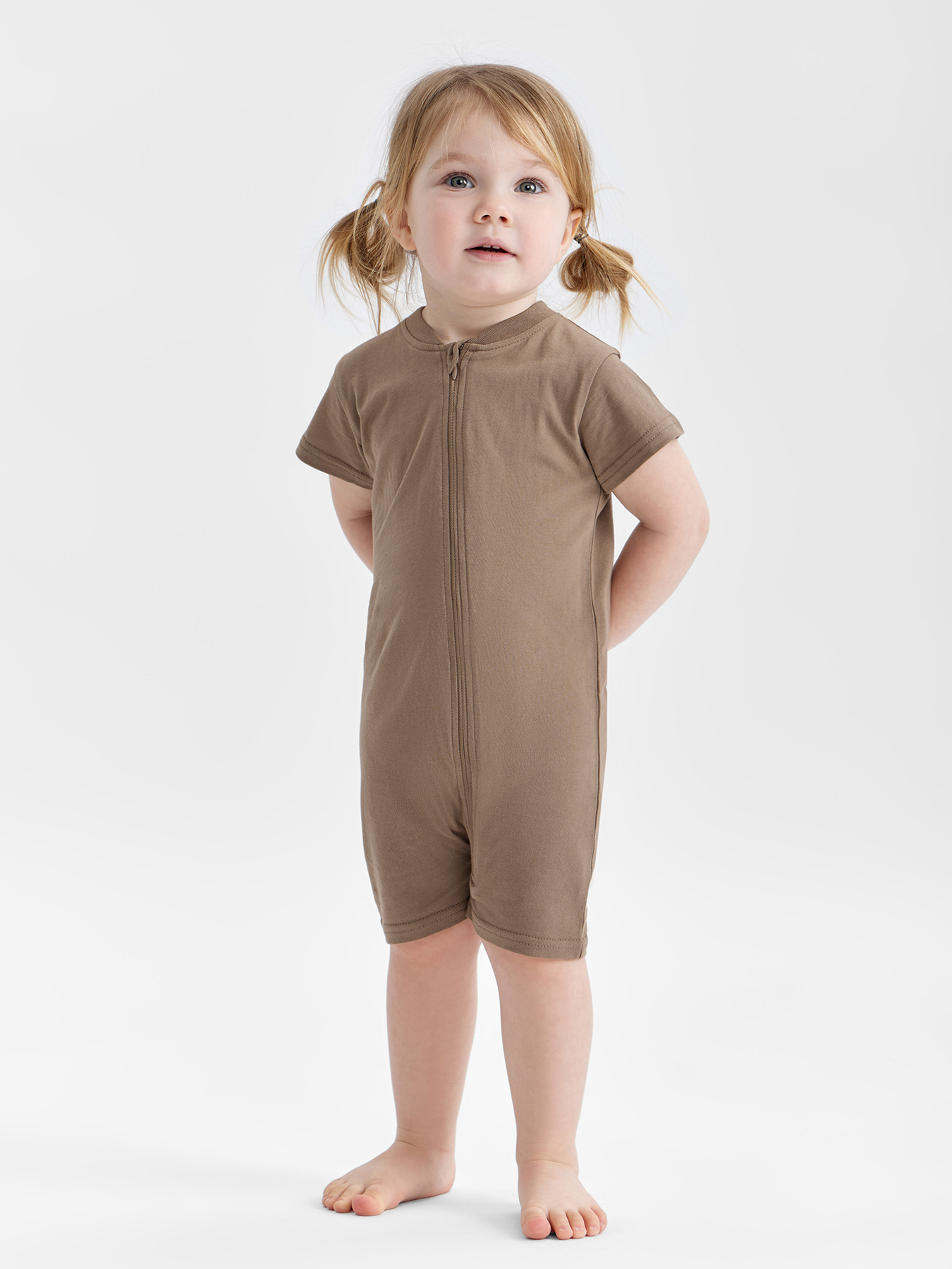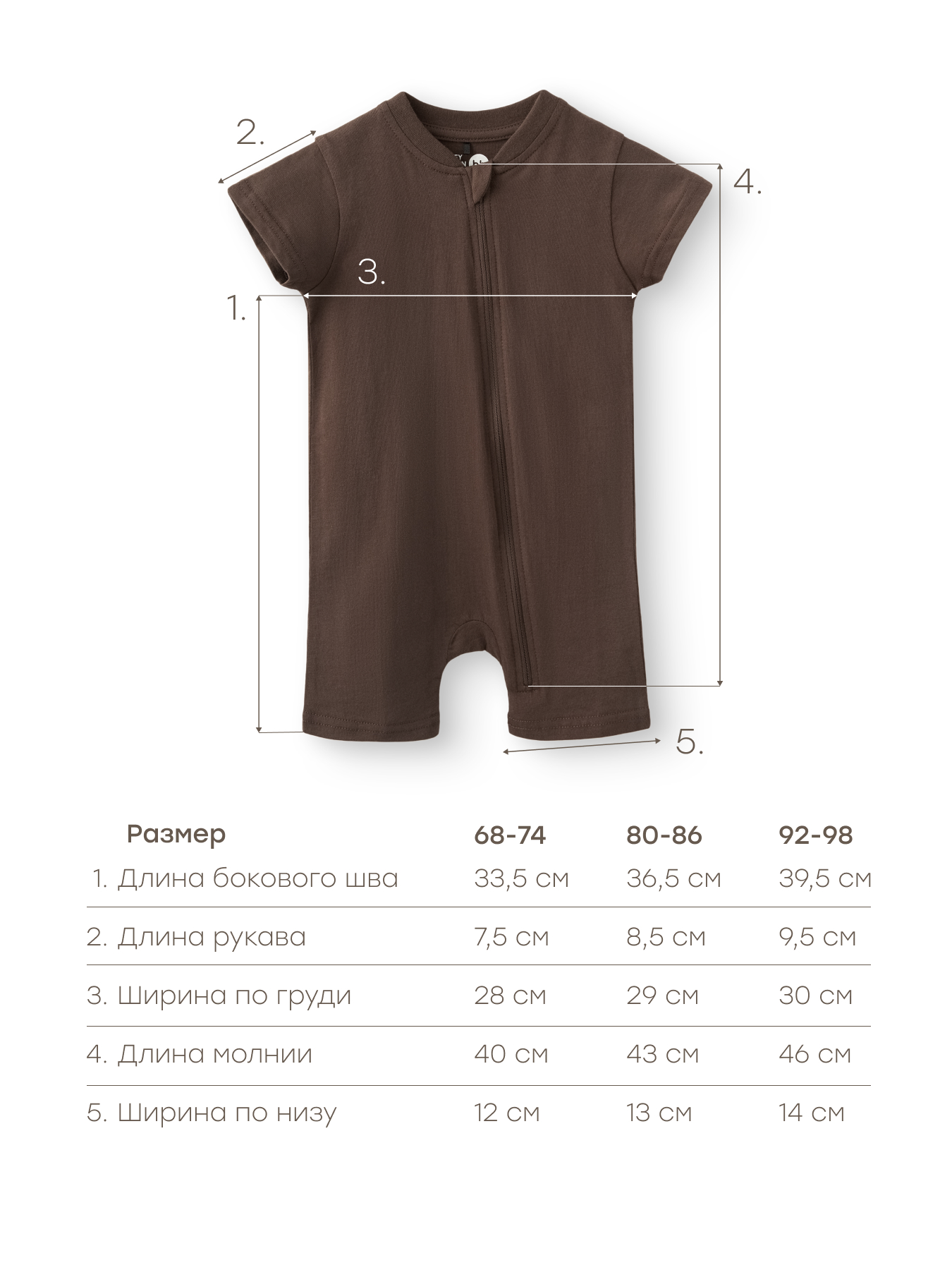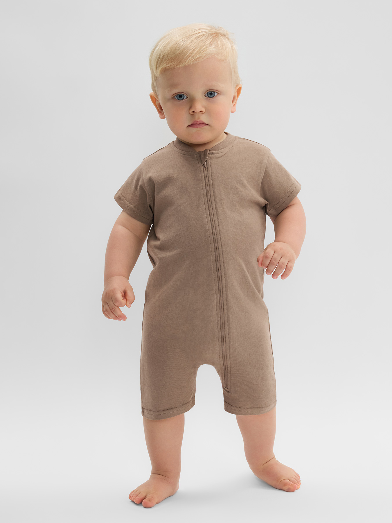 Комбинезон из хлопкового трикотажа — удобная и практичная модель для малышей. Мягкий и дышащий материал обеспечивает комфорт и заботится о нежной коже ребенка. Короткие рукава подходят для теплой погоды, а застежка-молния, проходящая от горловины до низа, облегчает переодевание. Продуманное лекало создает дополнительное пространство для подгузника и обеспечивает свободу движений. Идеальный выбор для игр, сна и прогулок.