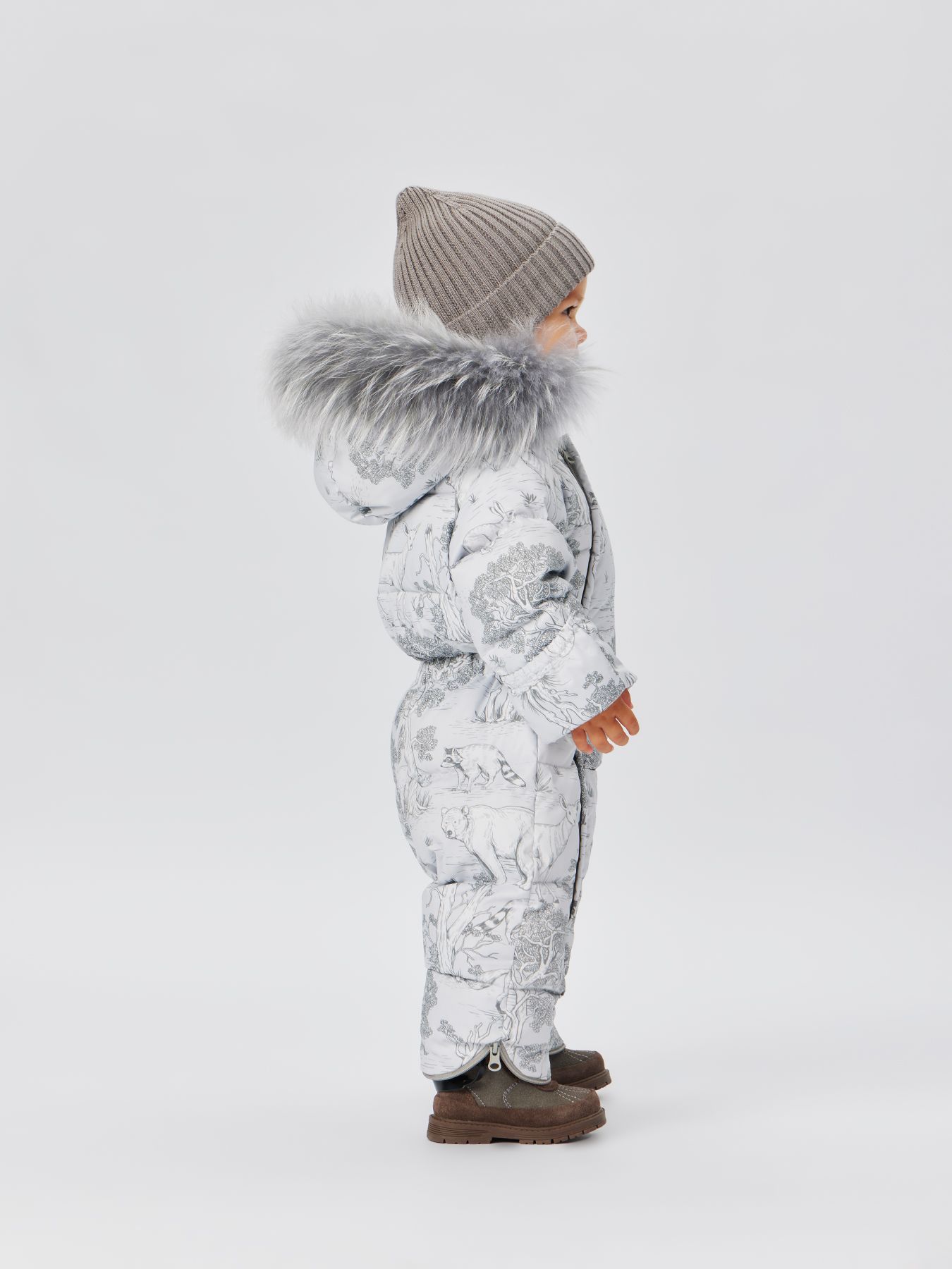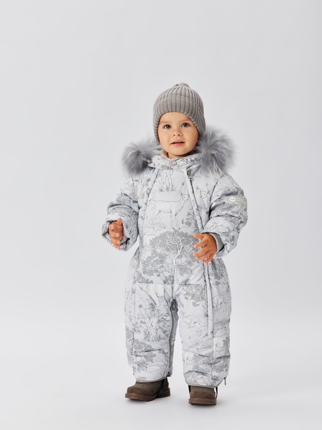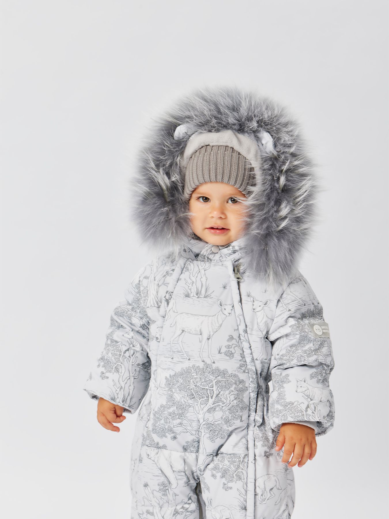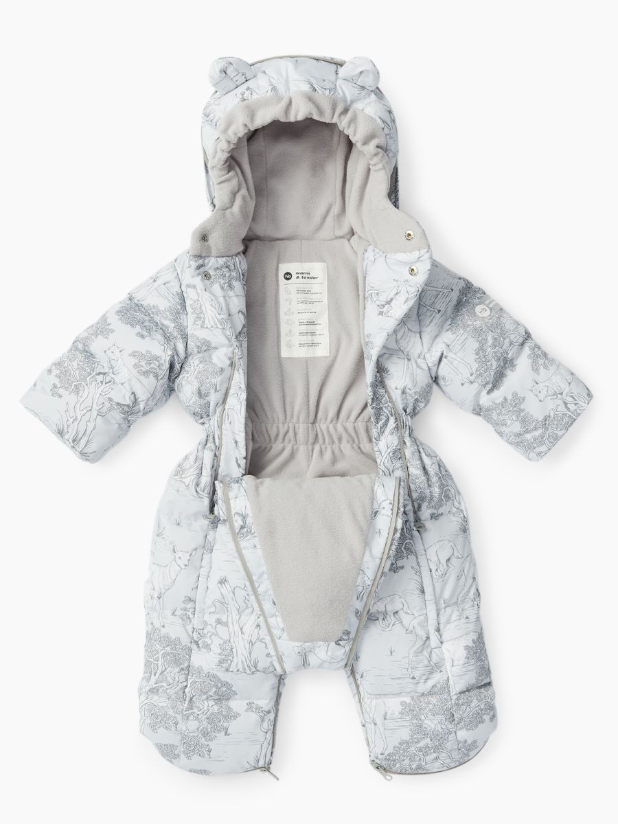 Стильный комбинезон подходит для тёплой и холодной зимы. Внутри – наполнитель из 85% пух, 15% перо. Крой учитывает анатомические особенности детей и не сковывает движений – комфортно спать и двигаться. Благодаря конструкции капюшона и горловины шея и уши малыша полностью закрыты. Комбинезон можно стирать в машине, гладить и отпаривать.