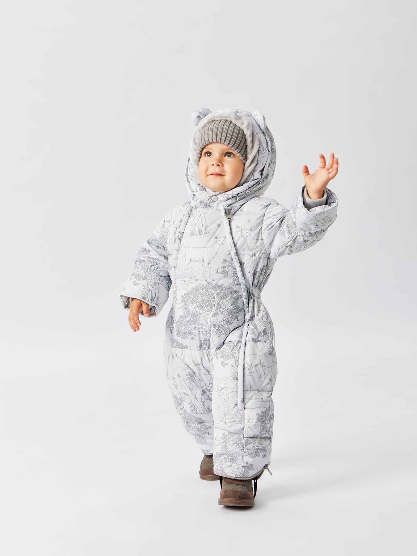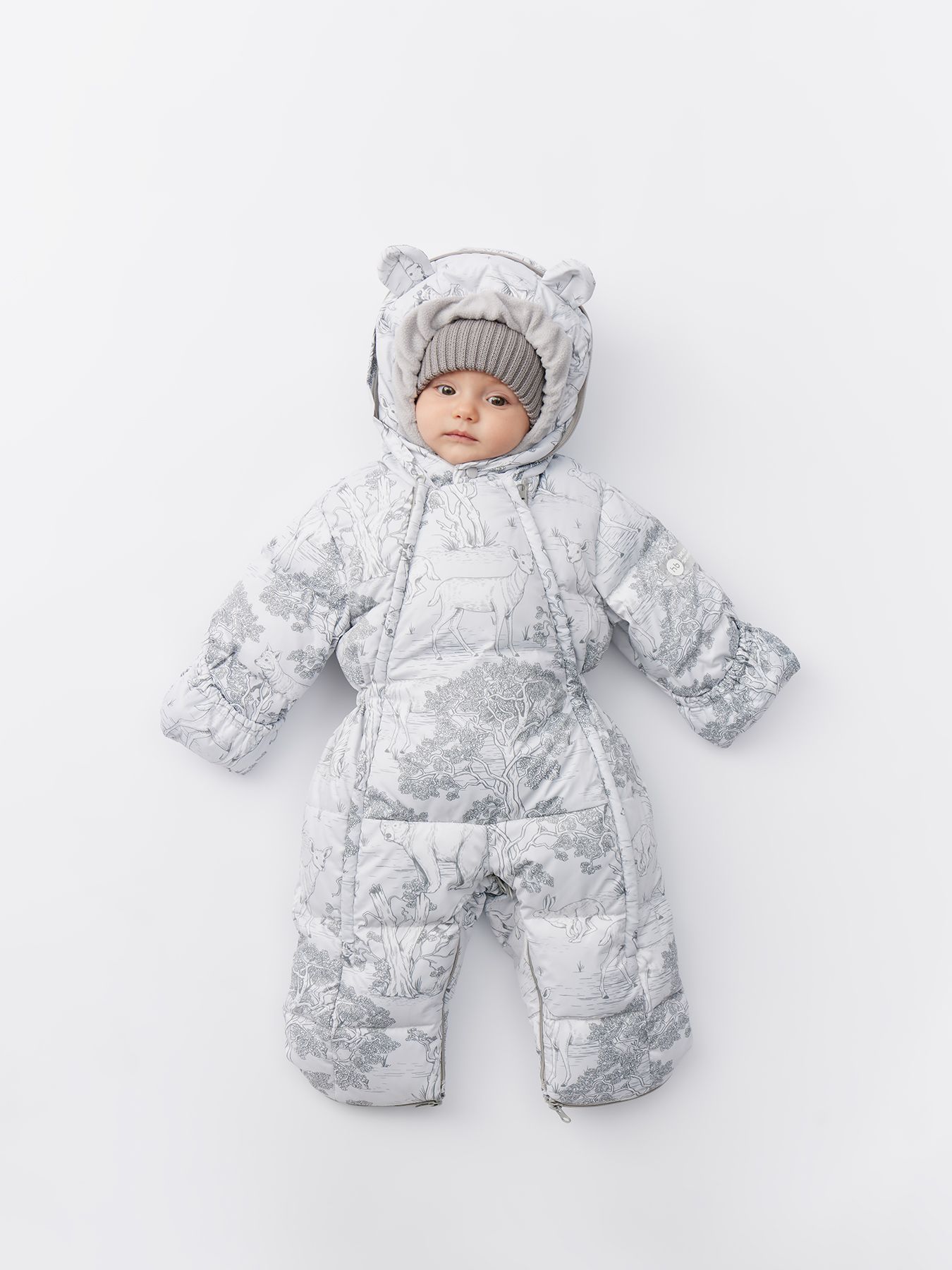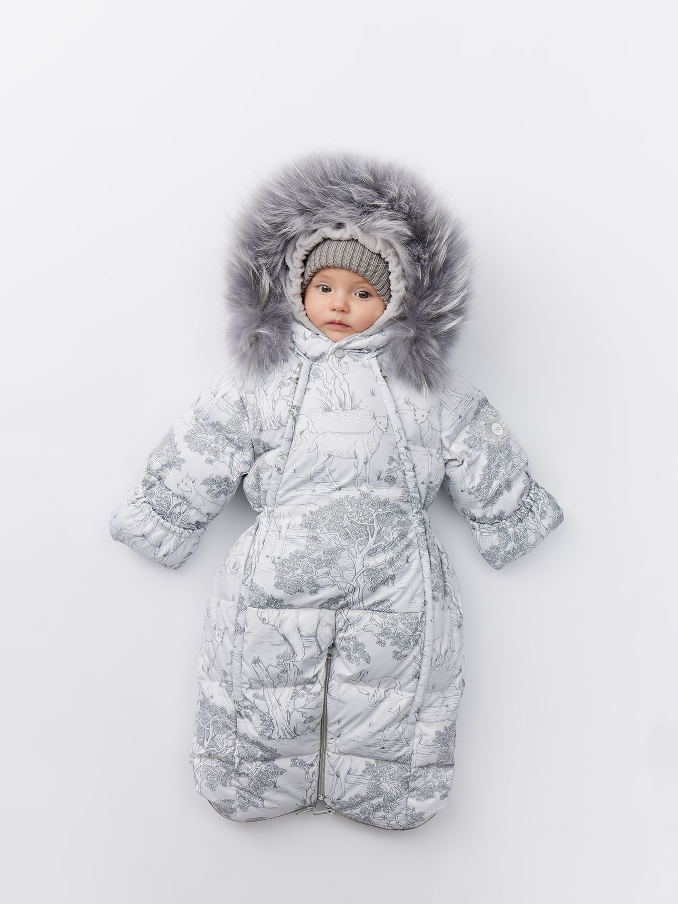 Стильный комбинезон подходит для тёплой и холодной зимы. Внутри – наполнитель из 85% пух, 15% перо. Крой учитывает анатомические особенности детей и не сковывает движений – комфортно спать и двигаться. Благодаря конструкции капюшона и горловины шея и уши малыша полностью закрыты. Комбинезон можно стирать в машине, гладить и отпаривать.