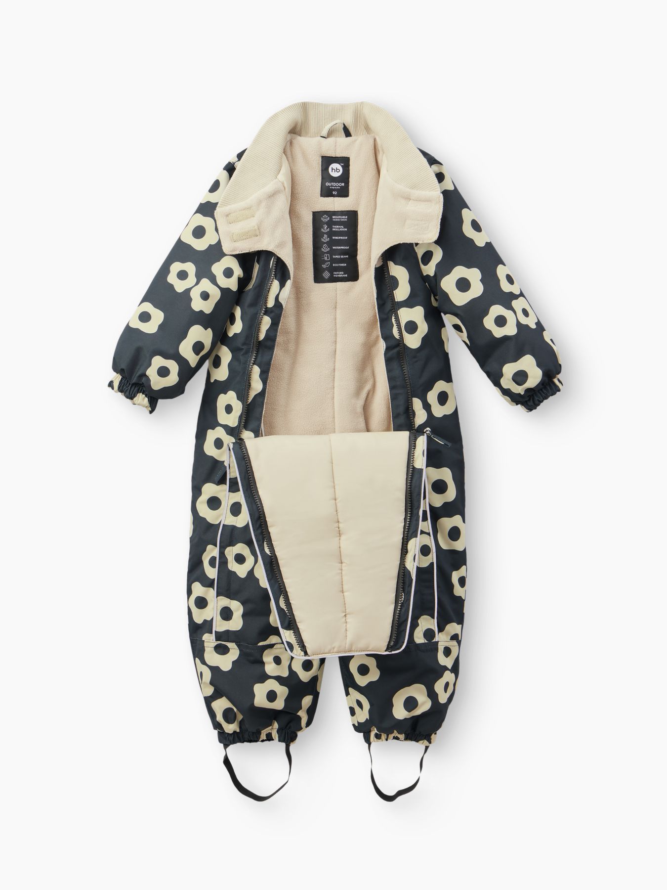 • Две молнии на передней части комбинезона обеспечивают быстрый и удобный доступ, упрощая процесс надевания и снятия