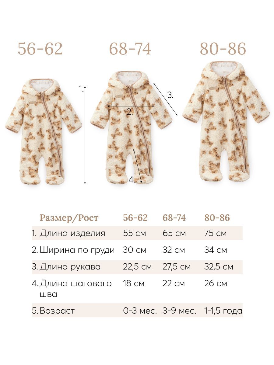 Флисовый комбинезон для новорожденных от Happy Baby станет незаменимой вещью в гардеробе вашего малыша. Изготовленный из мягкого и приятного на ощупь материала, этот комбинезон для малышей обеспечивает максимальный комфорт в холодное время года. Он идеально подходит для демисезонных периодов, когда необходимо обеспечить надежное утепление новорожденному ребенку, особенно в первый годик его жизни. Мягкий и теплый комбинезон с подкладкой из 100% хлопка и утеплителем из полиэфира — надежный выбор для младенцев. Хлопковый подклад и флис обладают дышащими свойствами, что позволит малышу чувствовать себя максимально комфортно, а закрывающиеся рукава и закрытая стопа позволяют лучше сохранить тепло ручек и ножек ребенка. Этот комбинезон нательный для новорожденных обладает рядом преимуществ, которые делают его прекрасным выбором для маленьких модников. Его стильный и современный дизайн позволяет создать неповторимый образ для вашего малыша. Капюшон с милыми ушками придает особый шарм, модные плюшевые уши мишки на капюшоне смотрятся стильно и очень нравятся детям. Такой слитный комбинезон подойдет как для мальчика, так и для девочки. У него удобная застежка - молния, которая значительно облегчает переодевание, что важно, если ваш малыш очень активный непоседа. Кроме того, наличие молнии упрощает уход за ребенком. В зависимости от погодных условий его можно использовать как зимний или осенний флисовый слип. Если на улице зима, прохладная осень или весна, то оденьте его в качестве поддевы под верхнюю одежду малыша для прогулок в коляске. Такой нательный костюм согреет в любую непогоду. Он идеально подходит для длительных прогулок на улице, в нем ребенок может чувствовать себя комфортно. Комбинезон также может быть использован как домашняя одежда или основа под новогодний наряд. Независимо от ситуации, он всегда обеспечивает ощущение тепла и уюта.