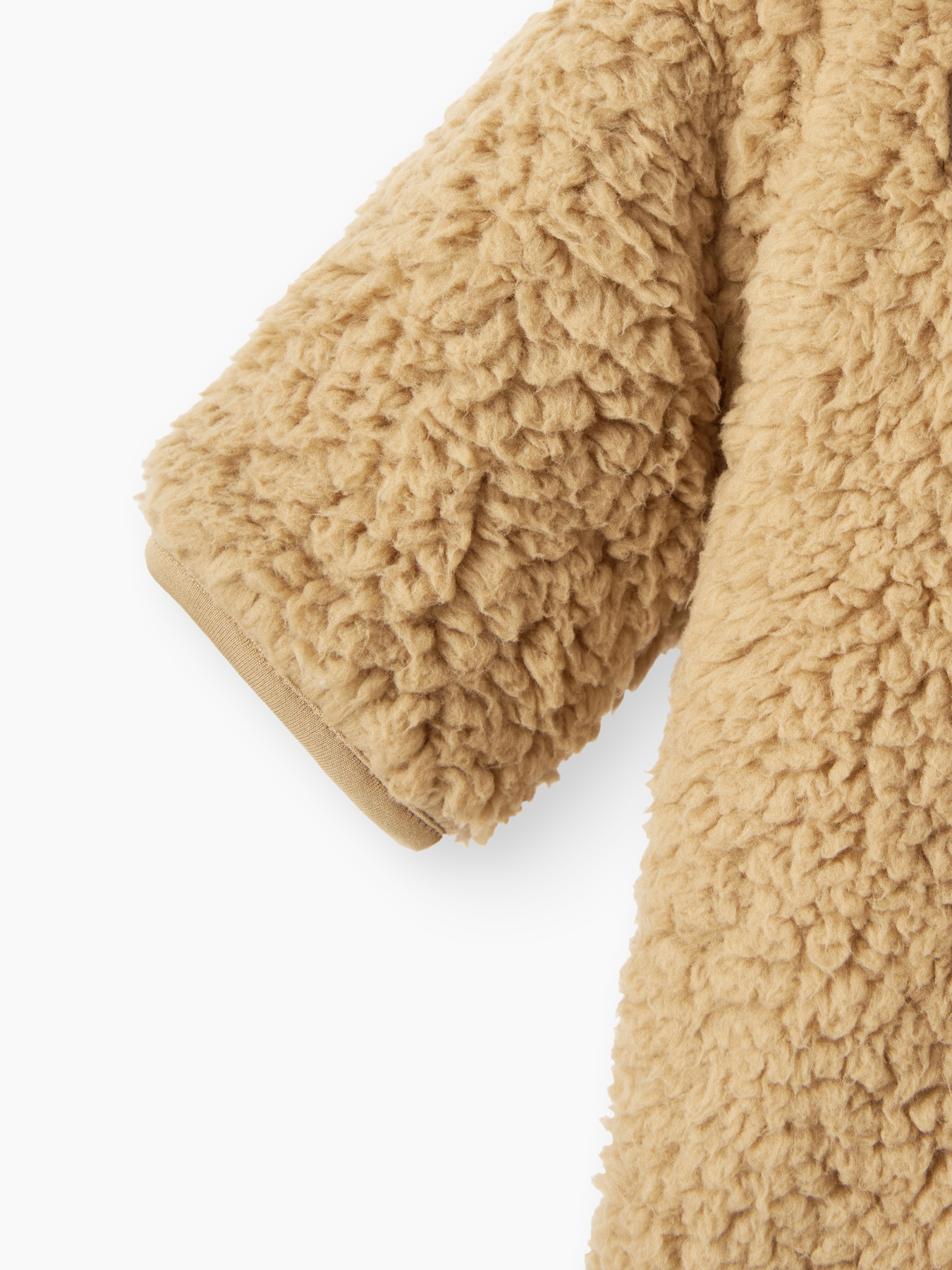 Флисовый комбинезон для новорожденных от Happy Baby станет незаменимой вещью в гардеробе вашего малыша. Изготовленный из мягкого и приятного на ощупь материала, этот комбинезон для малышей обеспечивает максимальный комфорт в холодное время года. Он идеально подходит для демисезонных периодов, когда необходимо обеспечить надежное утепление новорожденному ребенку, особенно в первый годик его жизни. Мягкий и теплый комбинезон с подкладкой из 100% хлопка и утеплителем из полиэфира — надежный выбор для младенцев. Хлопковый подклад и флис обладают дышащими свойствами, что позволит малышу чувствовать себя максимально комфортно, а закрывающиеся рукава и закрытая стопа позволяют лучше сохранить тепло ручек и ножек ребенка. Этот комбинезон нательный для новорожденных обладает рядом преимуществ, которые делают его прекрасным выбором для маленьких модников. Его стильный и современный дизайн позволяет создать неповторимый образ для вашего малыша. Капюшон с милыми ушками придает особый шарм, модные плюшевые уши мишки на капюшоне смотрятся стильно и очень нравятся детям. Такой слитный комбинезон подойдет как для мальчика, так и для девочки. У него удобная застежка - молния, которая значительно облегчает переодевание, что важно, если ваш малыш очень активный непоседа. Кроме того, наличие молнии упрощает уход за ребенком. В зависимости от погодных условий его можно использовать как зимний или осенний флисовый слип. Если на улице зима, прохладная осень или весна, то оденьте его в качестве поддевы под верхнюю одежду малыша для прогулок в коляске. Такой нательный костюм согреет в любую непогоду. Он идеально подходит для длительных прогулок на улице, в нем ребенок может чувствовать себя комфортно. Комбинезон также может быть использован как домашняя одежда или основа под новогодний наряд. Независимо от ситуации, он всегда обеспечивает ощущение тепла и уюта.