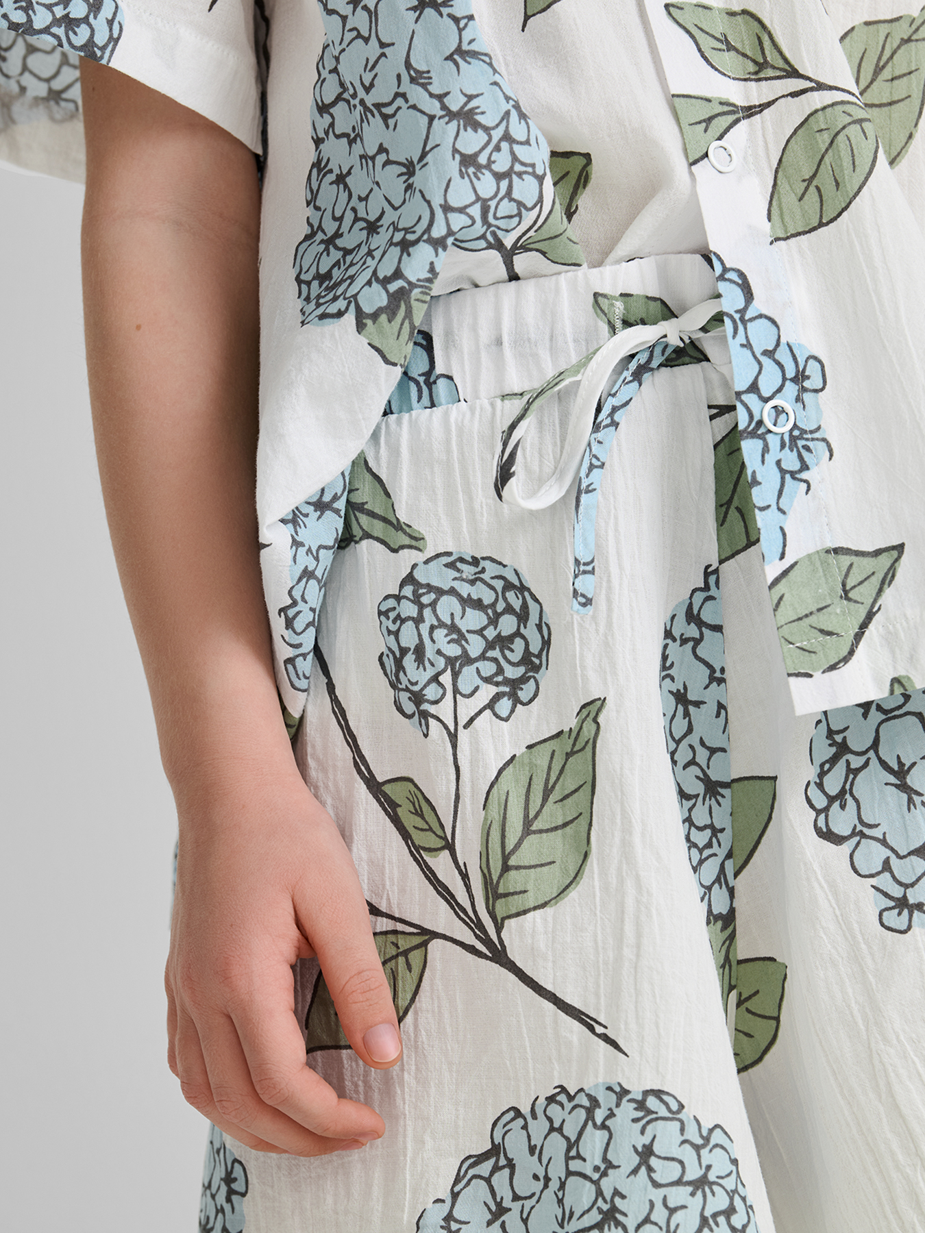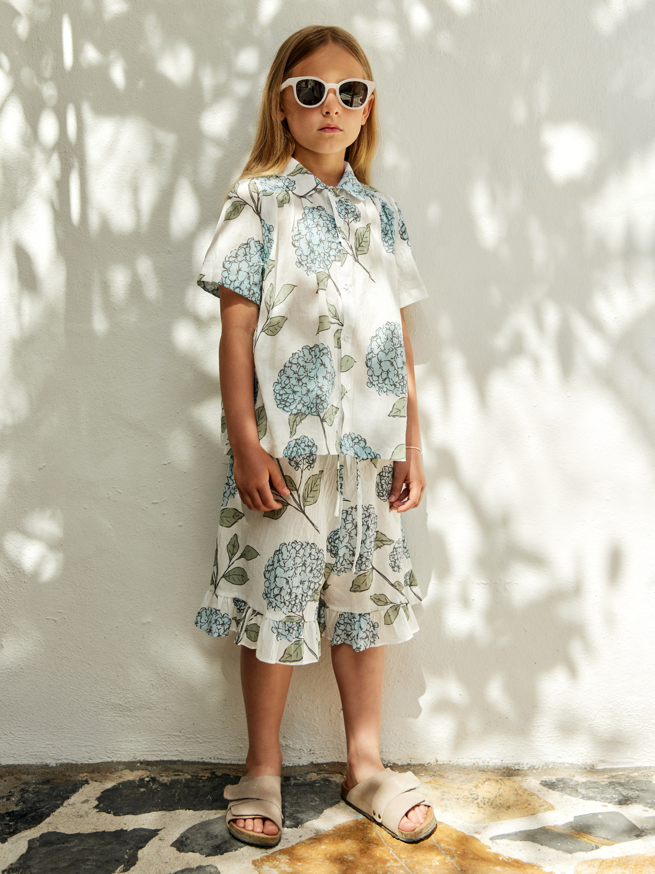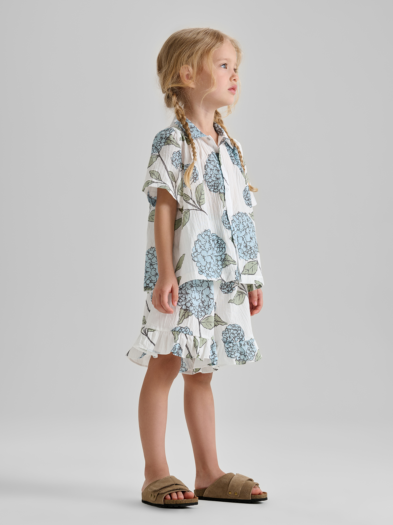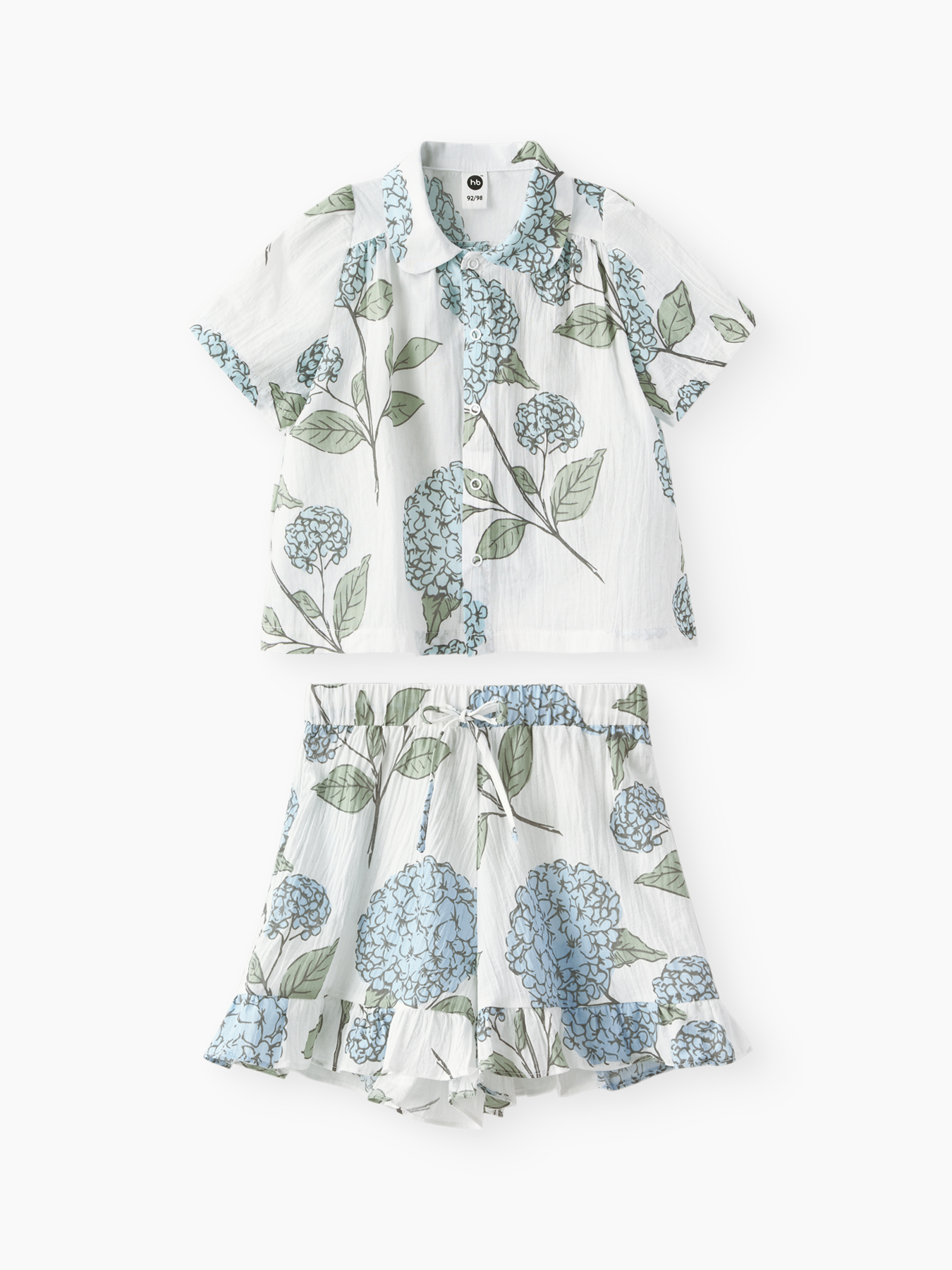 Комплект из натурального хлопка обеспечивает комфорт и свободу движений в жаркую погоду. Блуза с рукавами-фонариками и отложным круглым воротничком создает нежный и стильный образ, а застежка на пуговицы облегчает процесс одевания. Эластичная резинка на поясе шорт обеспечивает удобную посадку, а воланы по низу придают изящности. Идеально подходит для летних прогулок, праздничных мероприятий или фотосессий.