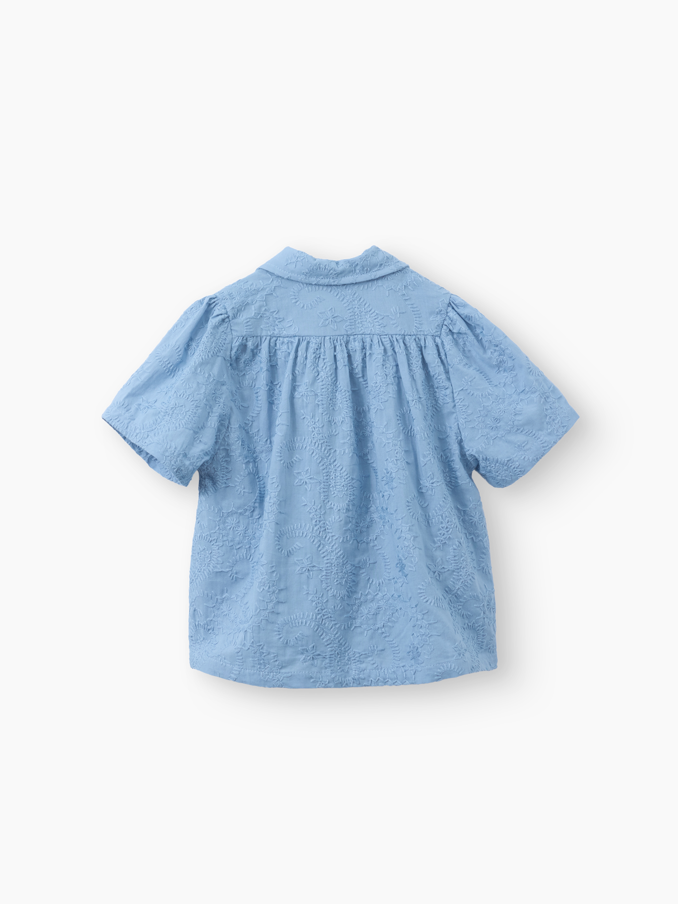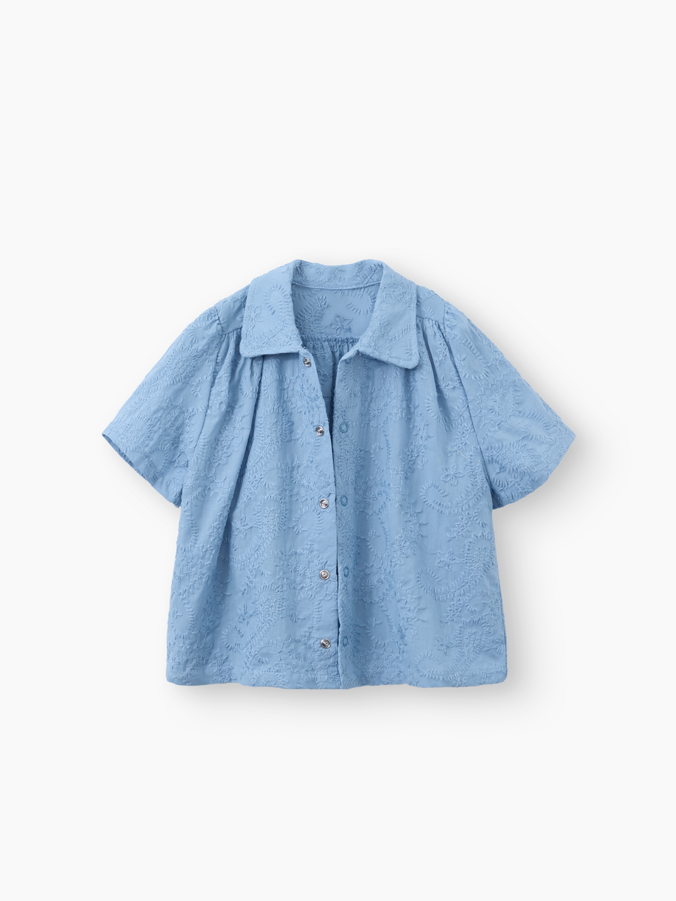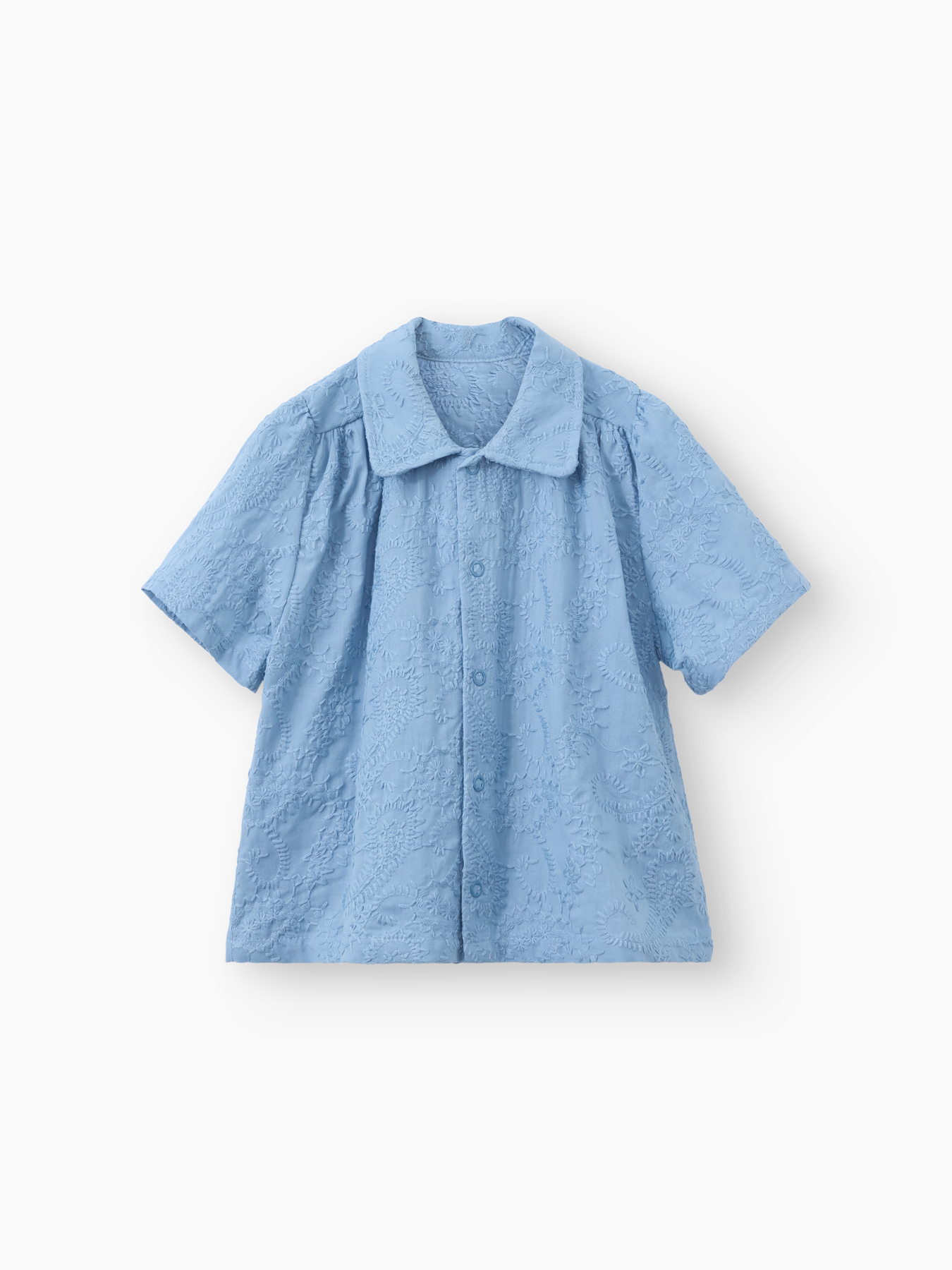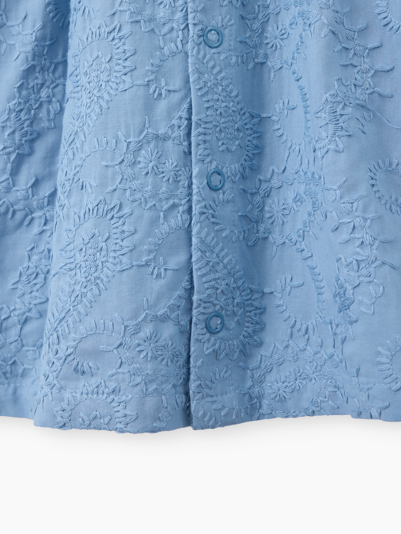 • Ткань с вышивкой и рюши на шортах — добавляют визуальный акцент