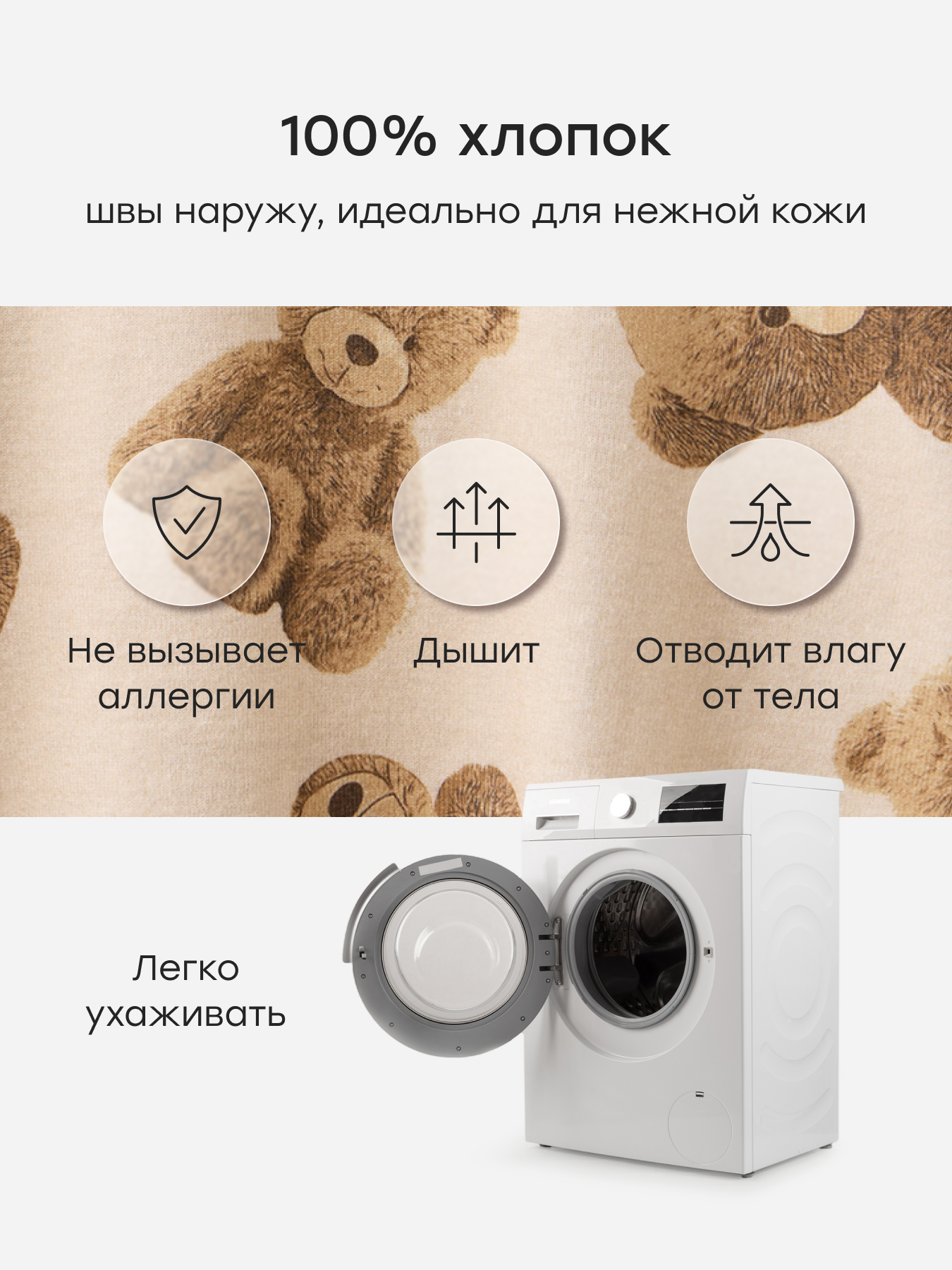 • Мягкий материал — 100% хлопок, эластичный и приятный на ощупь