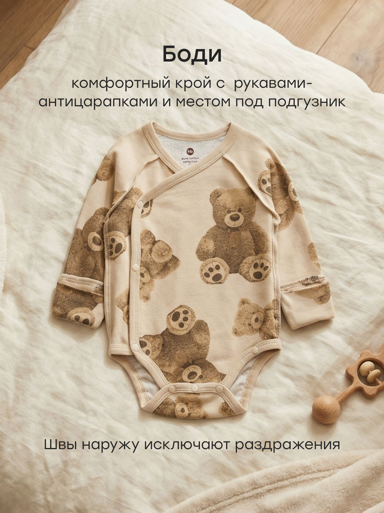 • Швы наружу — исключают контакт с кожей, обеспечивая комфорт для самых маленьких