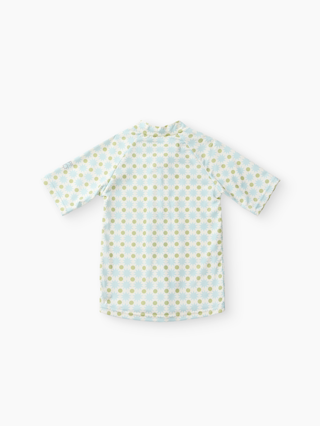 • Комплект — раздельный купальник, футболка на молнии с защитой от солнца, резинка для волос