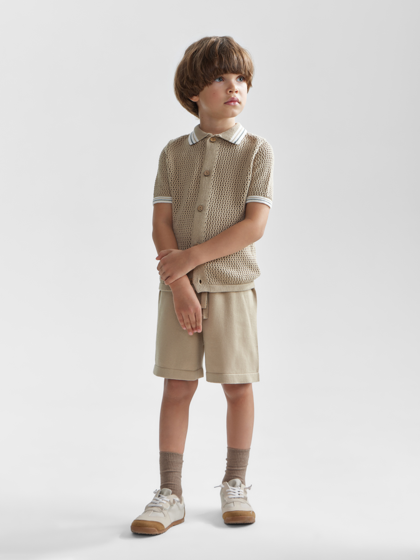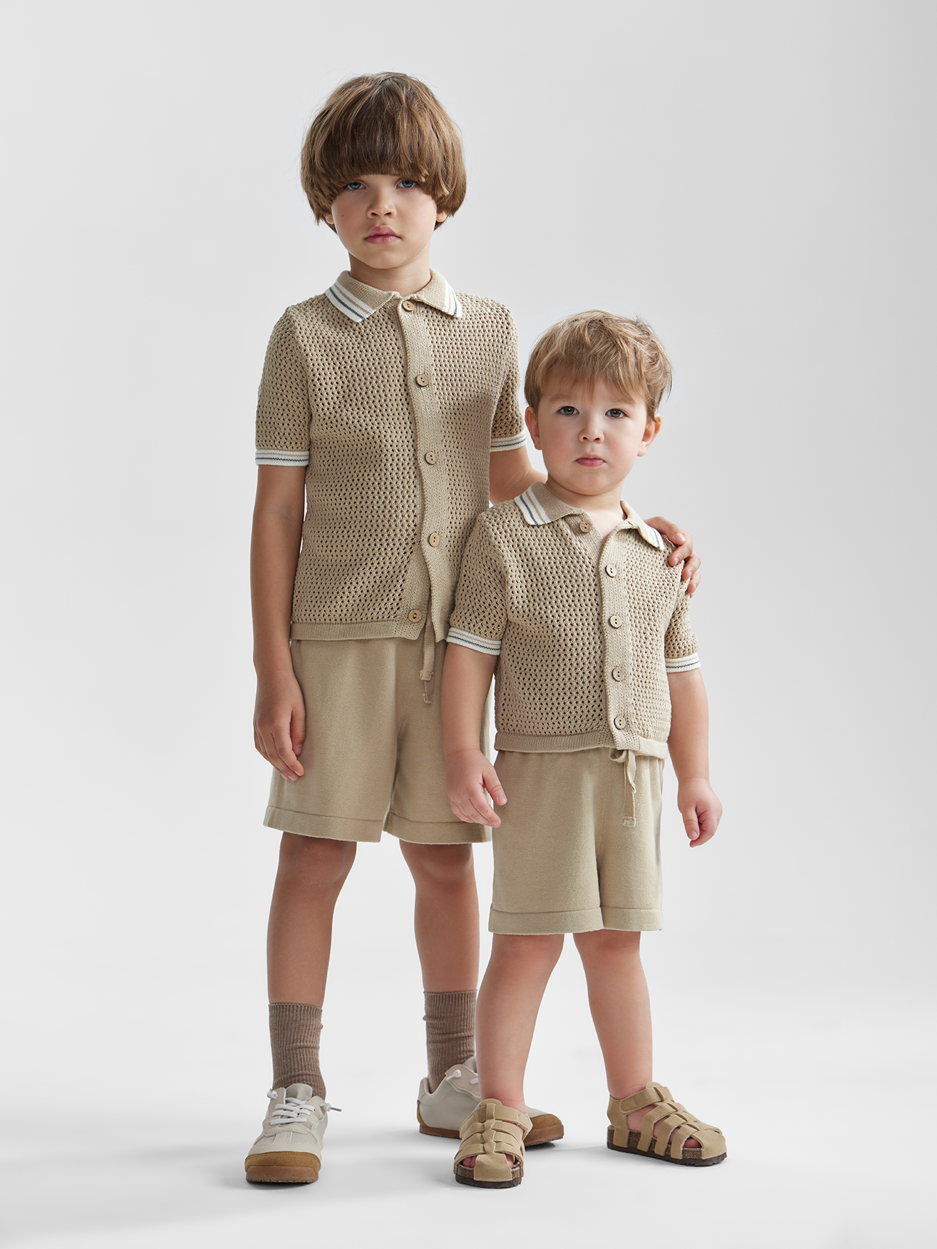 Трикотажный костюм – стильный и практичный вариант на лето. Вместе создают идеальный комплект, который не нуждается в дополнении. По отдельности приносят в образ нотку стиля Old Money. Рубашка с контрастным воротником скроена так, что оставляет полную свободу движений. Застегивается на пуговицы. Шорты мягкие, комфортные. Посадка регулируется с помощью шнурка. Комплект идеально подойдет для создания модных образов для девочек и мальчиков.