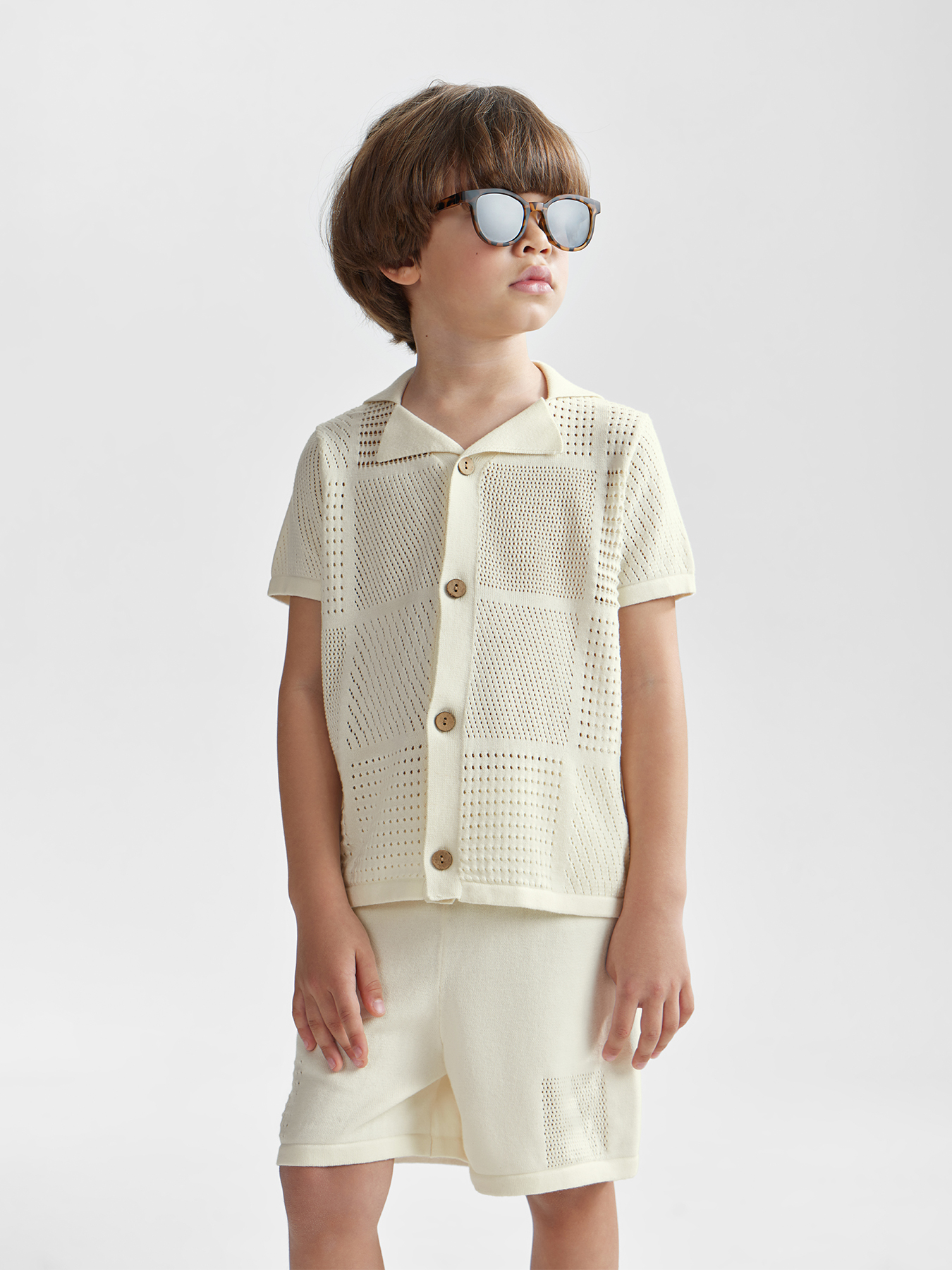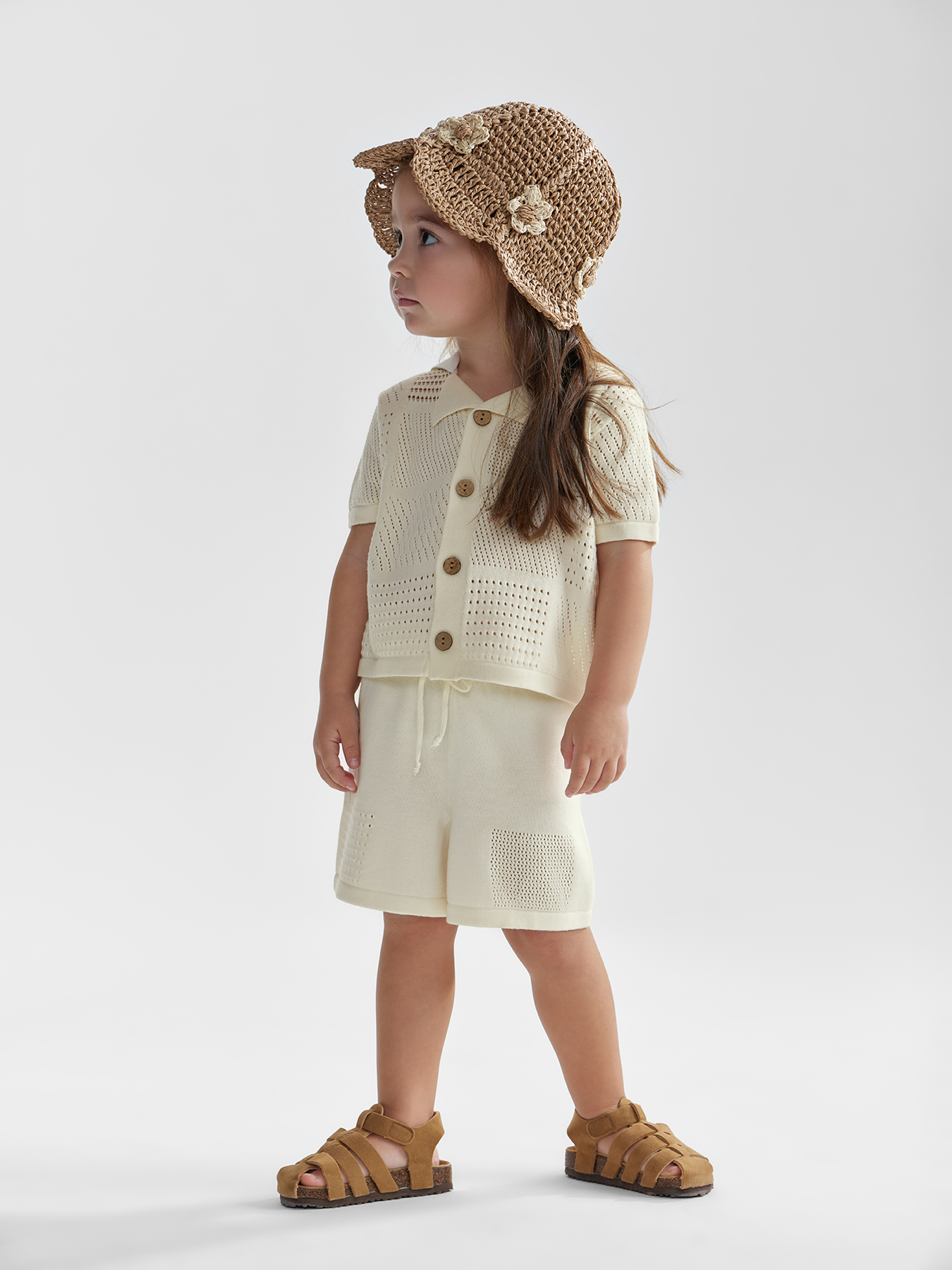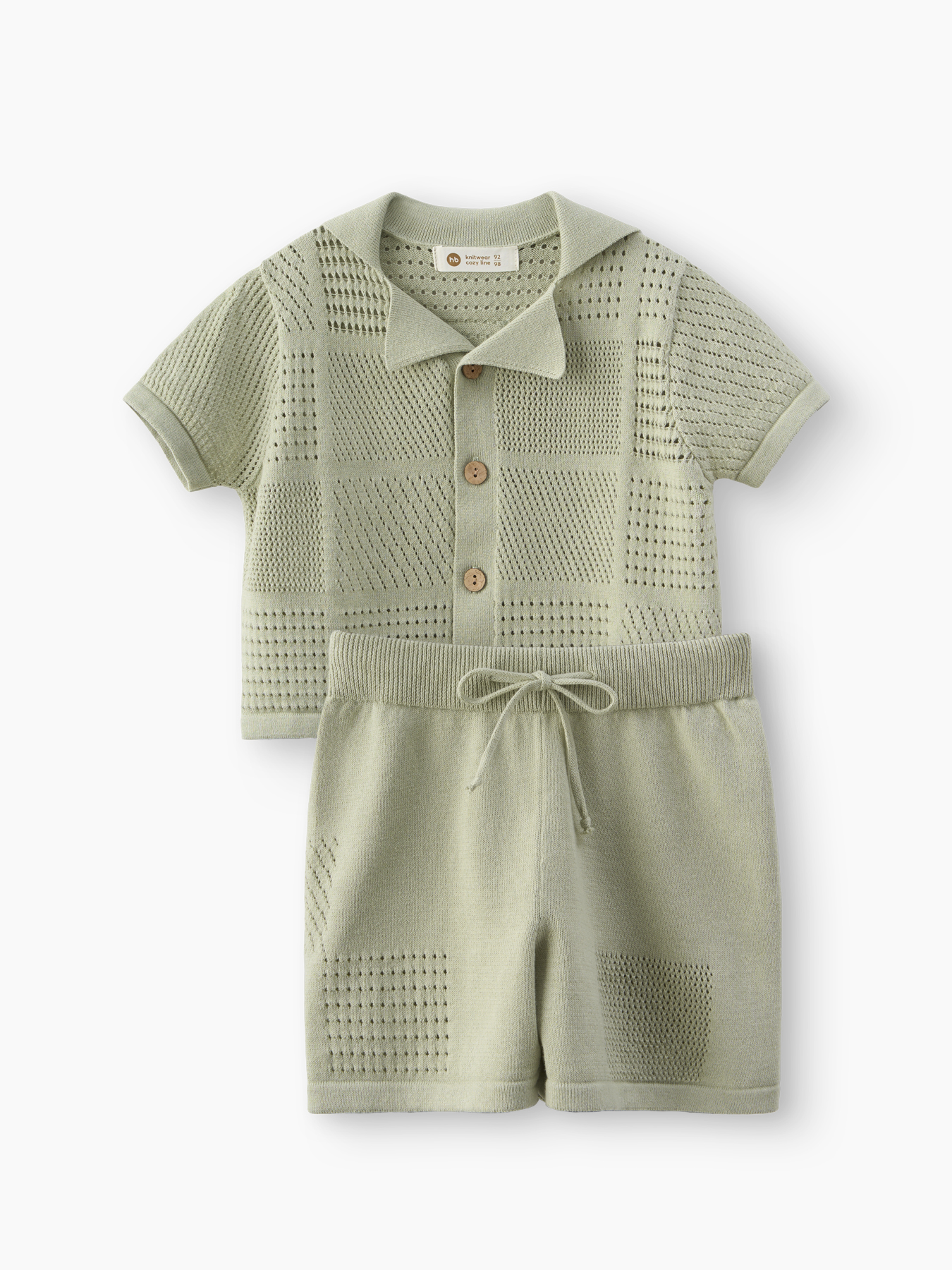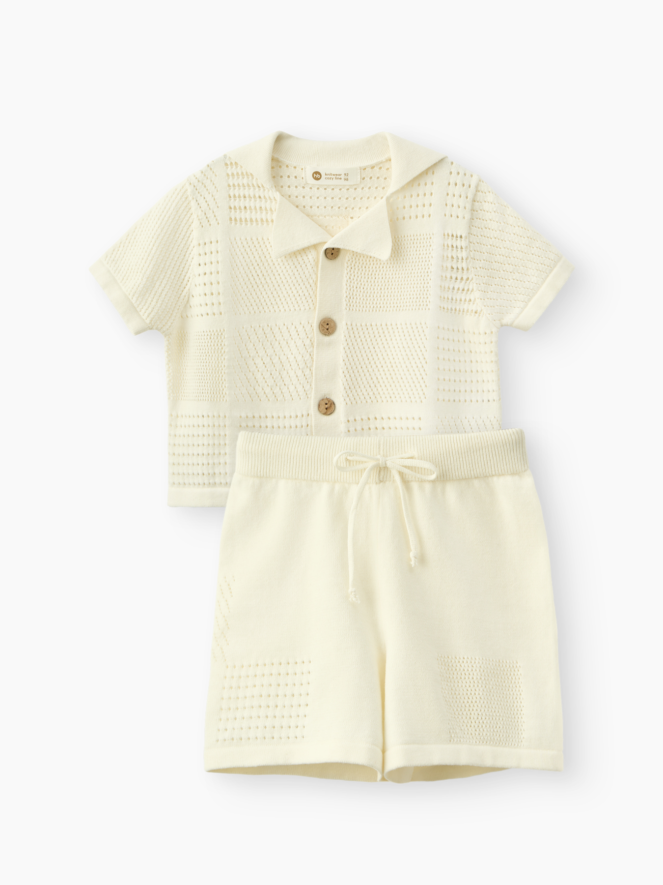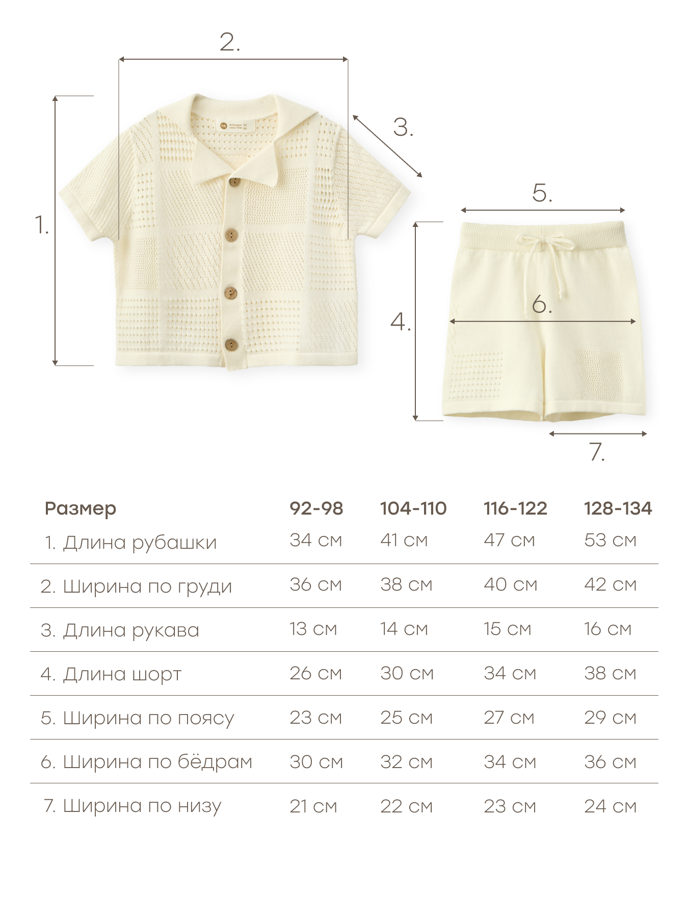 Трикотажный костюм – стильный и практичный вариант на лето. Вместе создают идеальный комплект, который не нуждается в дополнении. Можно носить по отдельности. Рубашка с воротником Camp скроена так, что оставляет полную свободу движений. Застегивается на пуговицы. Шорты мягкие, комфортные. Посадка регулируется с помощью шнурка. Комплект идеально подойдет для создания модных образов для девочек и мальчиков.
