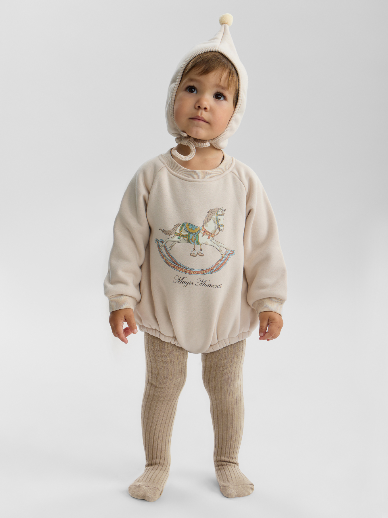 • Натуральный материал: обеспечивает идеальный воздухообмен и терморегуляцию. Это гарантирует, что кожа малыша дышит, а сам он чувствует себя уютно и защищено весь день.