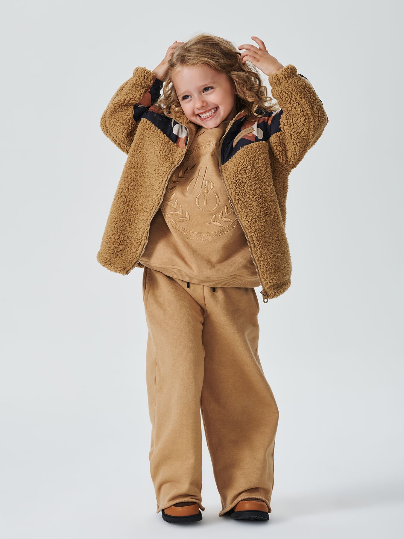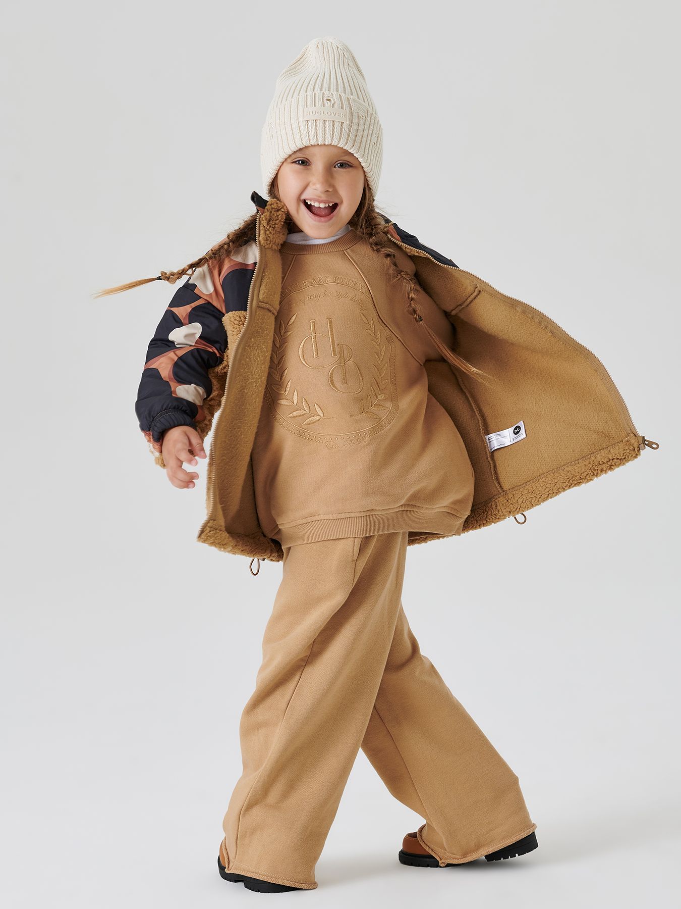 Комплект из джемпера и брюк — удобный вариант одежды в прохладную погоду. Джемпер на молнии позволяет создавать многослойные образы. Высокий ворот защищает от холода и ветра. Ткань кокетки не продувается. Брюки широкие, обеспечивают свободу движений. Части костюма можно носить вместе и по отдельности, создавая новые образы каждый день.