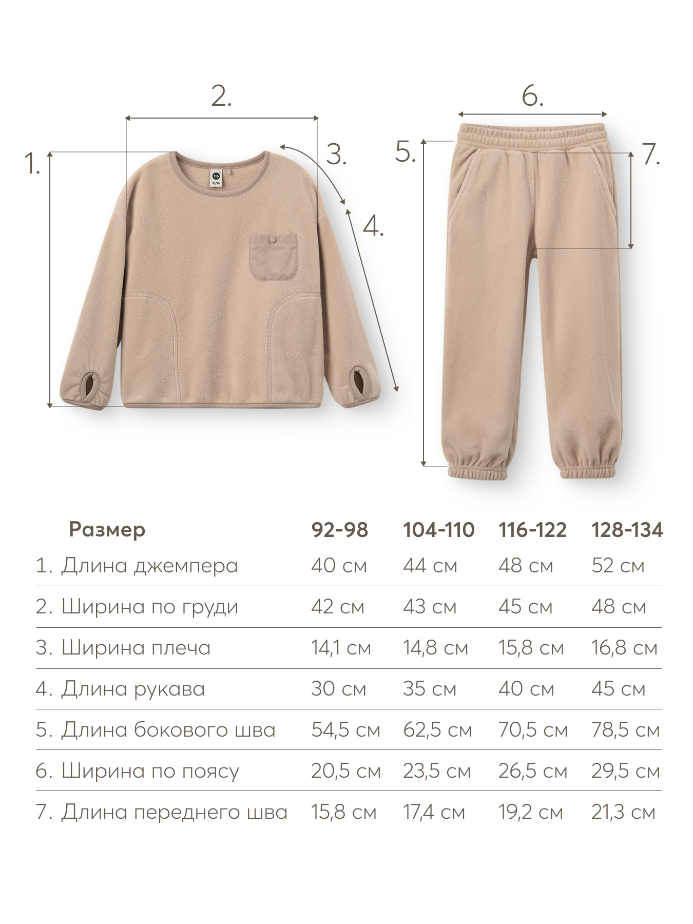 Детский спортивный костюм джемпер и брюки – это идеальное сочетание комфорта и стиля. Лёгкий, приятный на ощупь материал обеспечивает уют даже в прохладные дни. Флисовая кофта для девочки или мальчика с удобными манжетами с прорезью для пальца защищает ручки от холода, а накладной карман добавляет функциональности. Брюки спортивные детские с мягким эластичным поясом не давят и не сковывают движения, обеспечивая свободу и удобство в течение всего дня. Базовые оттенки позволяют легко комбинировать комплект одежды для девочек и мальчиков с другими предметами гардероба.