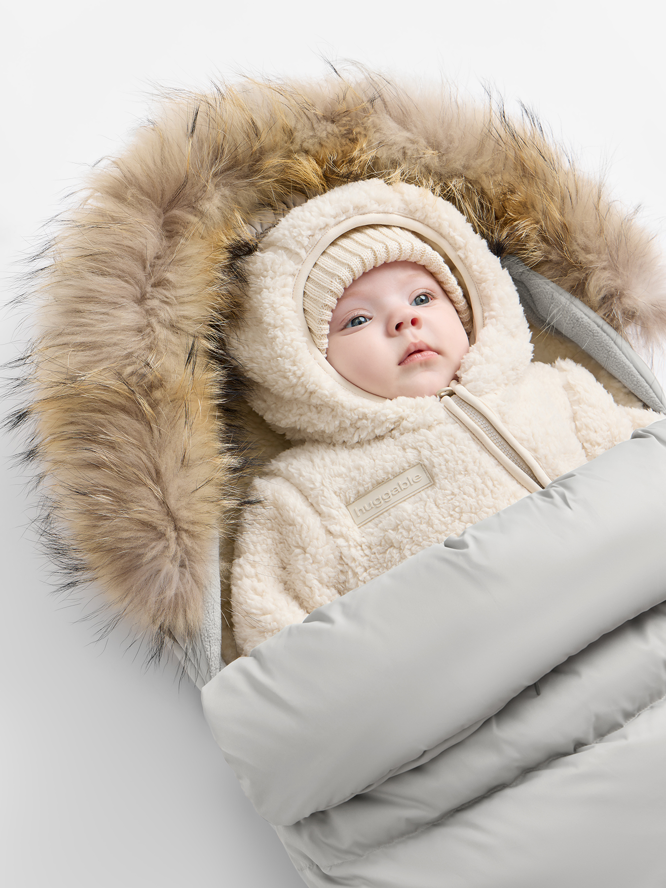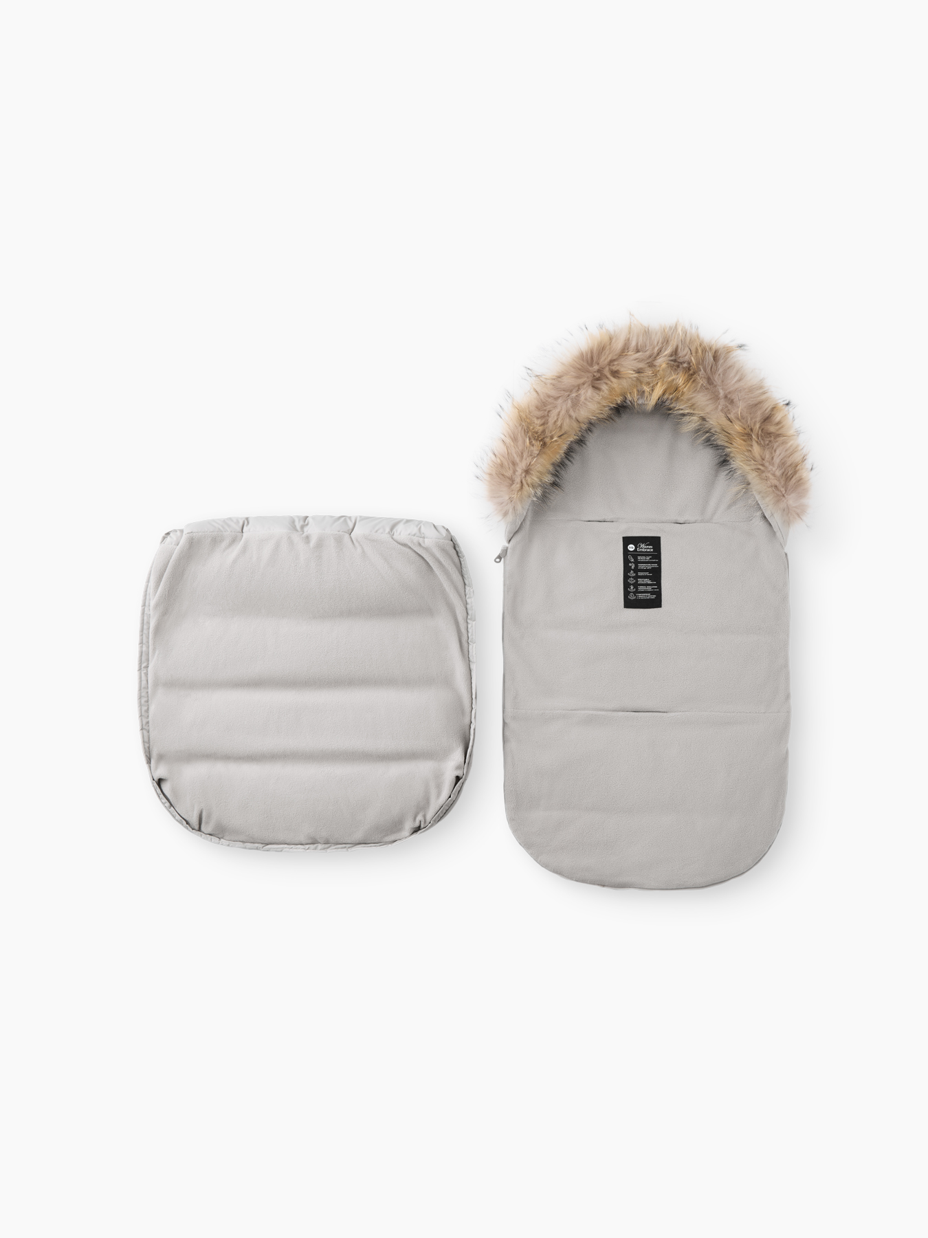 • Съёмный меховой вкладыш — регулирует уровень утепления: добавьте его в мороз или уберите в более тёплую погоду. Вкладыш универсален и подходит для использования в коляске, санях и автокресле.