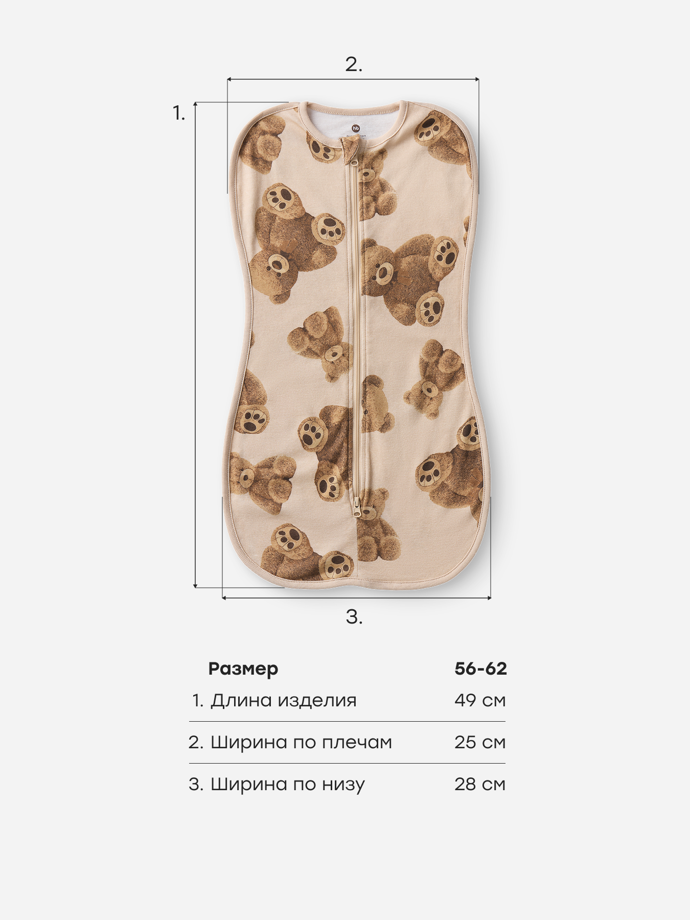 • Двойная молния — пеленка-кокон на молнии с двумя бегунками позволяет быстро и легко переодеть малыша или сменить подгузник, не тревожа его сон