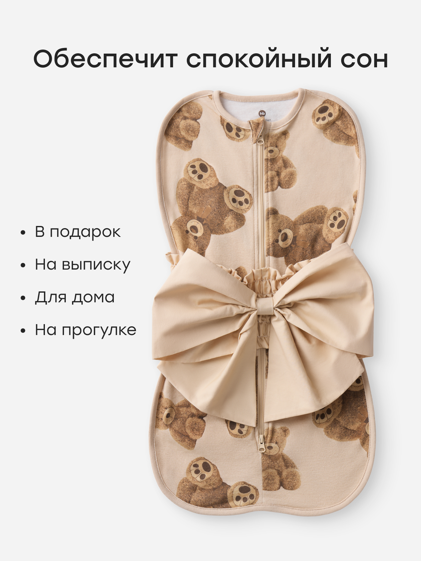 • Свободное пеленание — пеленальный кокон защищает от резких движений ручек, оберегает от царапин во время сна или пробуждения
