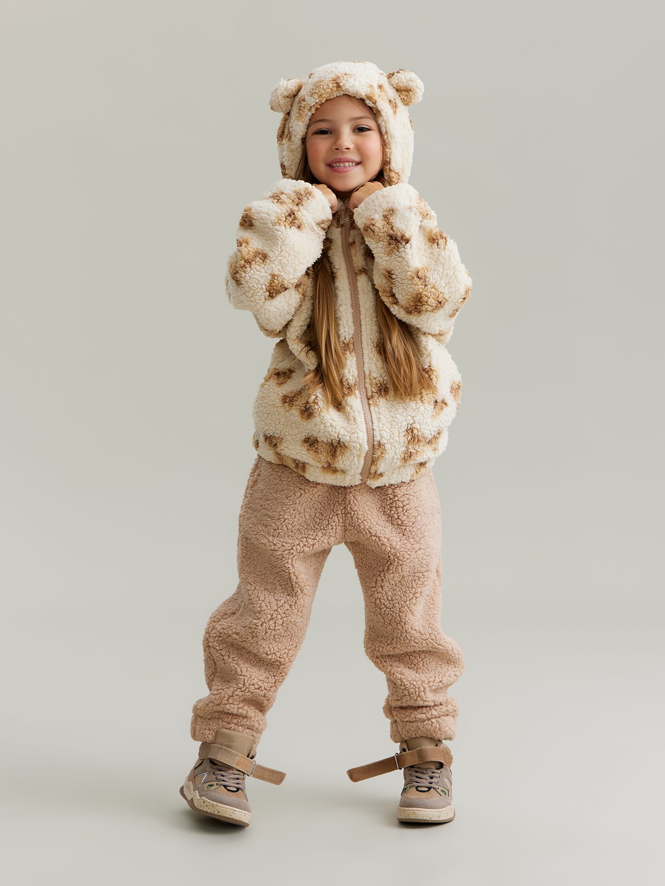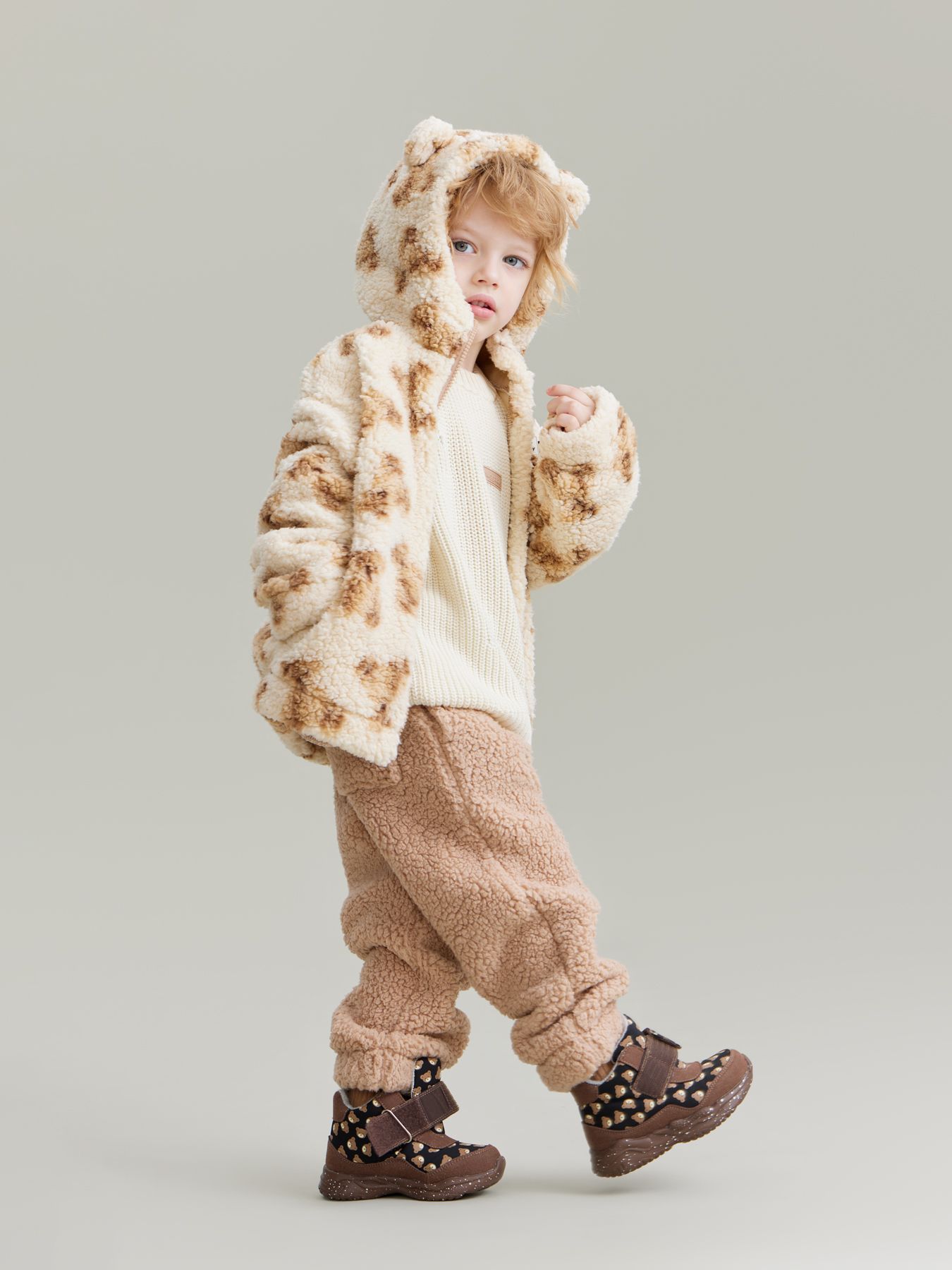 Детский флисовый костюм с капюшоном – идеальная верхняя одежда для прохладной погоды. Мягкий уютный флис отлично сохраняет тепло и защищает от ветра. Внутри – плоские швы, которые не доставят дискомфорта. У джемпера 2 пары карманов – накладные с клапаном на липучке и прорезные, в которых удобно греть руки. Джемпер застёгивается на молнию, которая снабжена защитой для подбородка. Дополнительная ветрозащита достигается благодаря манжетам на резинке на рукавах и штанинах. Брюки сидят на талии, а силуэт джемпера удлинён, поэтому тело малыша закрыто, даже если он поднимет руки. Обхват талии брюк регулируется резинкой.