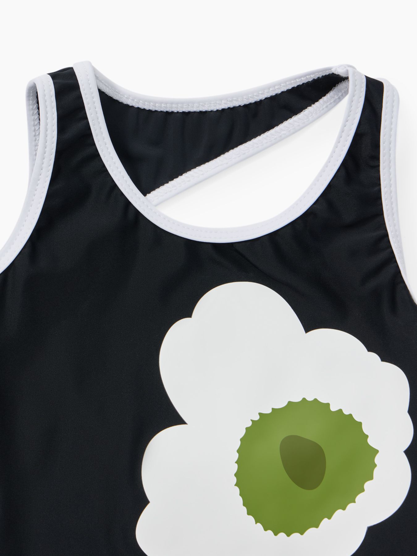 Купальный костюм для настоящих модниц с яркими принтами. Слитный купальник удобно надевать и снимать. Сшит из ткани с UPF 50+и обеспечивает защиту от солнечных лучей. Лекало разработано специально для детей, поэтому в костюме удобно плавать и играть на суше. Материал приятен коже и быстро сохнет. Ассиметричный вырез на спине выглядит необычно и стильно. Благодаря ярким расцветкам ребенка хорошо видно на суше, в море и в бассейне.