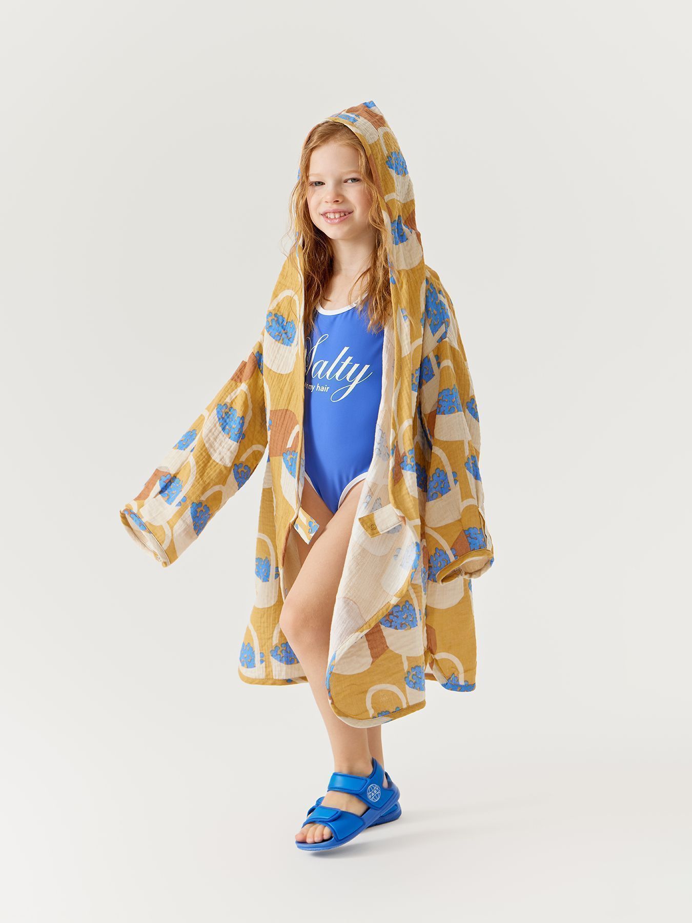Купальный костюм для настоящих модниц с яркими принтами. Слитный купальник удобно надевать и снимать. Сшит из ткани с UPF 50+и обеспечивает защиту от солнечных лучей. Лекало разработано специально для детей, поэтому в костюме удобно плавать и играть на суше. Материал приятен коже и быстро сохнет. Ассиметричный вырез на спине выглядит необычно и стильно. Благодаря ярким расцветкам ребенка хорошо видно на суше, в море и в бассейне.
