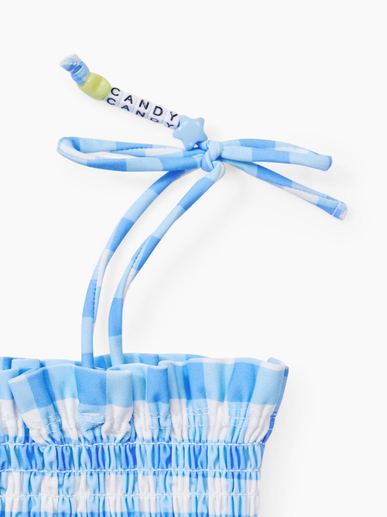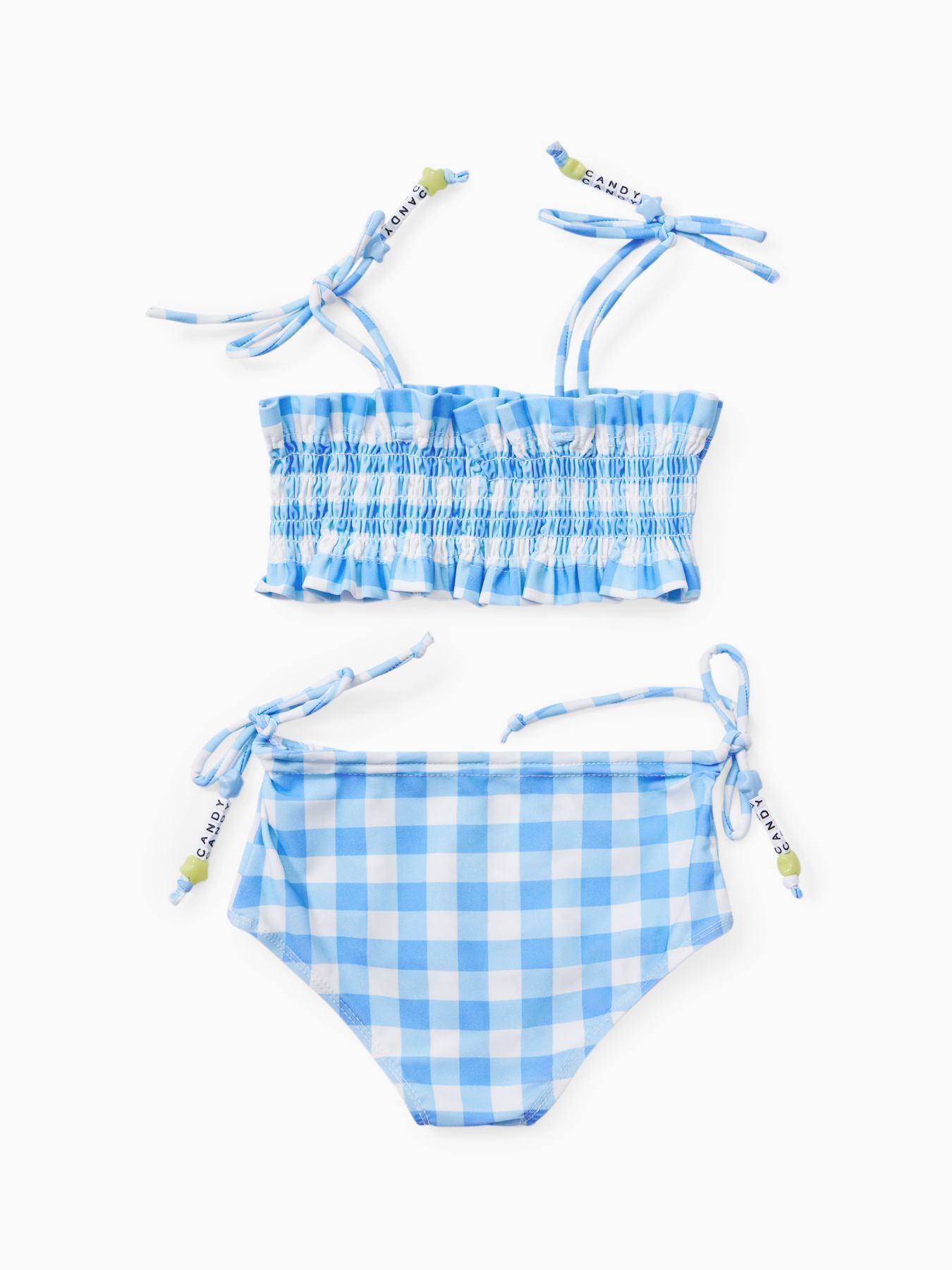 Конструкция и дизайн стильного двухпредметного купальника разработаны специально для малышей. Топ на завязках плотно сидит, не перетягивая кожу. Костюм изготовлен из быстросохнущего материала с UPF50+, который защищает ребёнка от вредных лучей и дарит комфорт. В купальнике удобно играть в воде и на берегу.