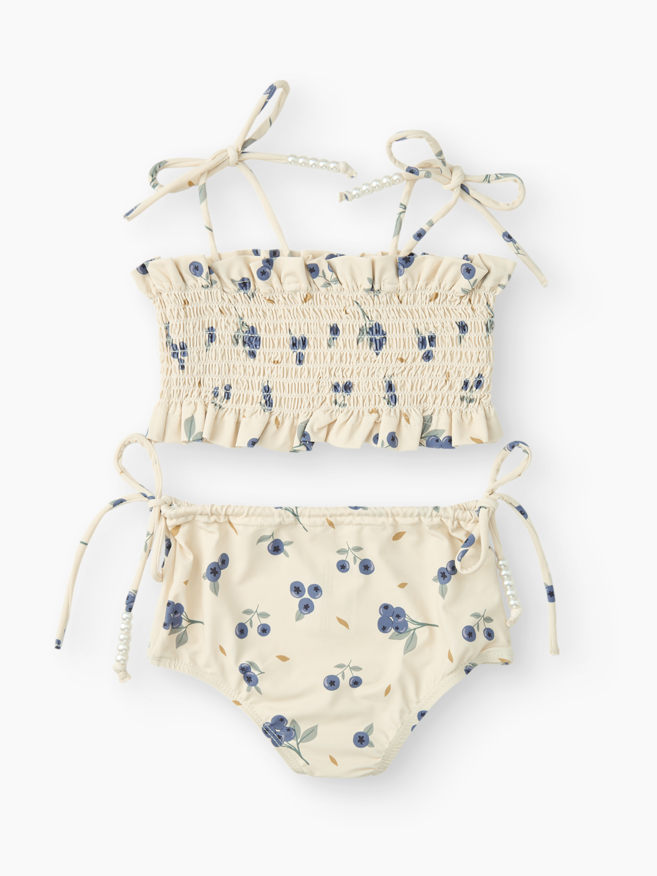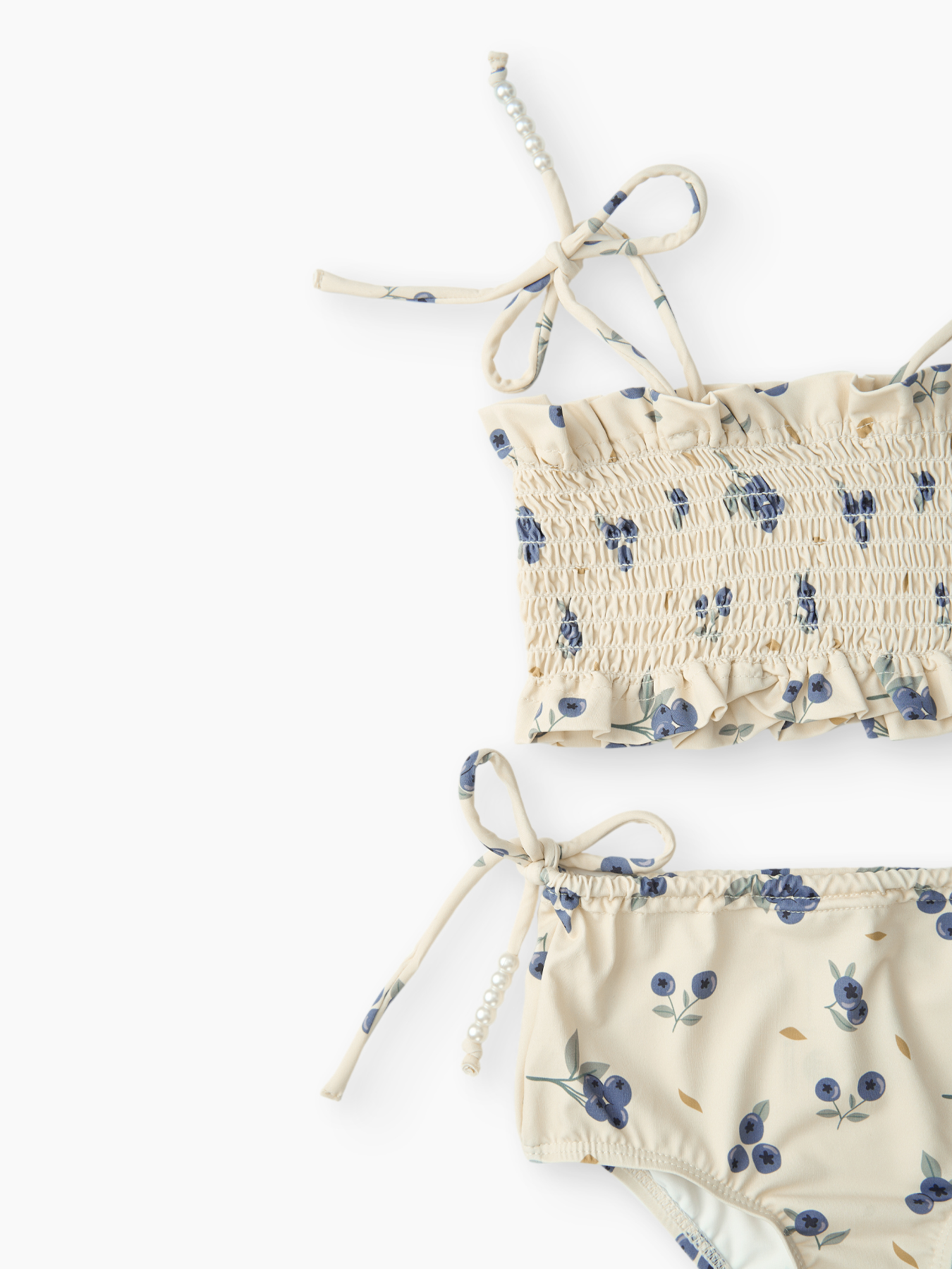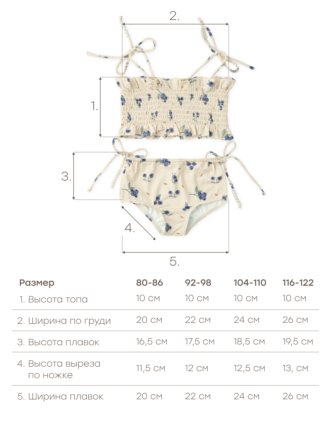 Конструкция и дизайн стильного двухпредметного купальника разработаны специально для малышей. Топ на завязках плотно сидит, не перетягивая кожу. Костюм изготовлен из быстросохнущего материала с UPF50+, который защищает ребёнка от вредных лучей и дарит комфорт. В купальнике удобно играть в воде и на берегу.
