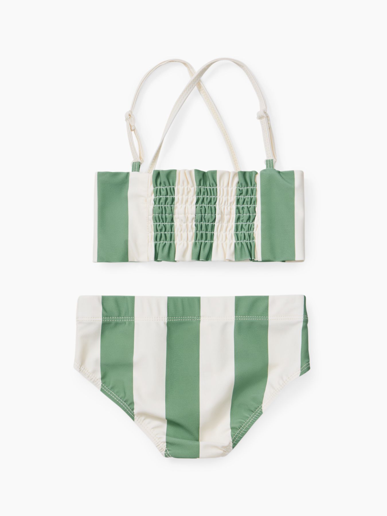 Раздельный купальник в стиле ретро удобен для игр в воде и на суше. Лекало топа обеспечивает правильную посадку и надёжную фиксацию – топ не съезжает и не задирается. Стильные плавки оснащены мягкими резиночками, которые надежно фиксируют купальник и не пережимают нежную детскую кожу. Практичный быстросохнущий материал обладает свойством блокировки ультрафиолета с фактором UPF 50+, что означает наивысшую степень защиты. Актуальный дизайн сделает образ милым, а летние фотографии яркими.