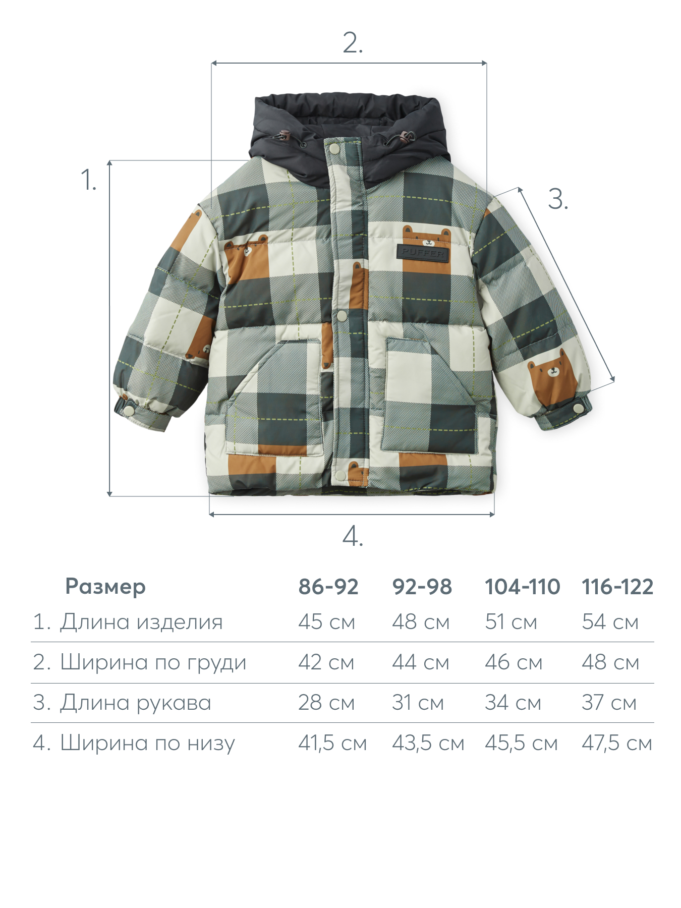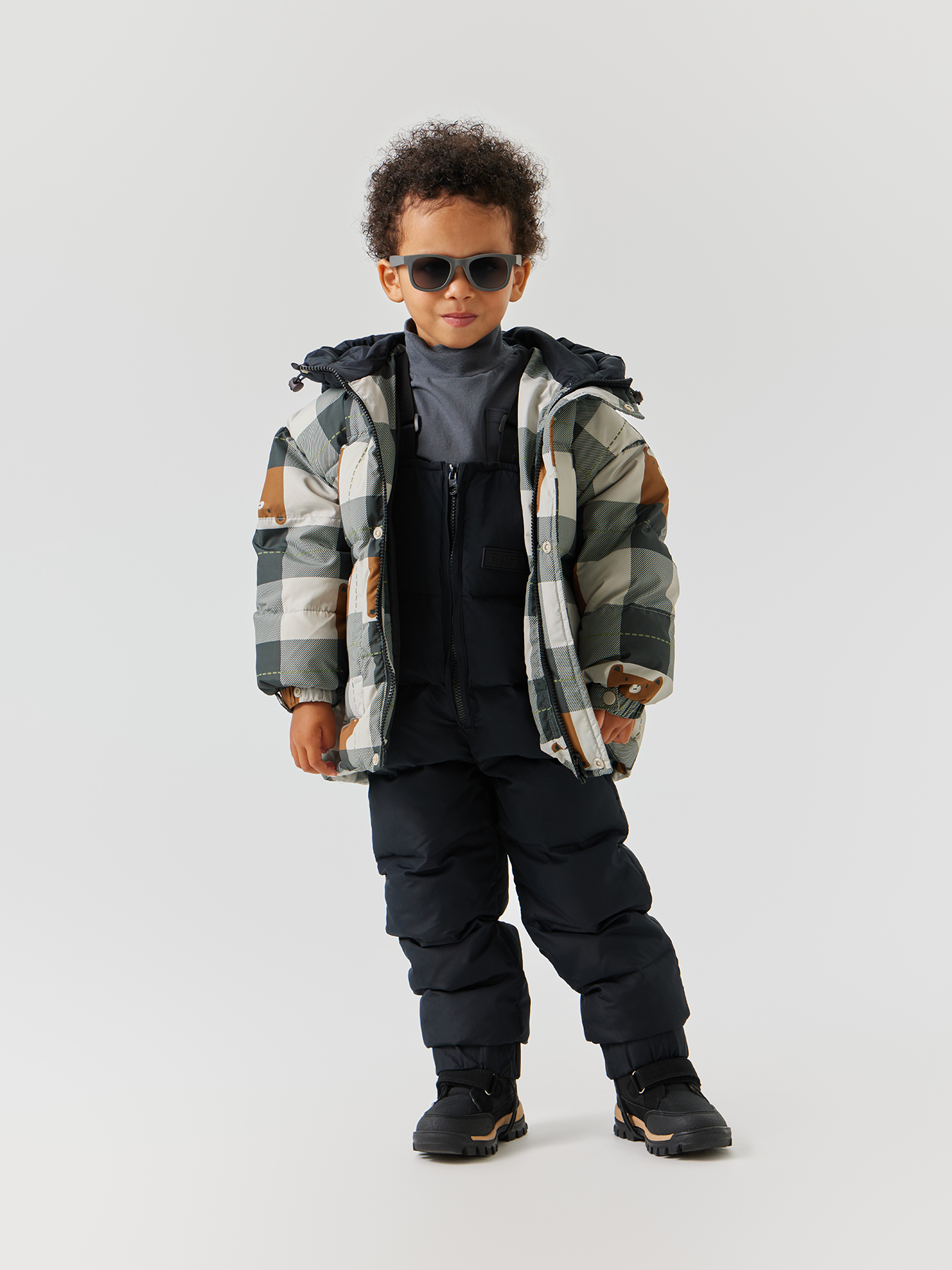 • Свободный крой — пуховик не ограничивает движения ребёнка, а внутренние лямки позволяют удобно носить куртку в помещении, не снимая её полностью
