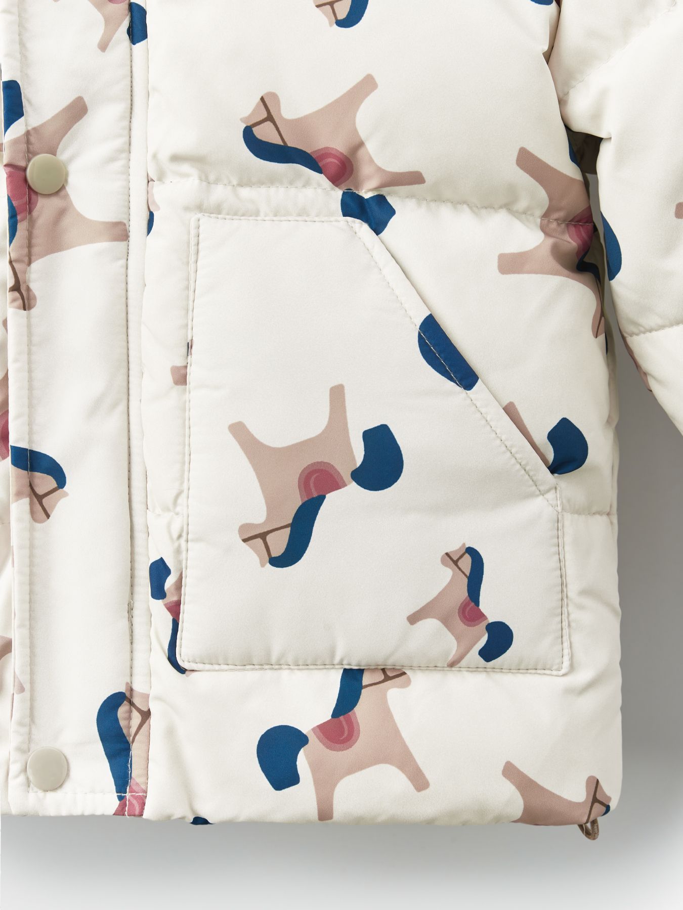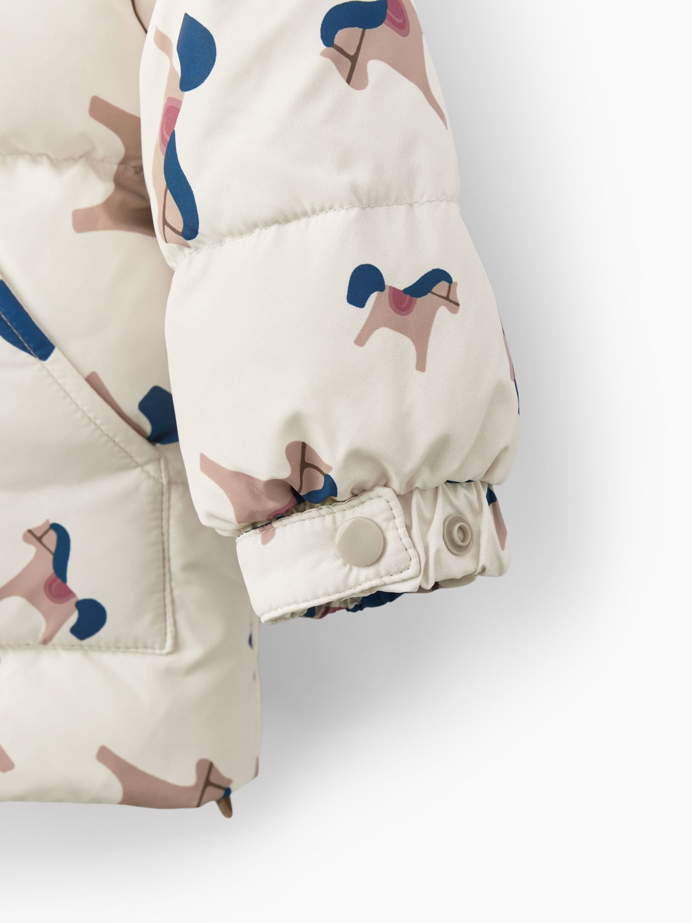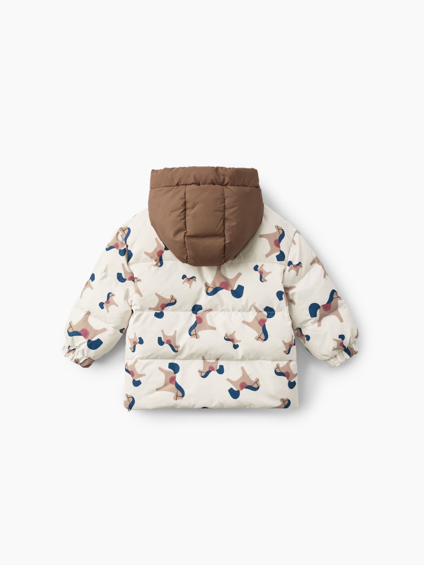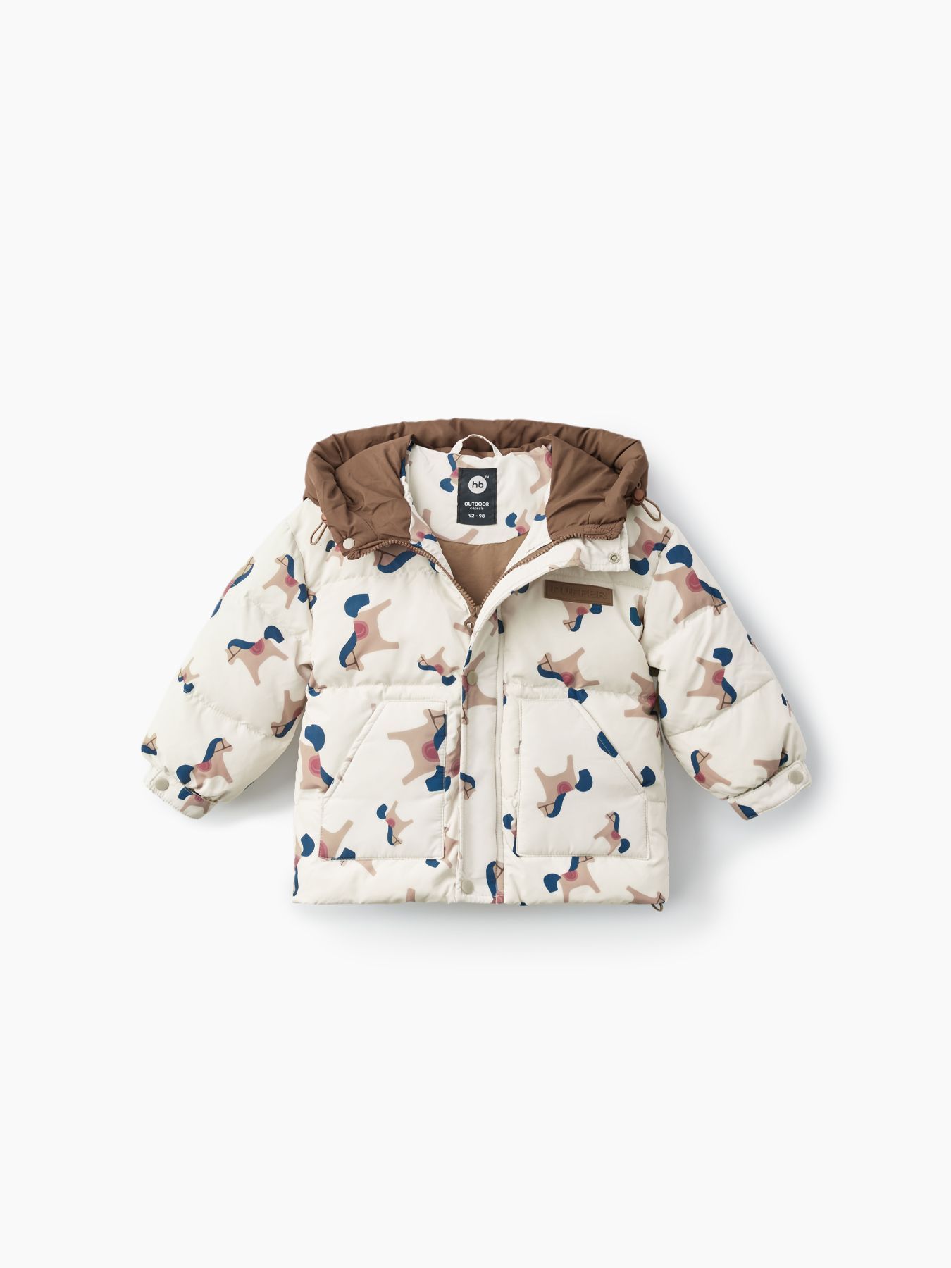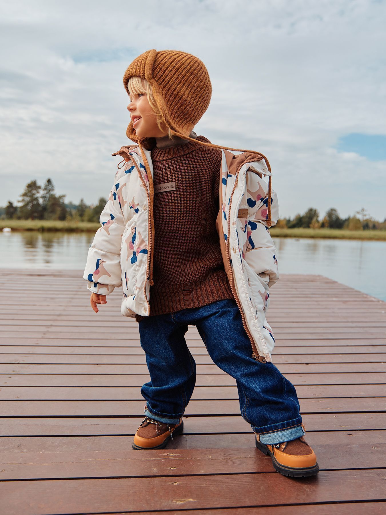 • Свободный крой — пуховик не ограничивает движения ребёнка, а внутренние лямки позволяют удобно носить куртку в помещении, не снимая её полностью