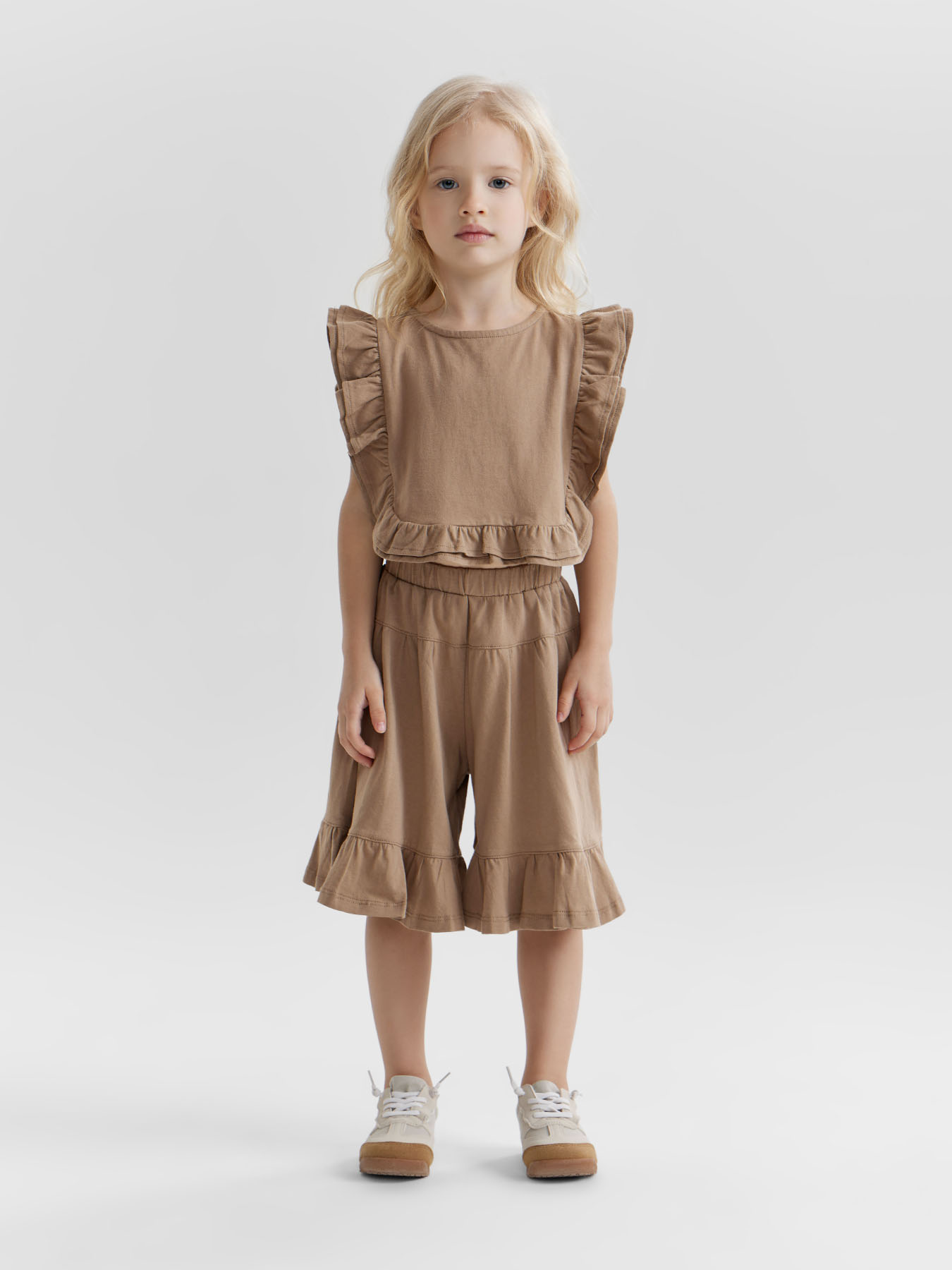 Топ для девочки от бренда Happy Baby — идеальный выбор для теплой летней погоды. Выполненный из 100% хлопка, этот кроп-топ изготовлен из легкого и дышащего материала, который обеспечивает комфорт в жаркие дни, позволяя коже дышать, не вызывая раздражений. Изящные оборки создают романтичный и нежный образ. Такой топик легко сочетается с джинсовыми шортами, юбками и легкими брюками, что делает его универсальным элементом детского гардероба. Стильные базовые цвета позволят выглядеть модно и ярко каждый день. Майка-топ для девочек не только красива, но и практична: изделие сохраняет форму и насыщенность цвета даже после многочисленных стирок. Это делает ее отличным решением для активных девочек, которые любят играть, исследовать мир и при этом выглядеть стильно. Майка для девочки станет любимой вещью в гардеробе, создавая удобные и красивые летние образы.