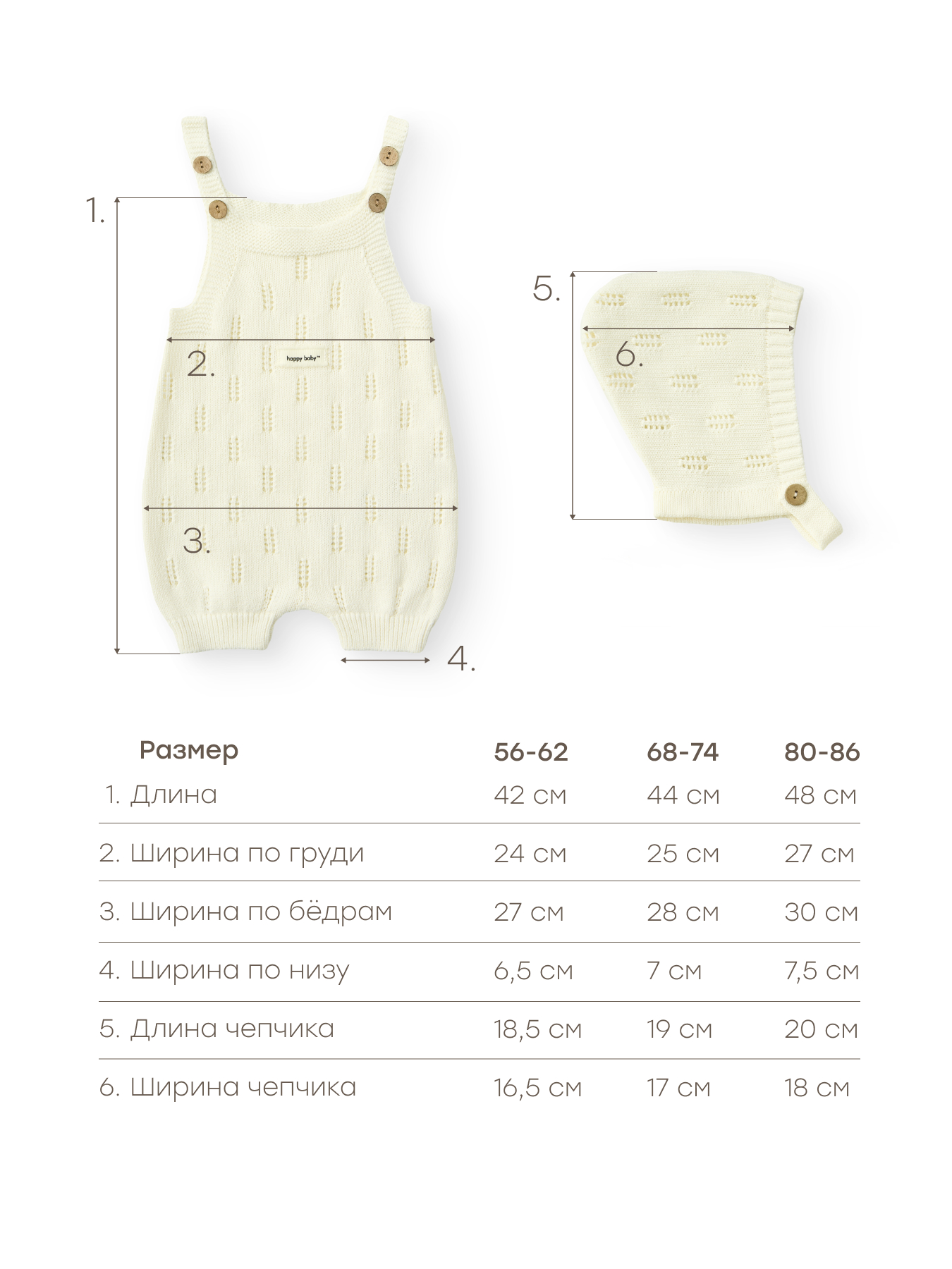 Комплект одежды выполнен в базовых однотонных цветах, которые подойдут и для мальчика и для девочки. Практичность дизайна позволит быстро переодевать малыша без лишних усилий. Застежки - пуговицы имеют два положения по высоте, так что лямки можно будет отрегулировать, подобрав лучшую посадку. Дышащая ткань не позволит запреть нежной коже младенца. Обеспечьте своему ребенку комфорт с Happy Baby.