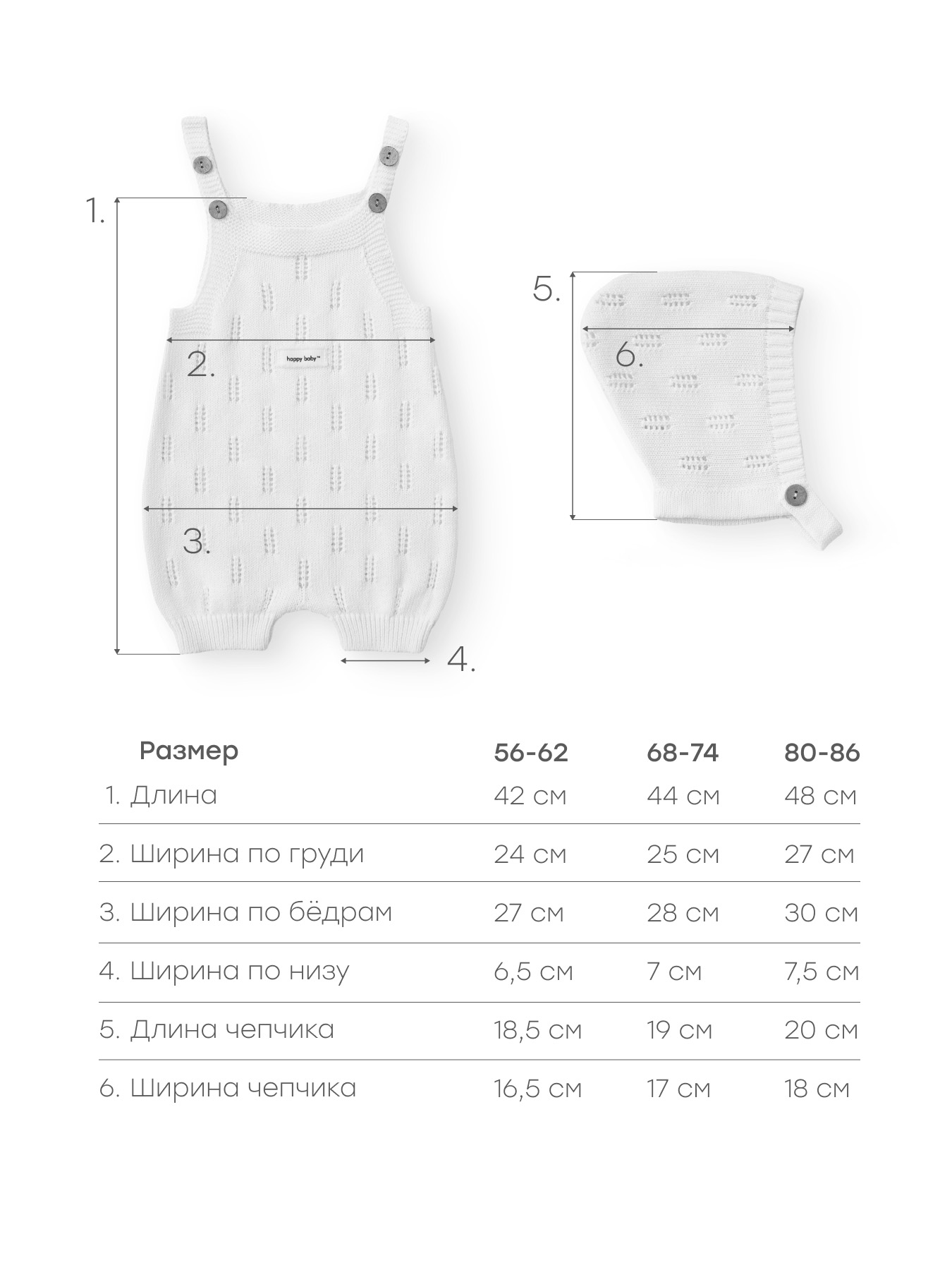 Комплект одежды выполнен в базовых однотонных цветах, которые подойдут и для мальчика и для девочки. Практичность дизайна позволит быстро переодевать малыша без лишних усилий. Застежки - пуговицы имеют два положения по высоте, так что лямки можно будет отрегулировать, подобрав лучшую посадку. Дышащая ткань не позволит запреть нежной коже младенца. Обеспечьте своему ребенку комфорт с Happy Baby.