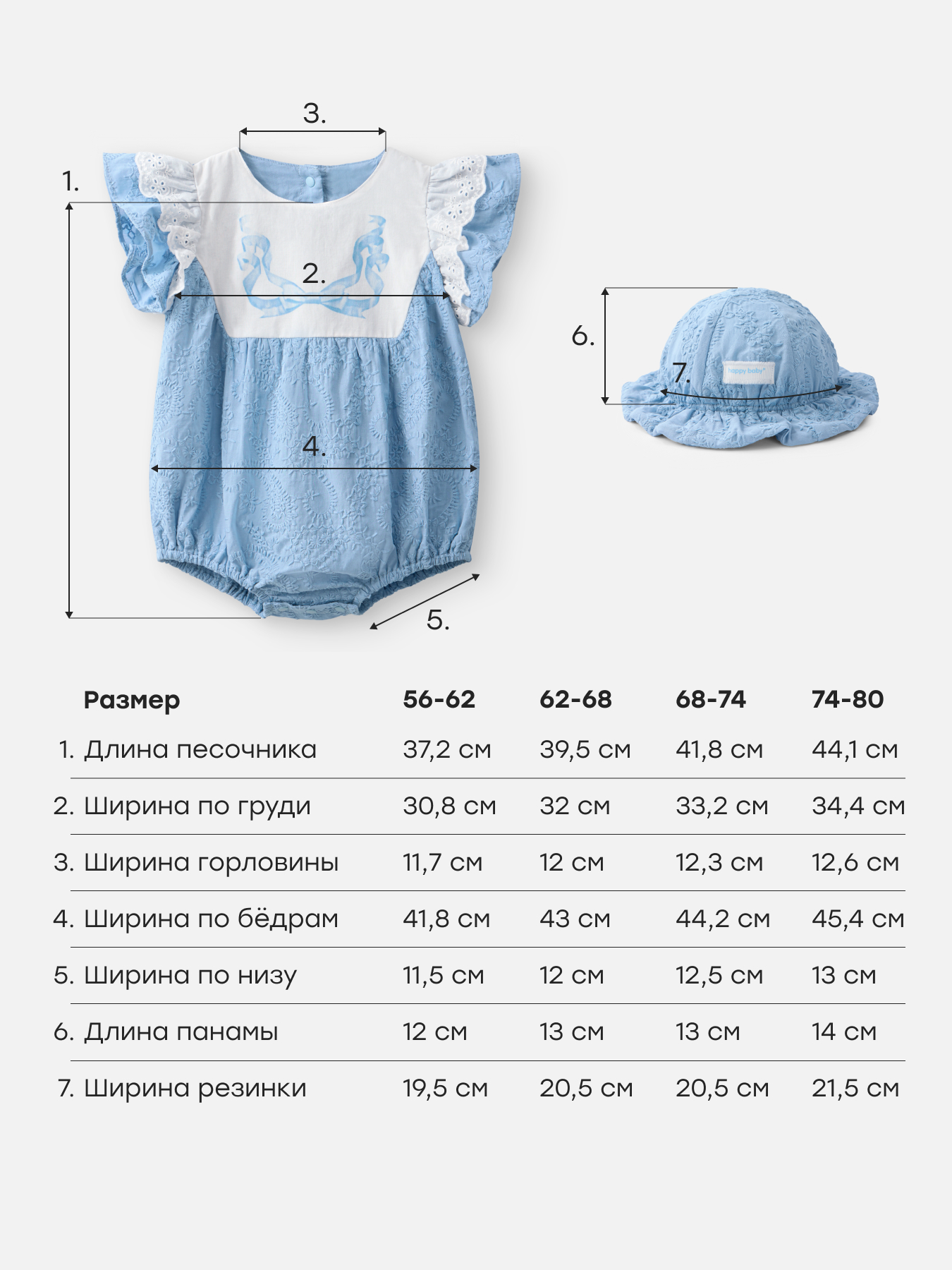 Комплект одежды для новорожденных состоит из комбинезона и панамки. Такой набор станет удобным вариантом  для малышей на лето. Песочник и панамка для девочки подходят для повседневного гардероба и рассчитаны на теплую погоду. Комплект можно использовать для сна, отдыха и прогулок.