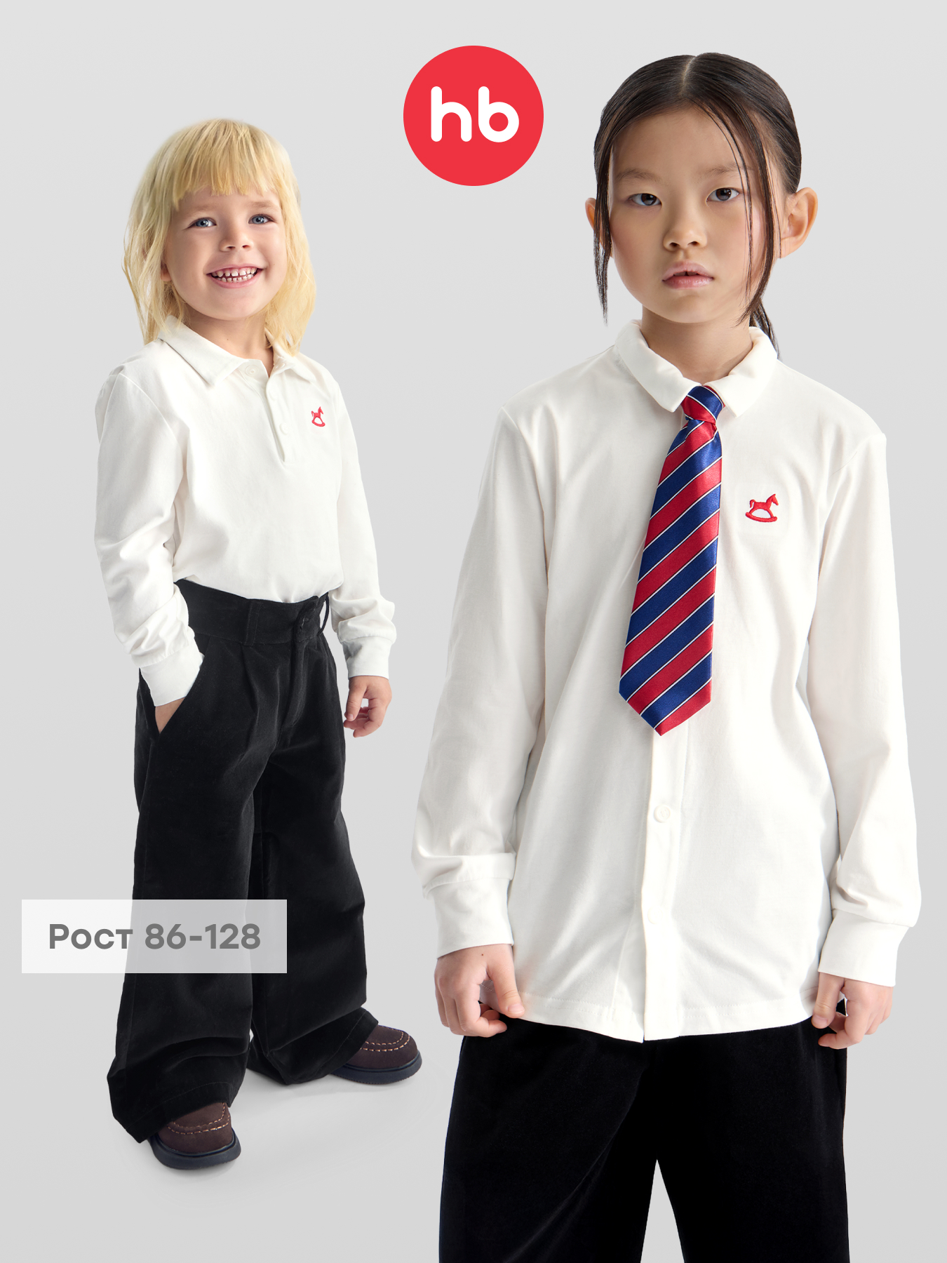 • Комплект рубашек для мальчика дополнен ярким галстуком красного цвета. Этот акцент завершает образ и добавляет стилевое единство.