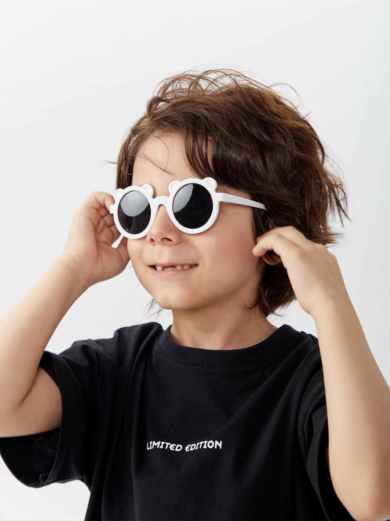 Лето - время ярких впечатлений и веселых игр на свежем воздухе под солнцем. Для того чтобы малыши чувствовали себя комфортно под его лучами, им необходимы стильные аксессуары с защитой от ультрафиолета. Эти модные очки со круглыми темными линзами – отличный выбор и для создания стильных образов, и для защиты от ультрафиолета. С этими очками ваш ребенок будет выглядеть настоящим модником. Круглая оправа с ушками придаст его облику особый шарм. Черные линзы элегантно сочетаются с любой летней одеждой, делая их универсальным предметом гардероба мальчиков и девочек. Защита от ультрафиолетового излучения UV400 важна для безопасности глаз ребенка. В этих очках он безопасно проведет время на пляже или в парке, не опасаясь негативного воздействия солнечных лучей. Круглая оправа делает этот аксессуар стильным дополнением для игр на свежем воздухе. Дайте вашему малышу возможность представить себя настоящей звездой благодаря декоративным черным очкам с защитой от ультрафиолета. Сочетание модного дизайна и практичности делает этот аксессуар прекрасным выбором для игр под жаркими лучами солнца. Солнечное лето наполнено радостью и свежестью, а эти очки помогут вашему малышу насладиться яркими денечками безопасно и стильно.